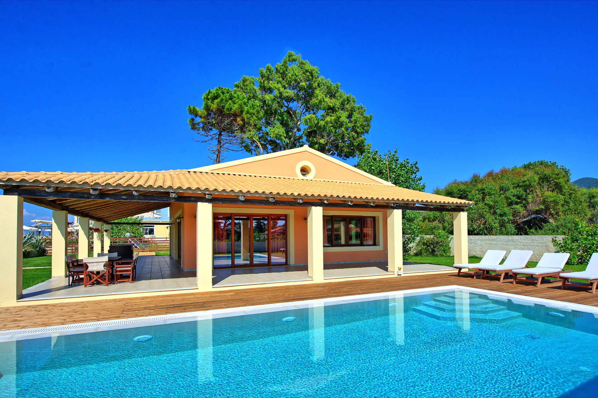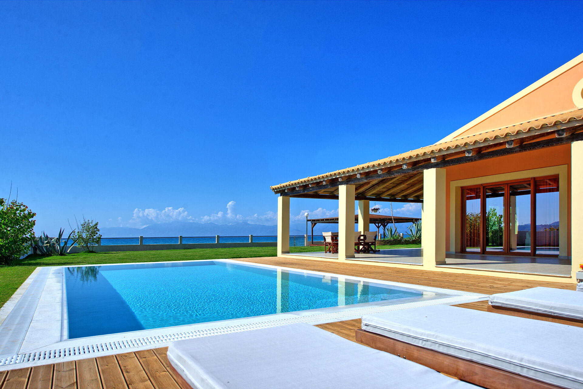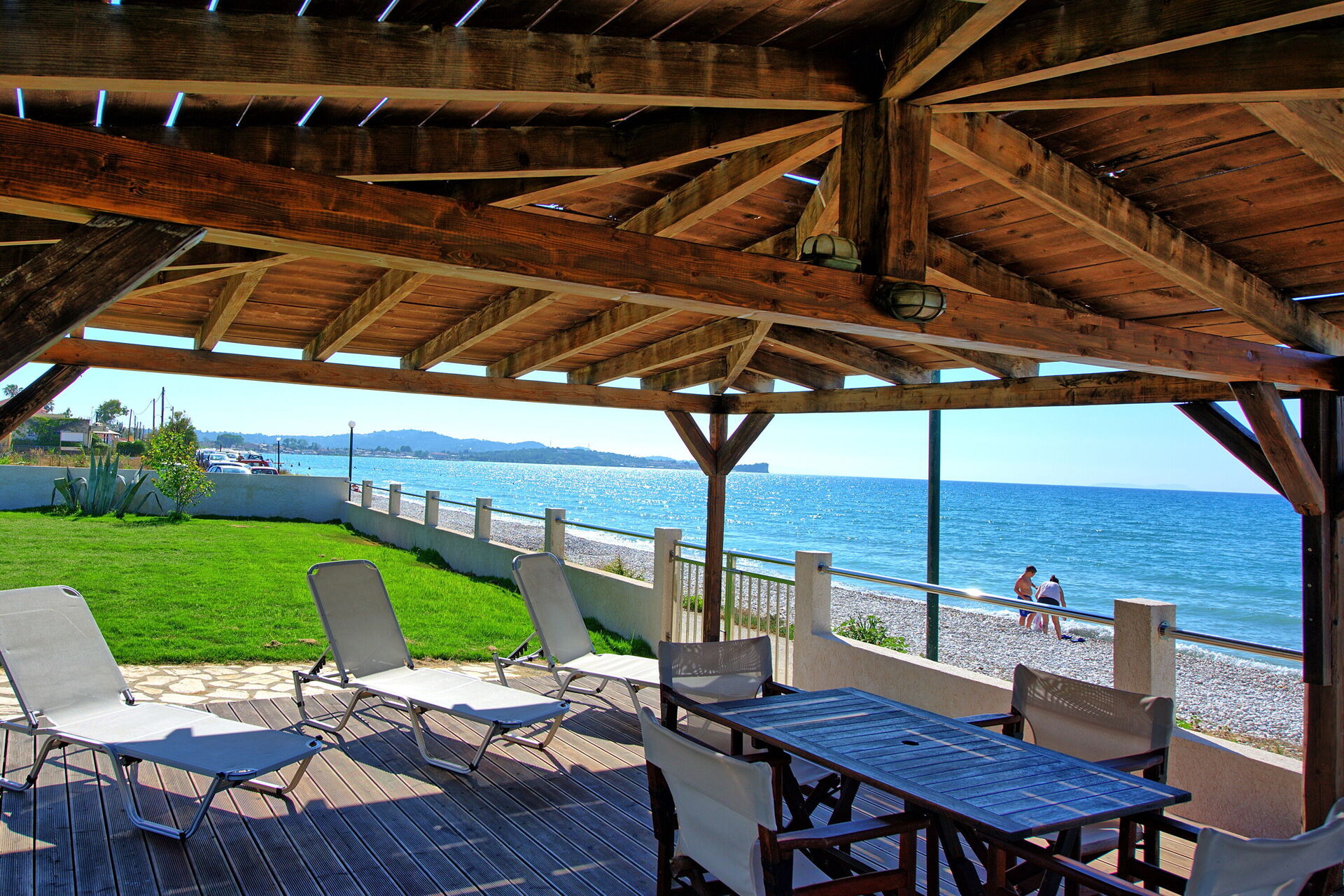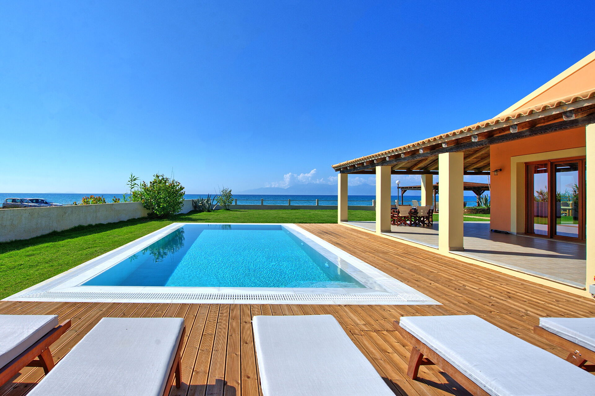 Villa avec piscine face à la mer, située dans la célèbre station balnéaire d'Acharavi. L'emplacement de la maison est extraordinaire, à seulement 10 mètres de la fantastique mer de Corfou!