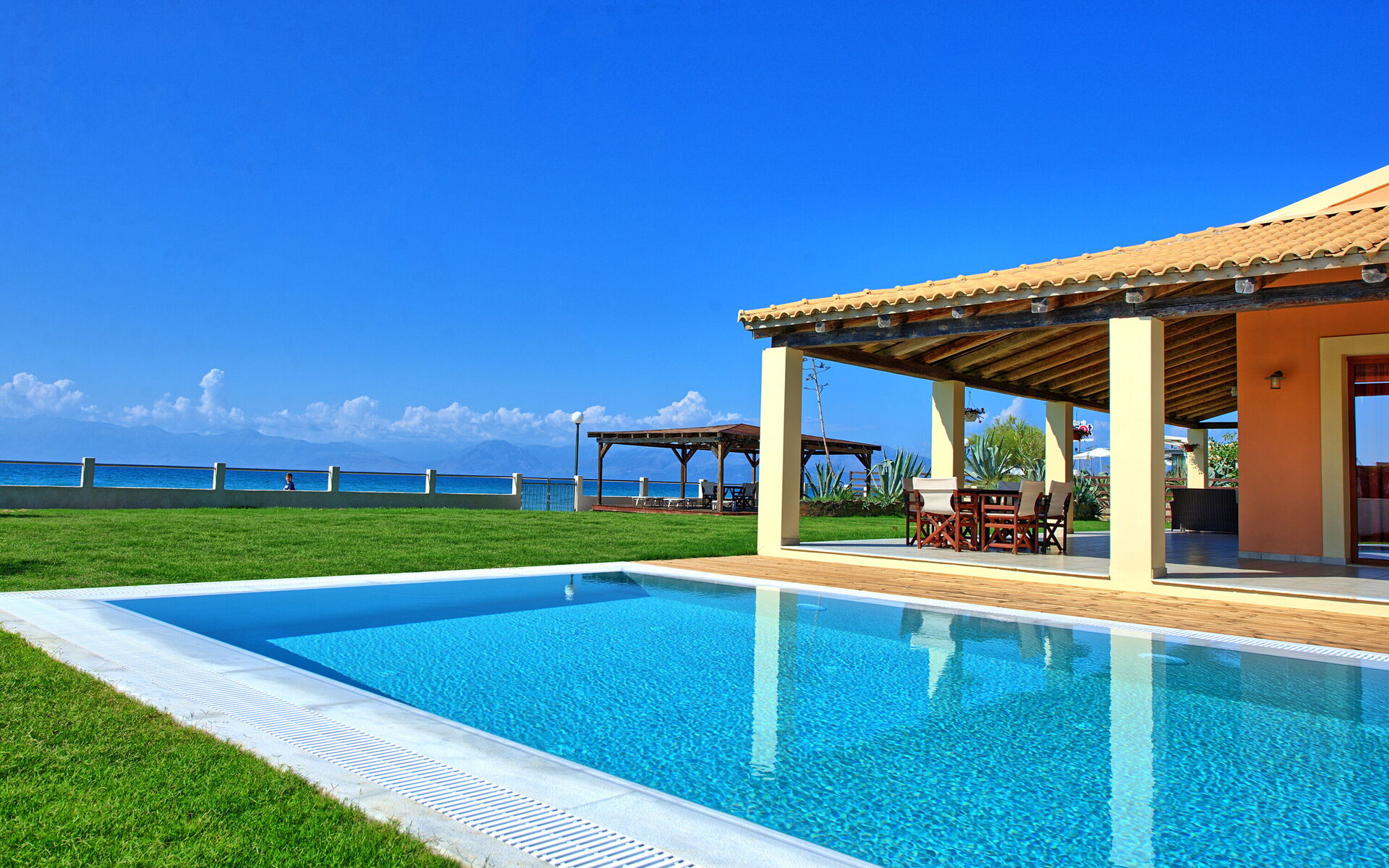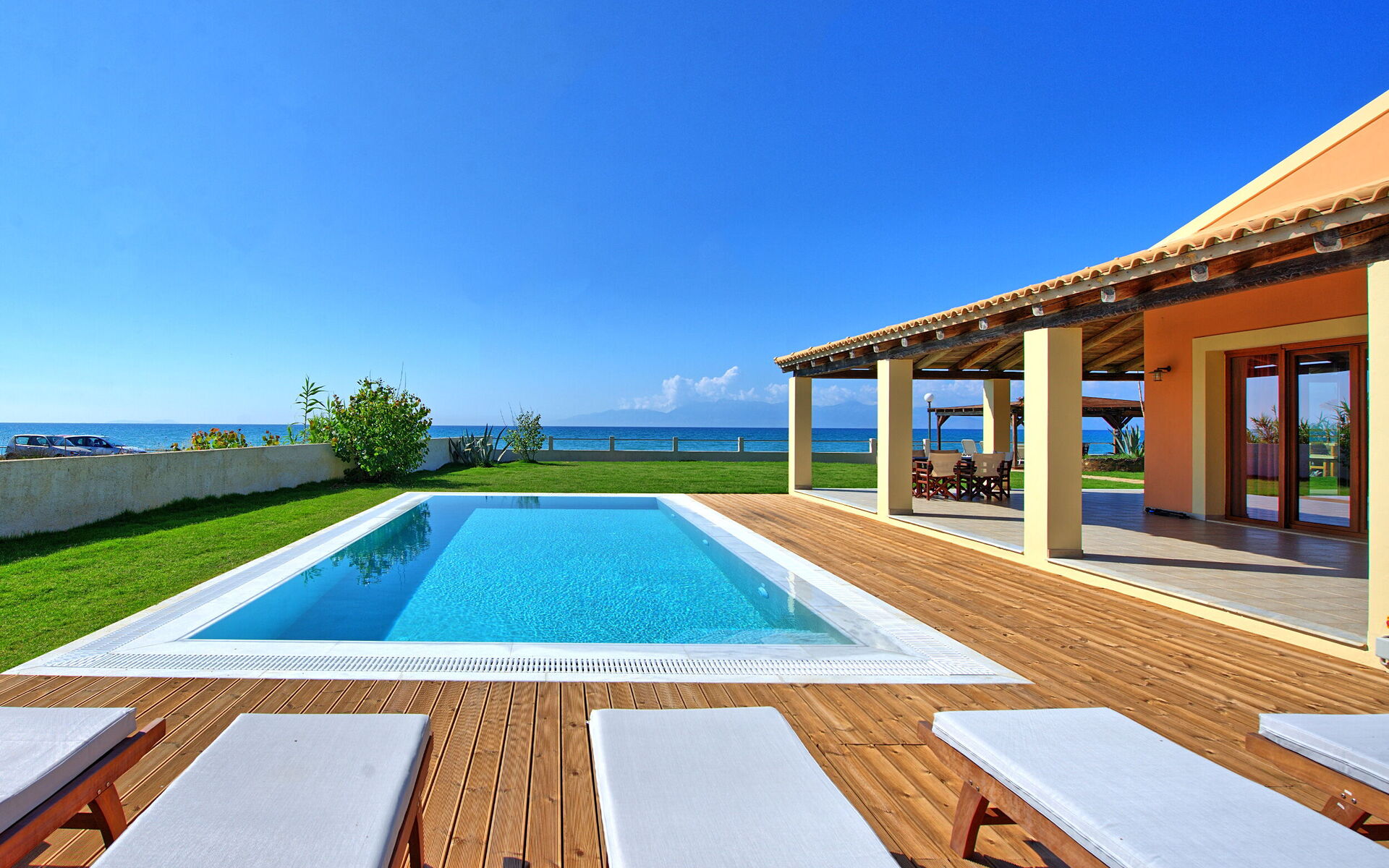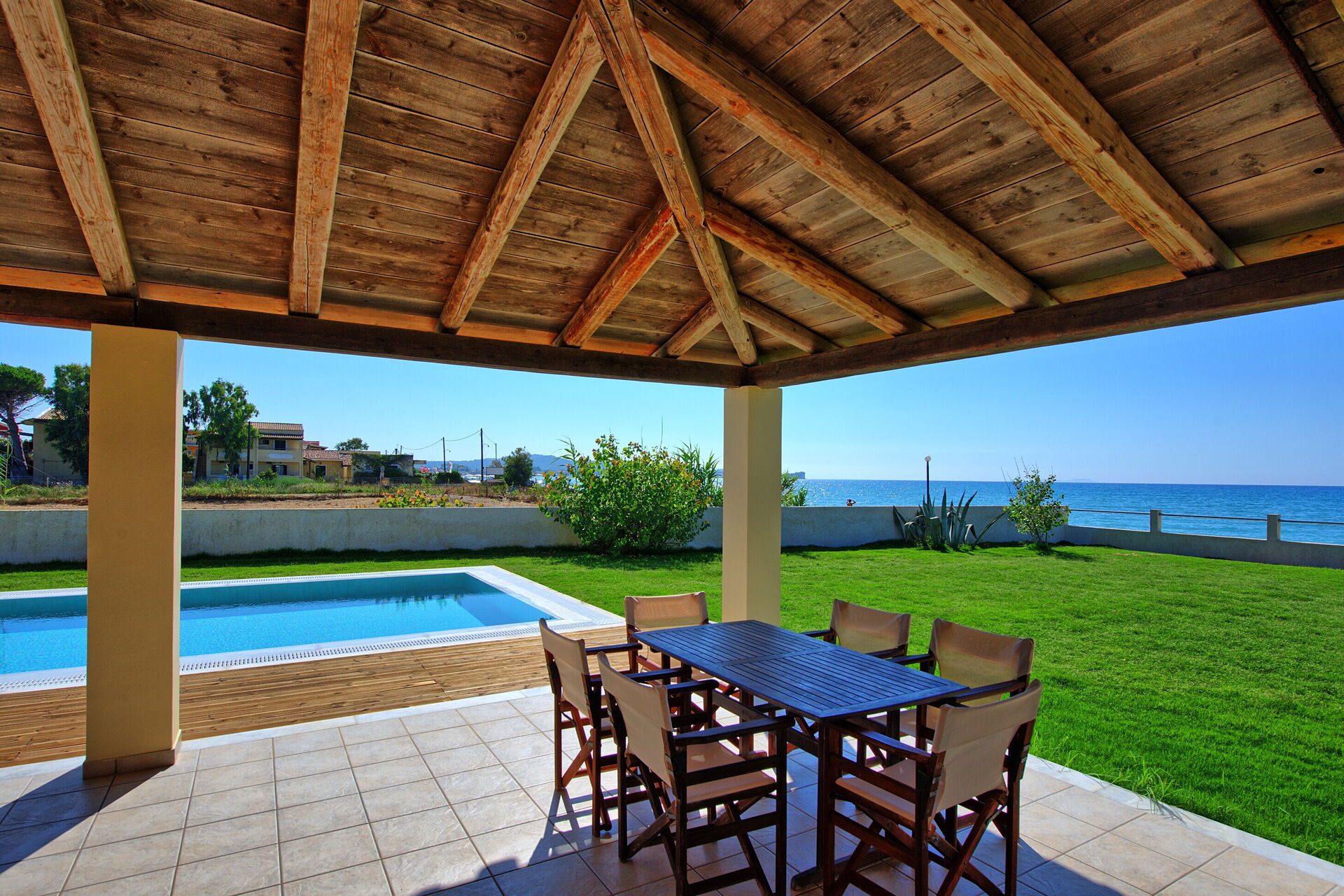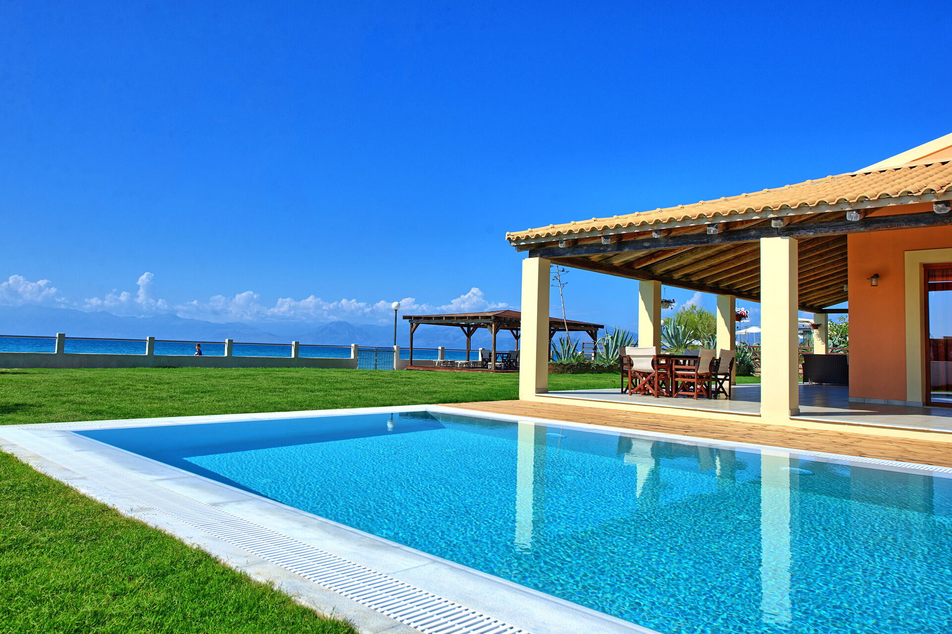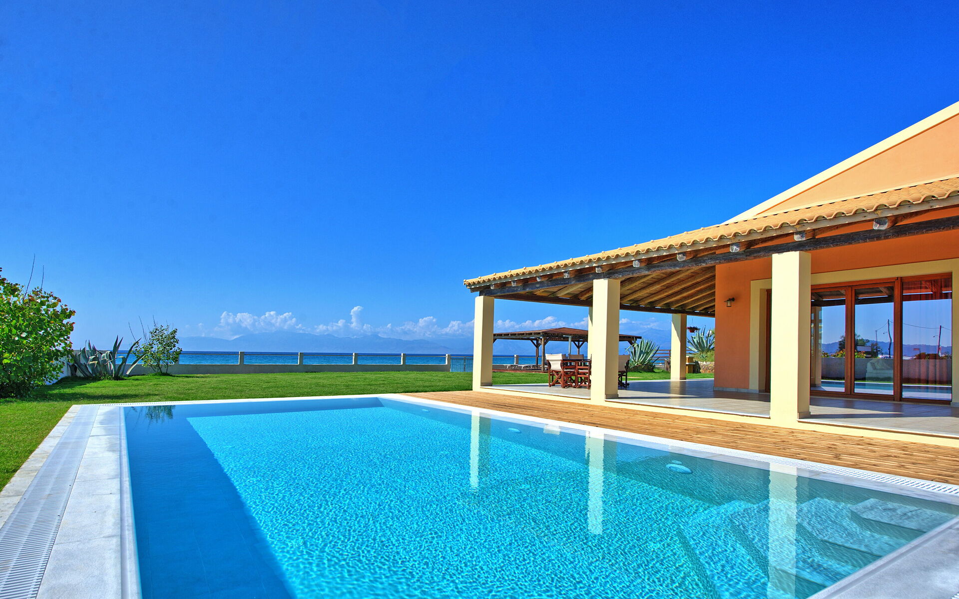 Villa avec piscine face à la mer, située dans la célèbre station balnéaire d'Acharavi. L'emplacement de la maison est extraordinaire, à seulement 10 mètres de la fantastique mer de Corfou!