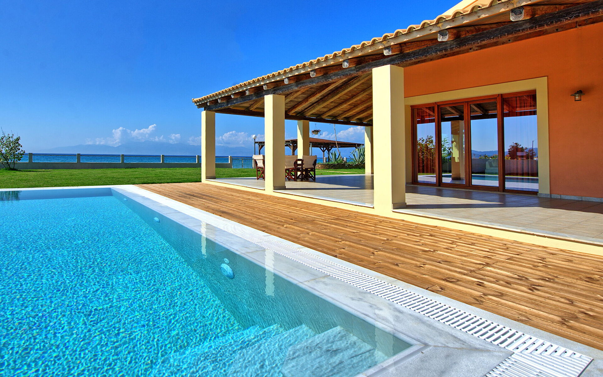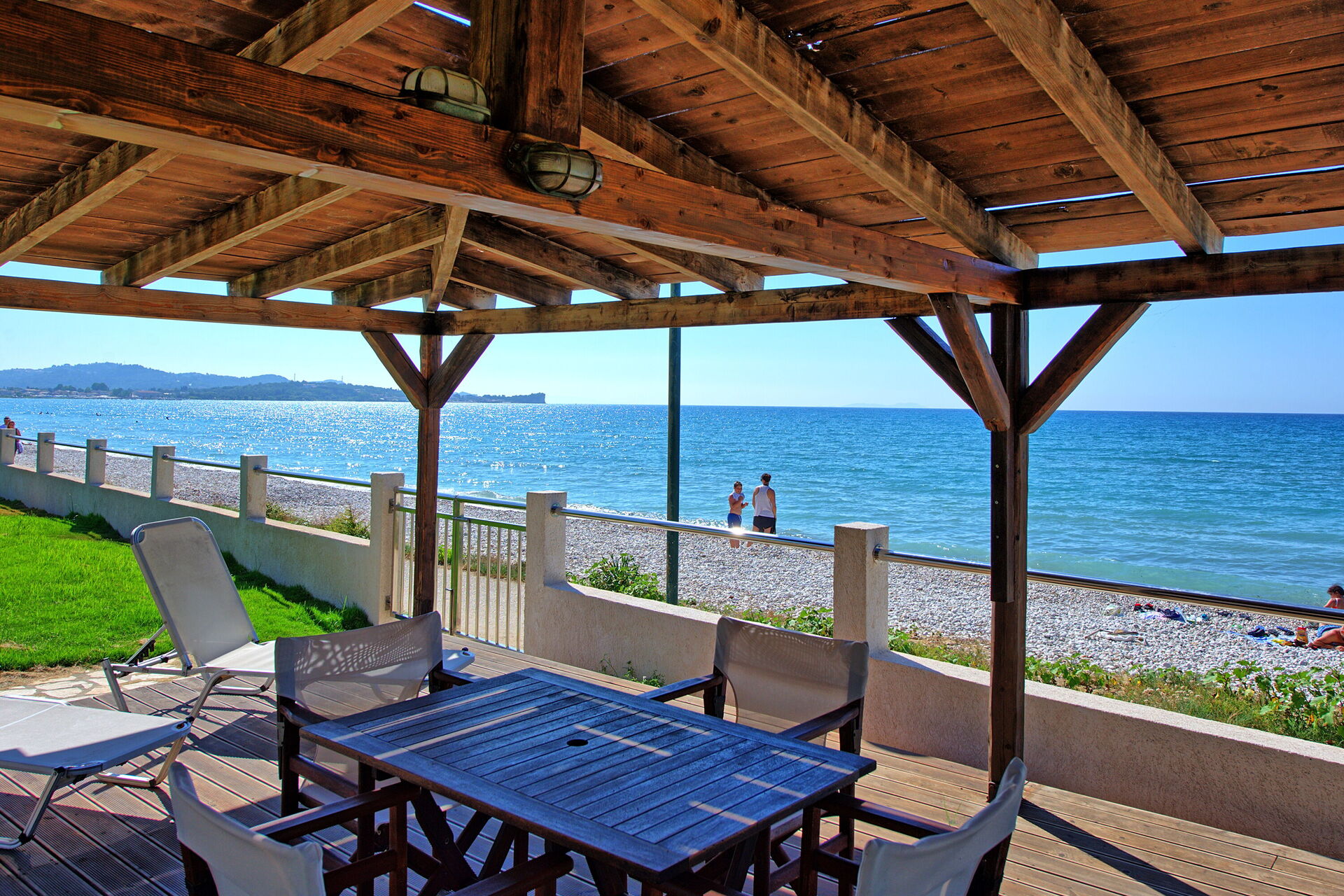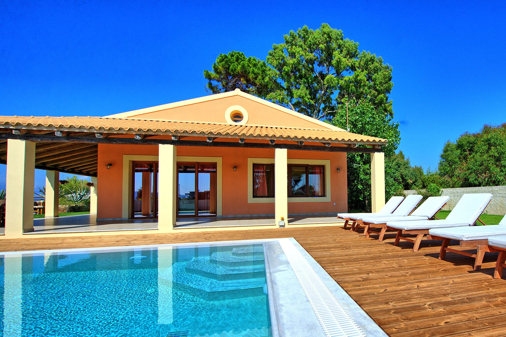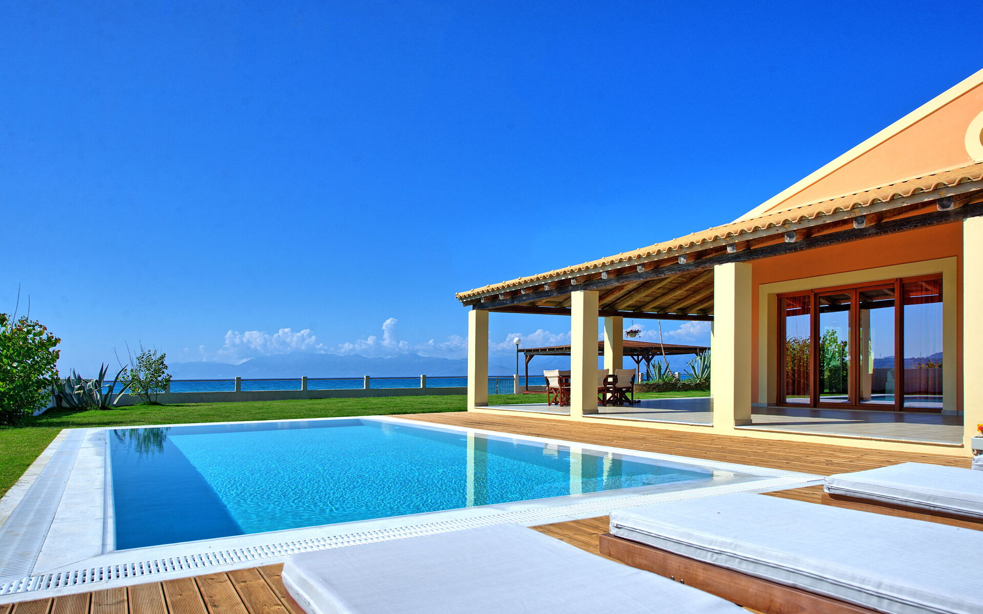 Villa avec piscine face à la mer, située dans la célèbre station balnéaire d'Acharavi. L'emplacement de la maison est extraordinaire, à seulement 10 mètres de la fantastique mer de Corfou!