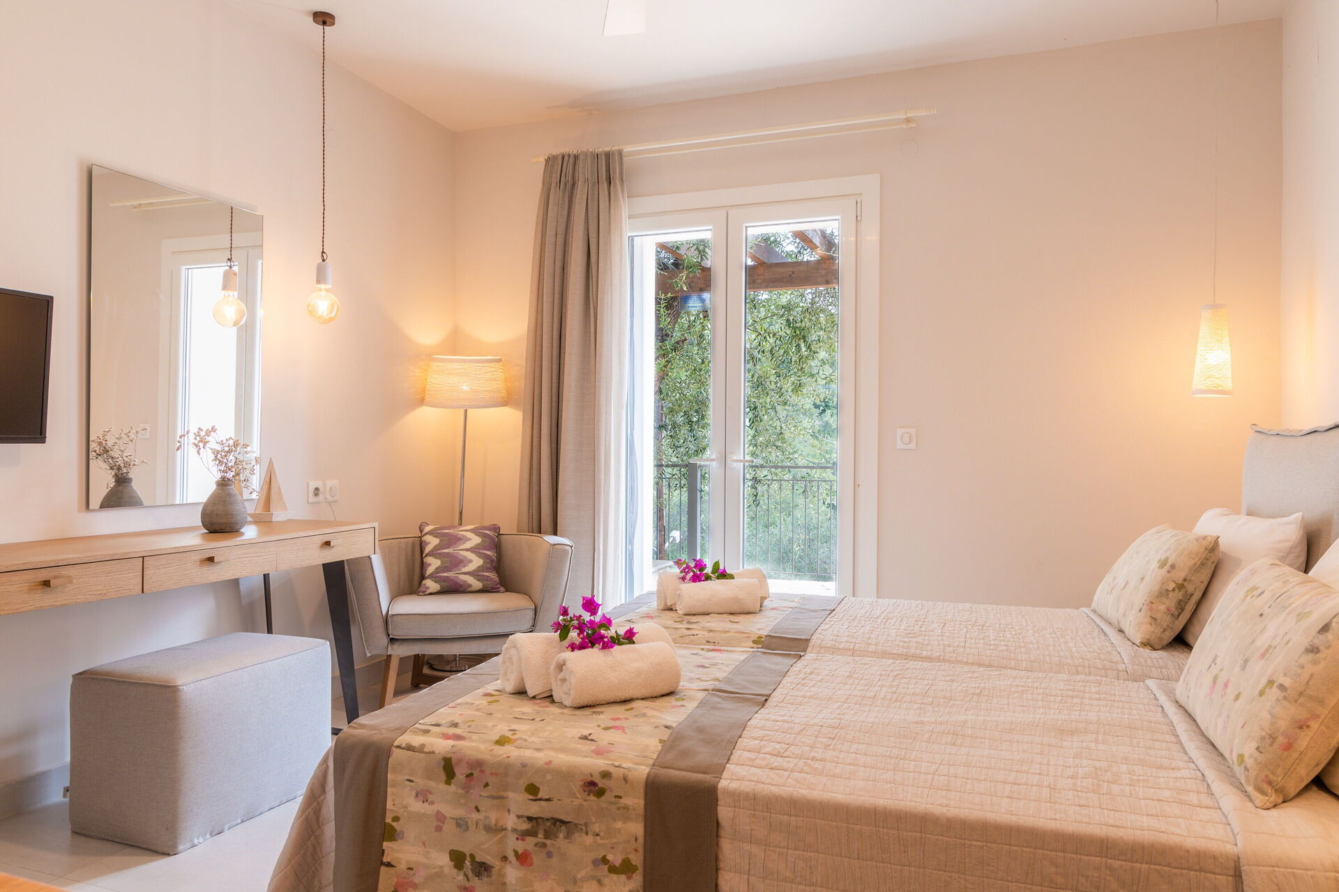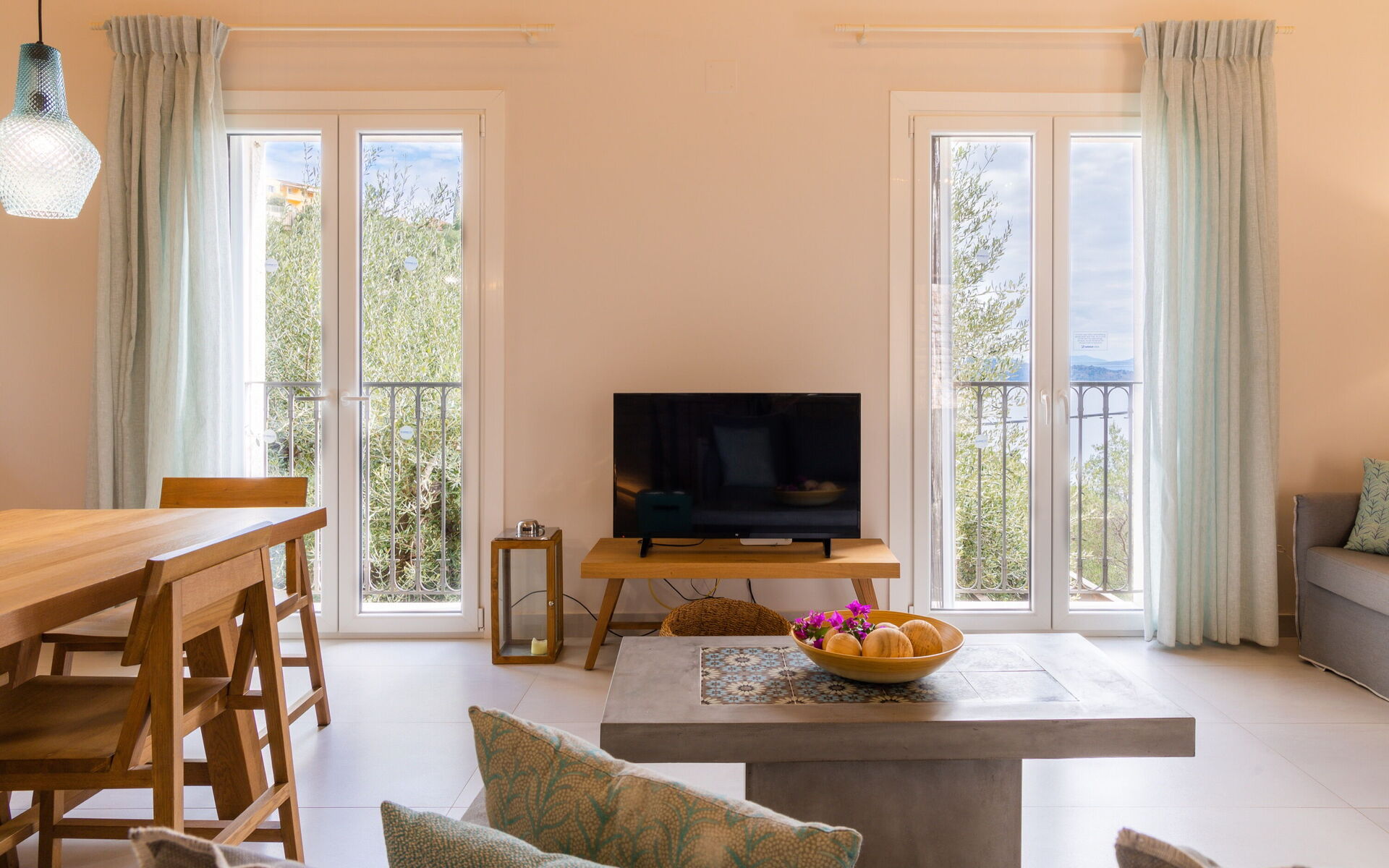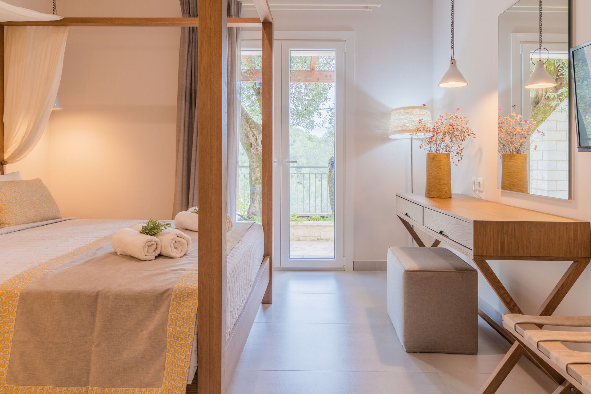 Distances : Agni (plage équipée et restaurants en bord de mer) à 650 m ; minimarket à environ 2,5 km ; Kalami à 4 km ; Kassiopi à 11 km ; Acharavi à 22 km ; Corfu Town à 27 km.