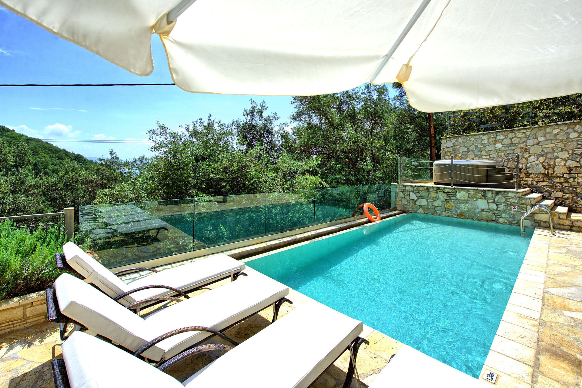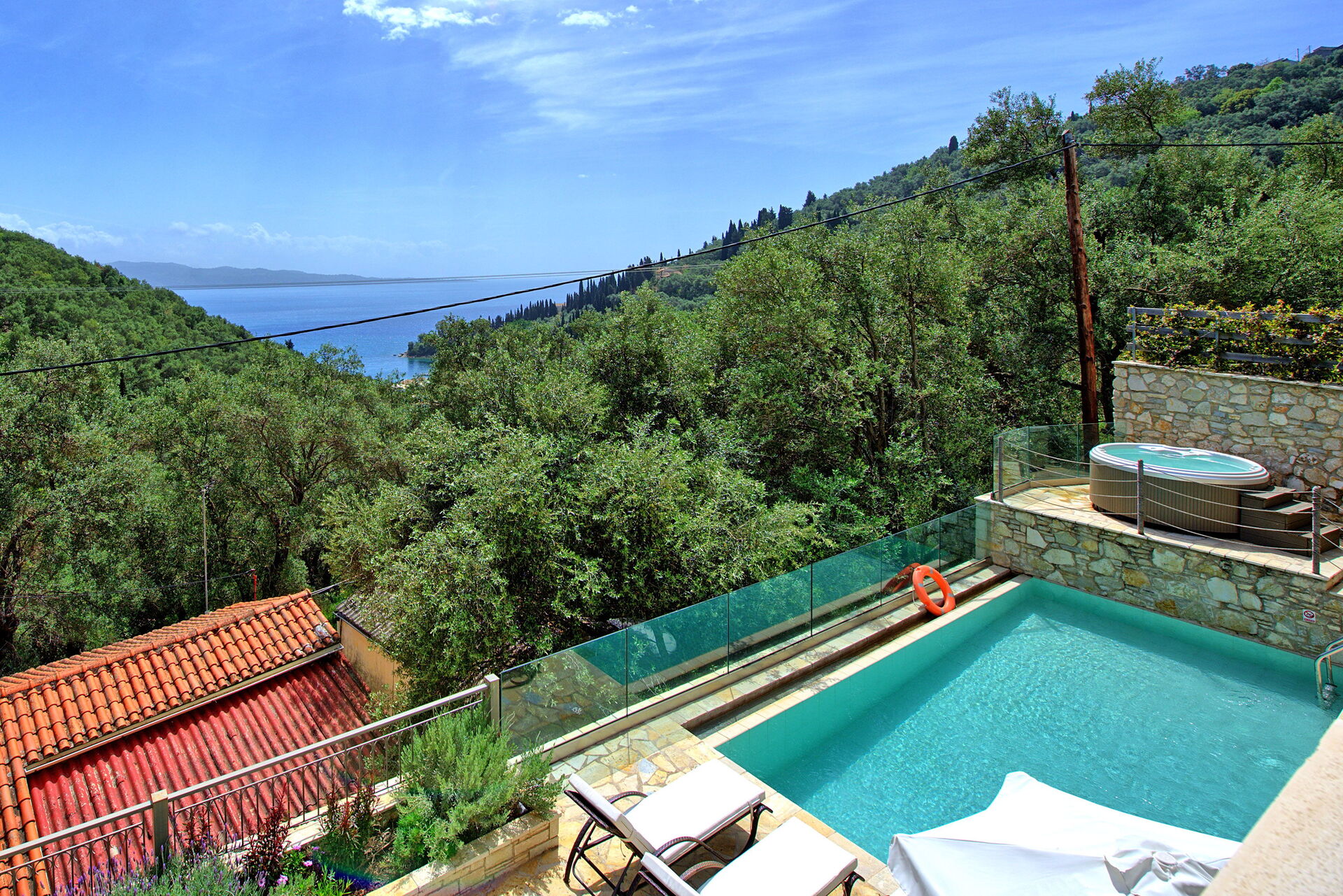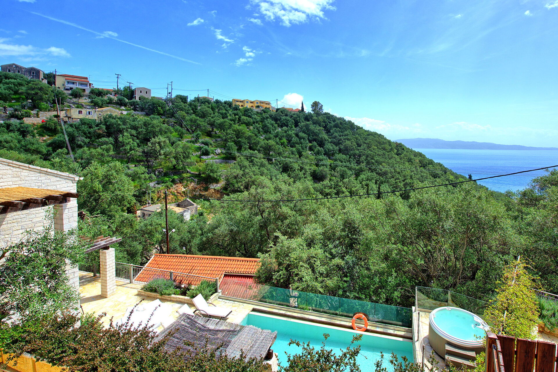 Cette maison dispose d'une piscine privée, d'un jacuzzi extérieur et de vues panoramiques sur la mer. Elle est confortablement meublée dans un style moderne et équipée de tout le confort.