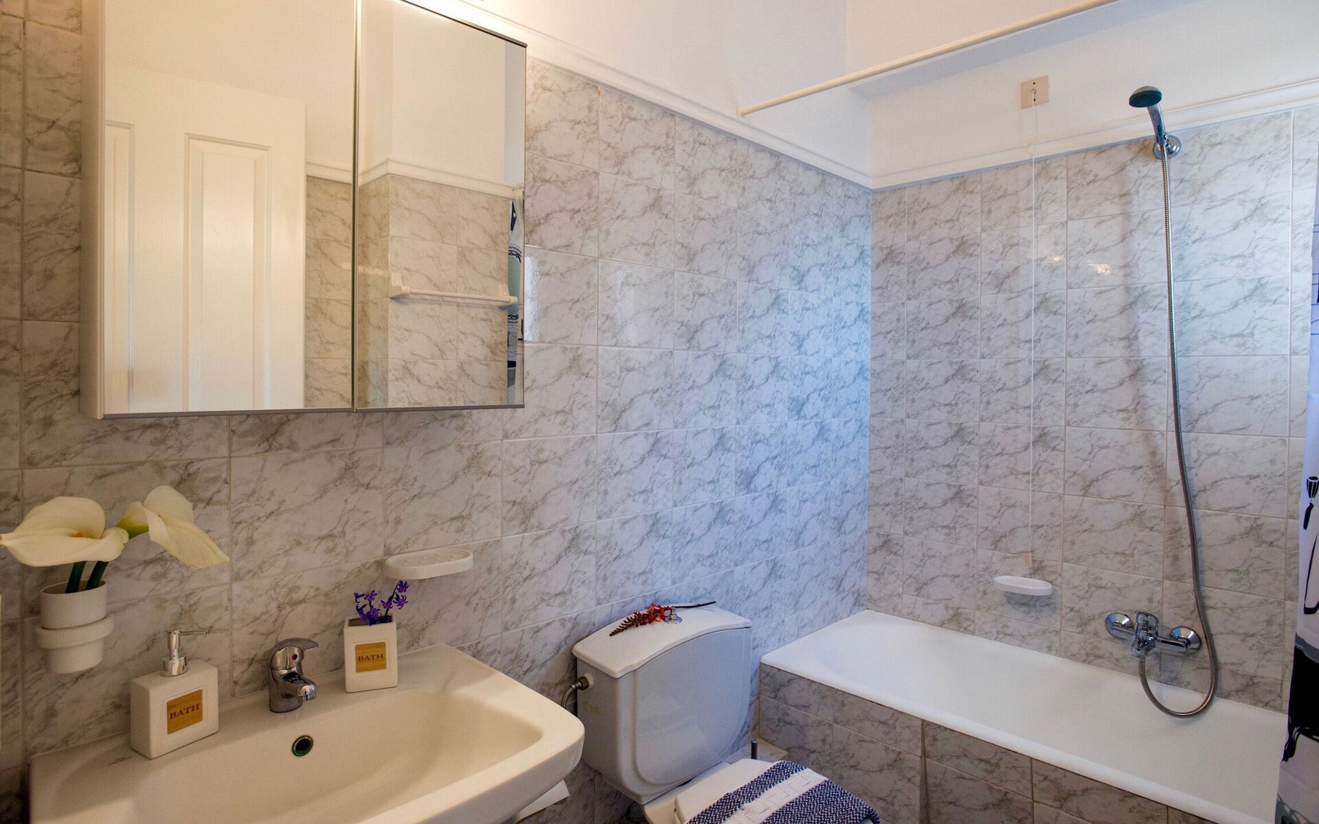 1 appartement avec 1 chambre double (air conditionné), 1 chambre à deux lits (air conditionné), salon avec 1 canapé-lit, coin cuisine, salle de bain, terrasse meublée.