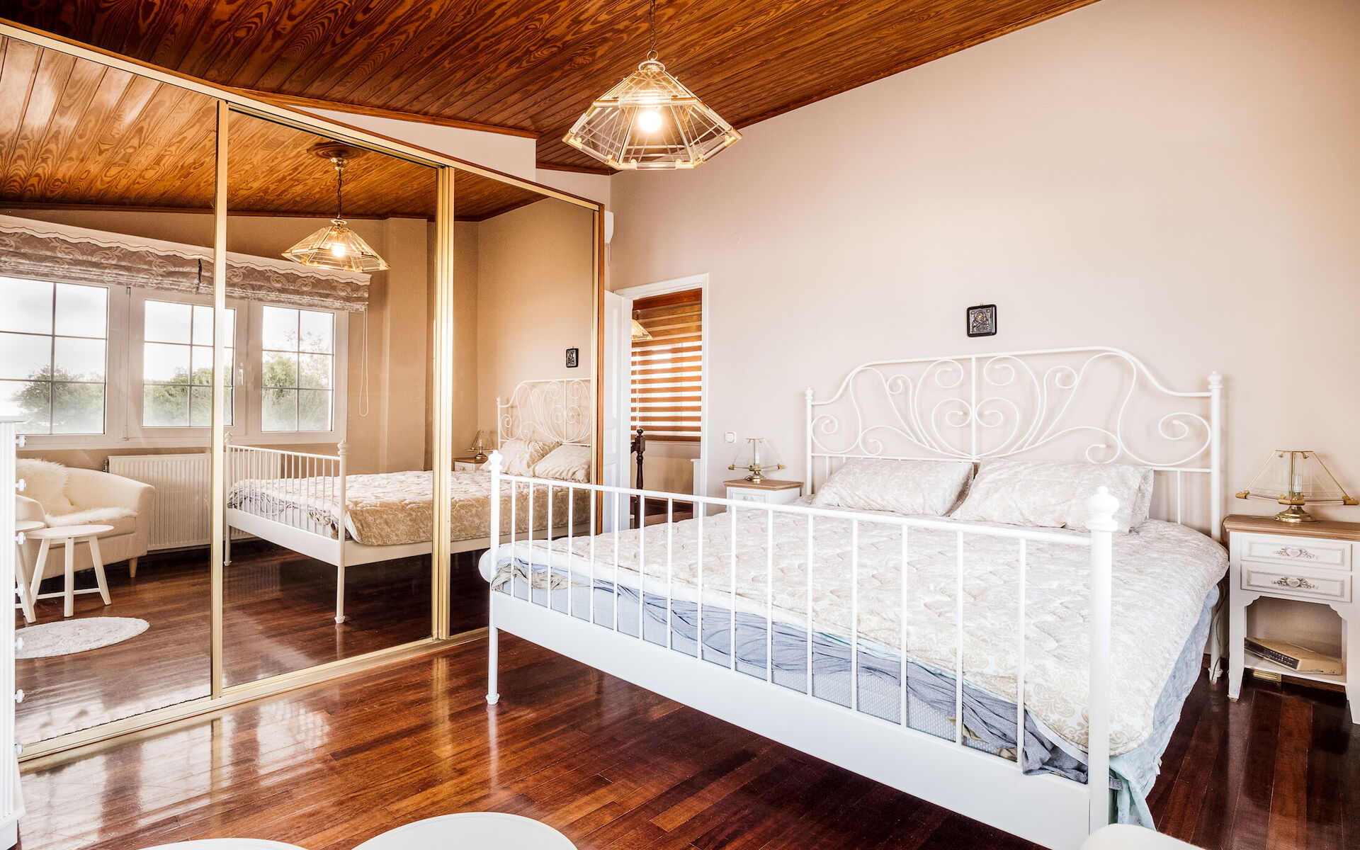 Premier et deuxième étage: maison principale avec grand salon pour tous les invités, cuisine entièrement équipée, 1 chambre double (air conditionné), 2 chambres à deux lits (air conditionné), 2 salles de bains, terrasse meublée.