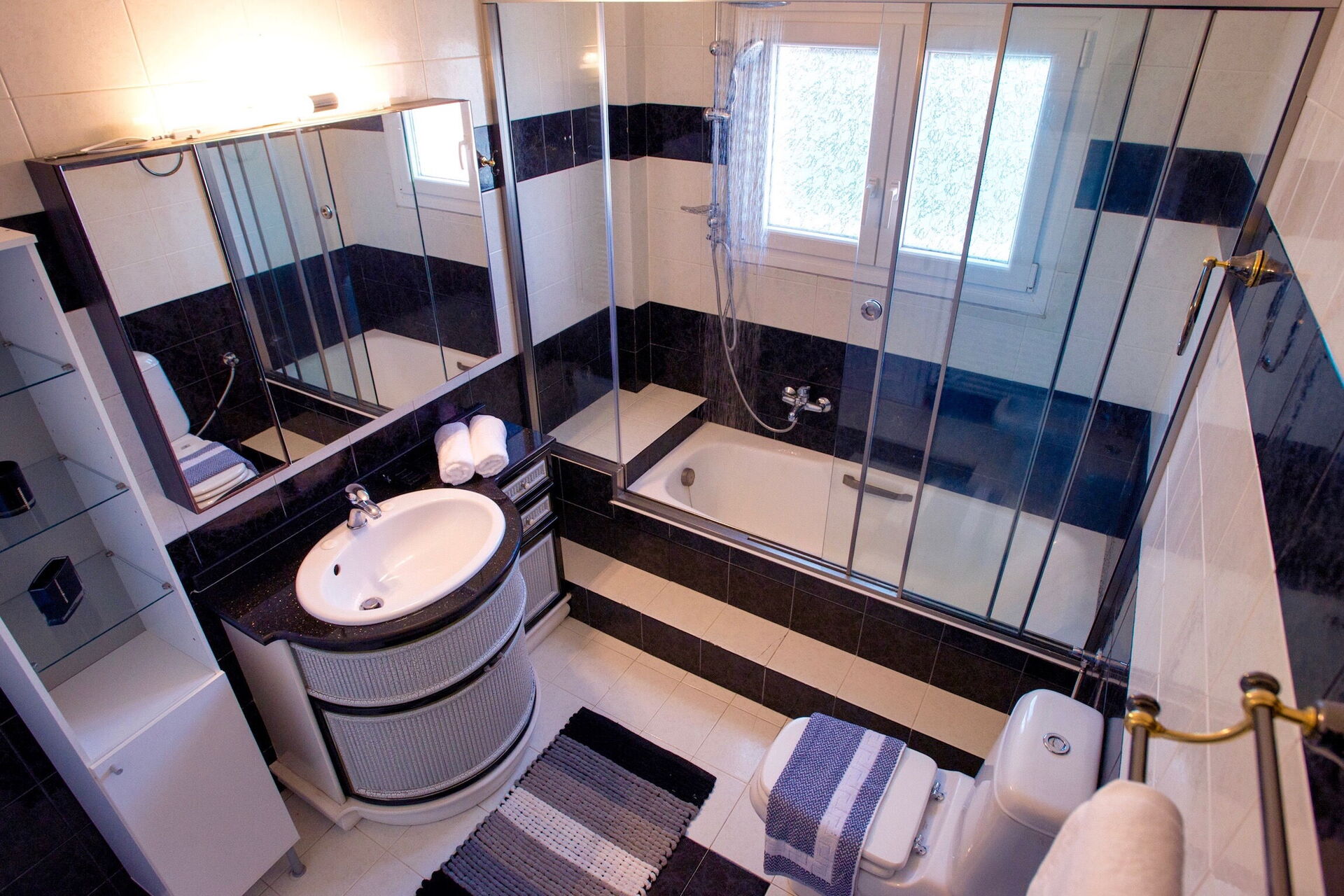 La villa est répartie sur 3 étages et est formée d'une maison principale au premier et au deuxième étage (3 chambres à coucher et 2 salles de bains) ainsi que de 3 appartements indépendants (2 appartements avec 2 chambres à coucher, 1 appartement avec 1 chambre à coucher) au rez-de-chaussée, loués tous ensemble pour former une grande villa avec piscine privée qui peut accueillir jusqu'à 16/18 personnes avec 8 chambres à coucher et 6 salles de bains. Les grands espaces communs, tant à l'intérieur qu'à l'extérieur, sont parfaits pour passer du temps ensemble, mais la disposition intelligente permet de préserver l'intimité lorsque cela est nécessaire. La vue sur la mer depuis les chambres et les jardins est vraiment magnifique !