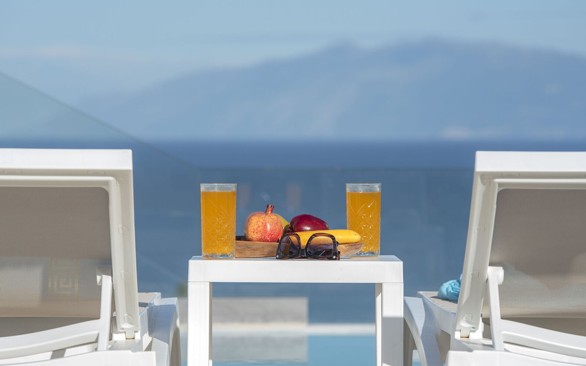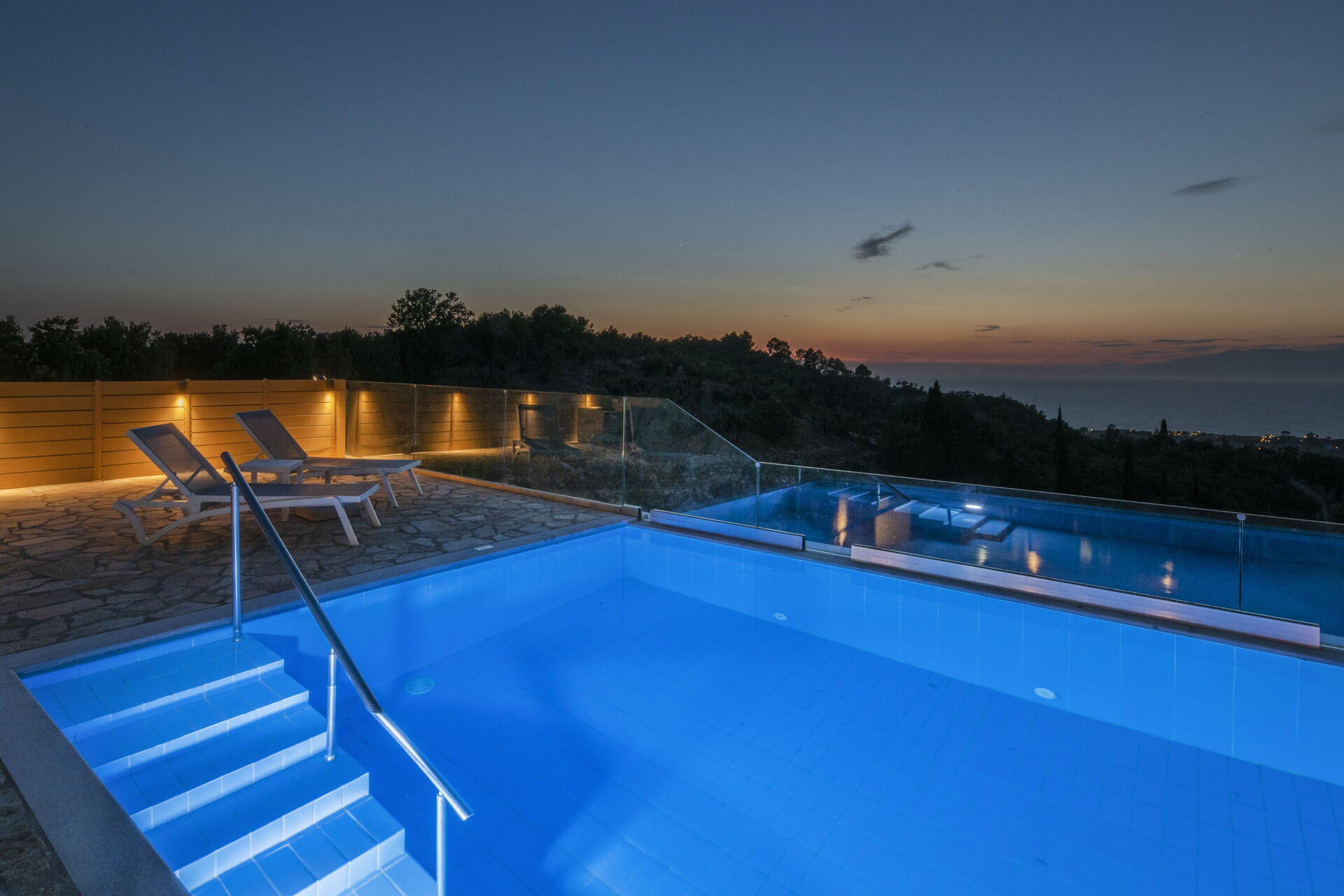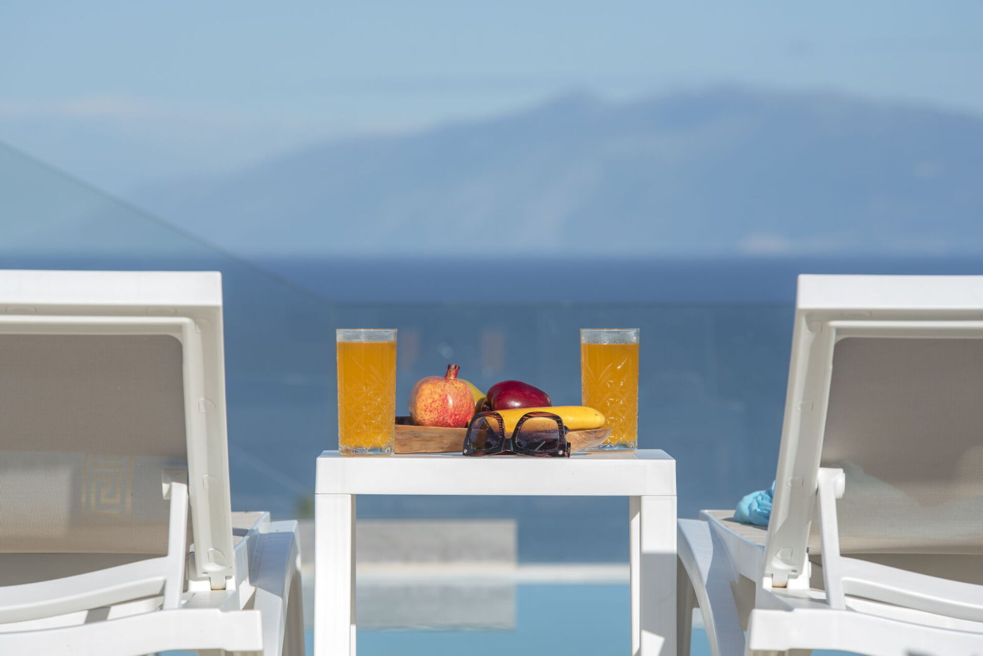 Villa Portes est entourée des montagnes de l'île. Jardin luxuriant, riche en plantes et fleurs et une piscine panoramique qui vous permettra de jouir d'une vue splendide sur la mer. Espace barbecue équipé (table et chaises) pour les repas en plein air.