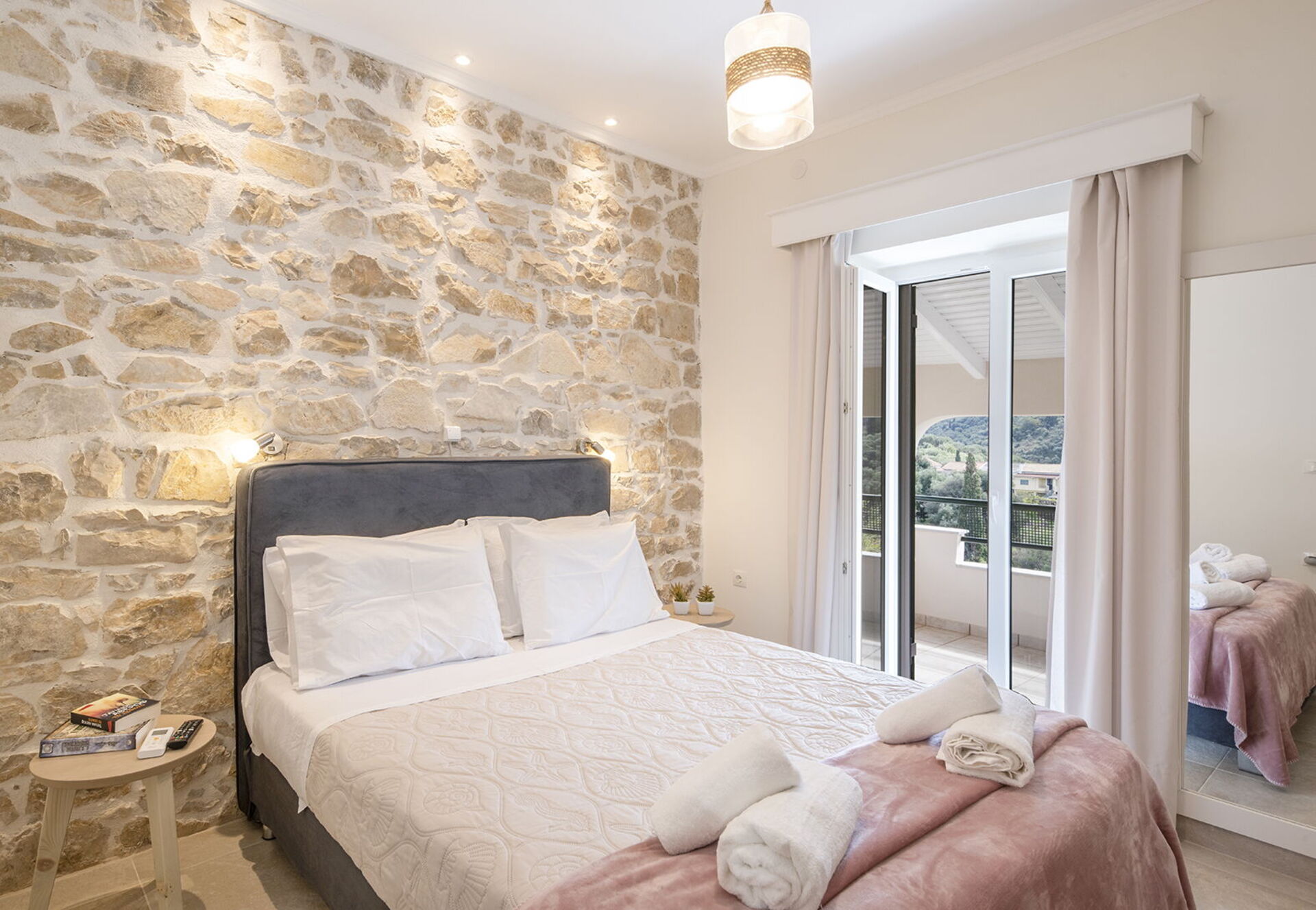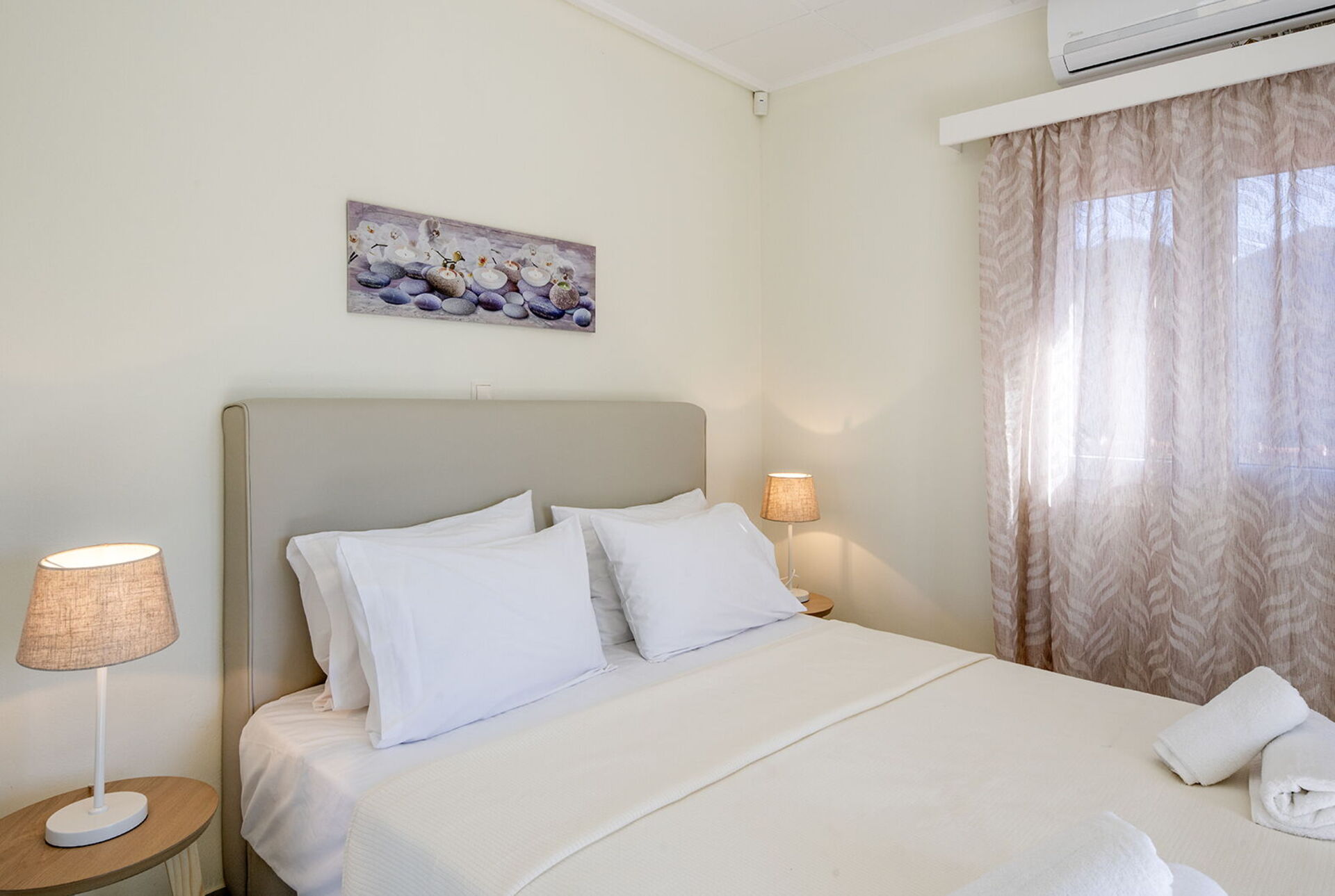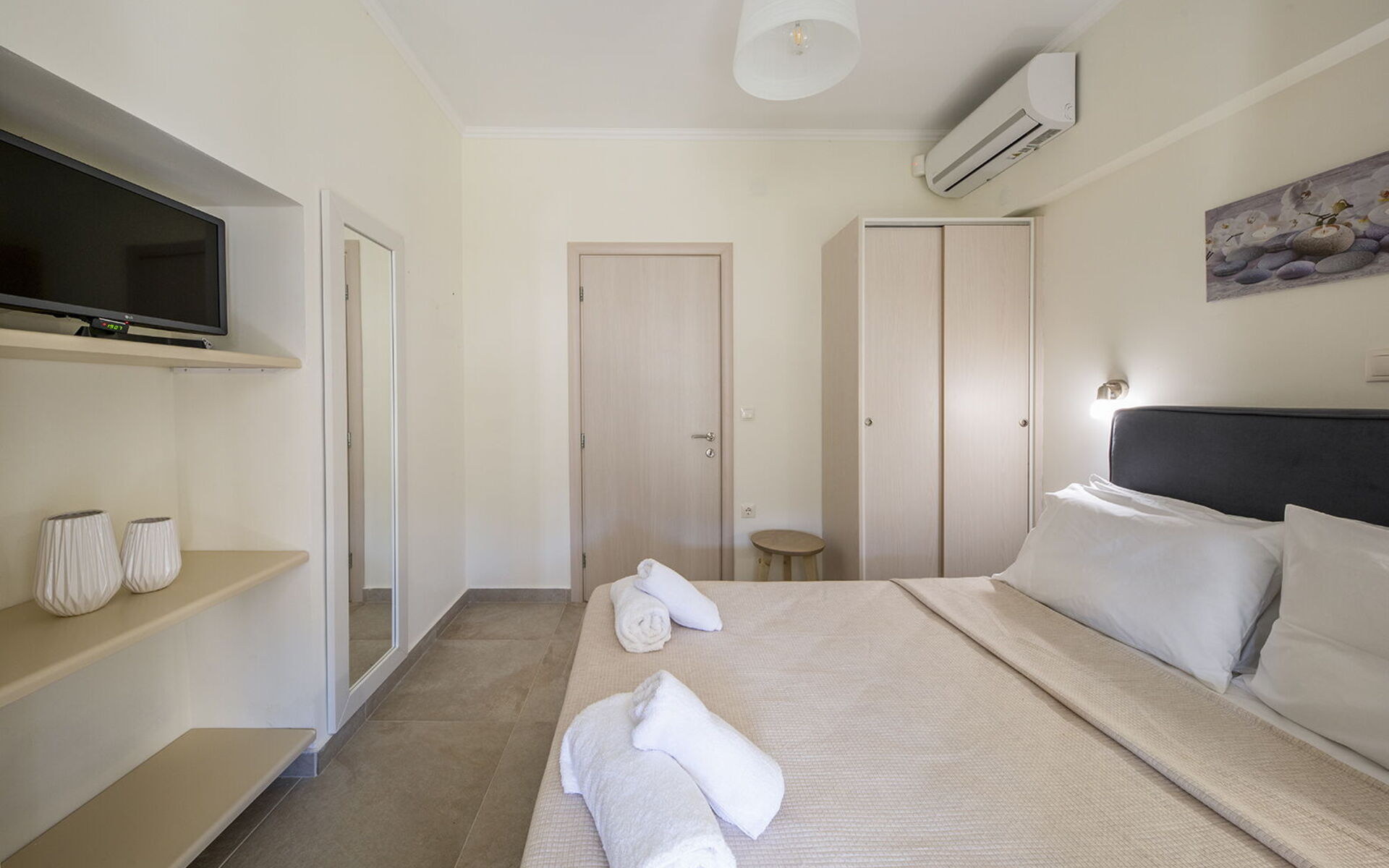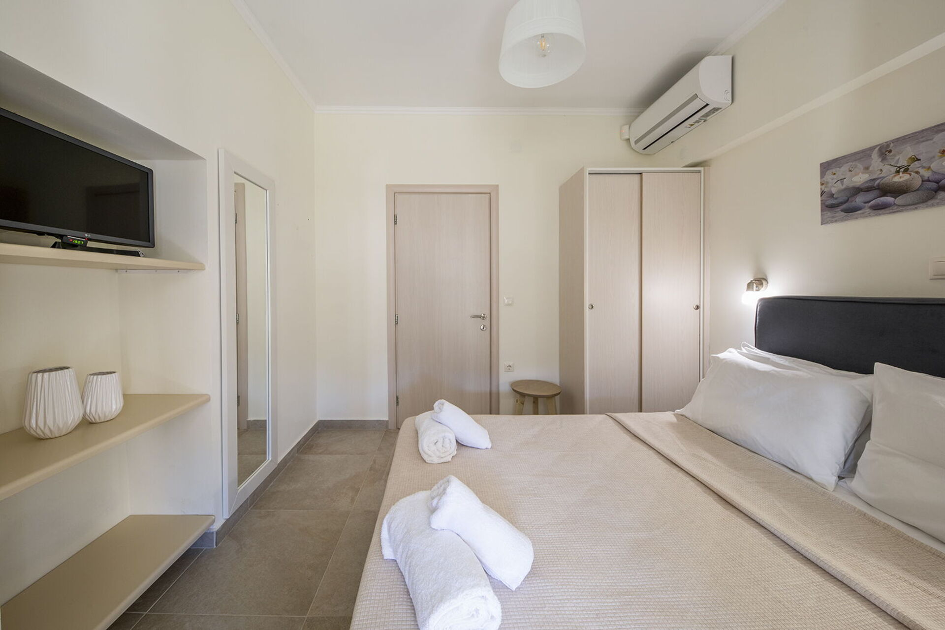 Distances : mer à 2,50km, Acharavi avec magasins variés à 3,50km, Kassiopi à 12km, Agios Stefanos à 16km, la ville de Corfou (aéroport) à 45km.