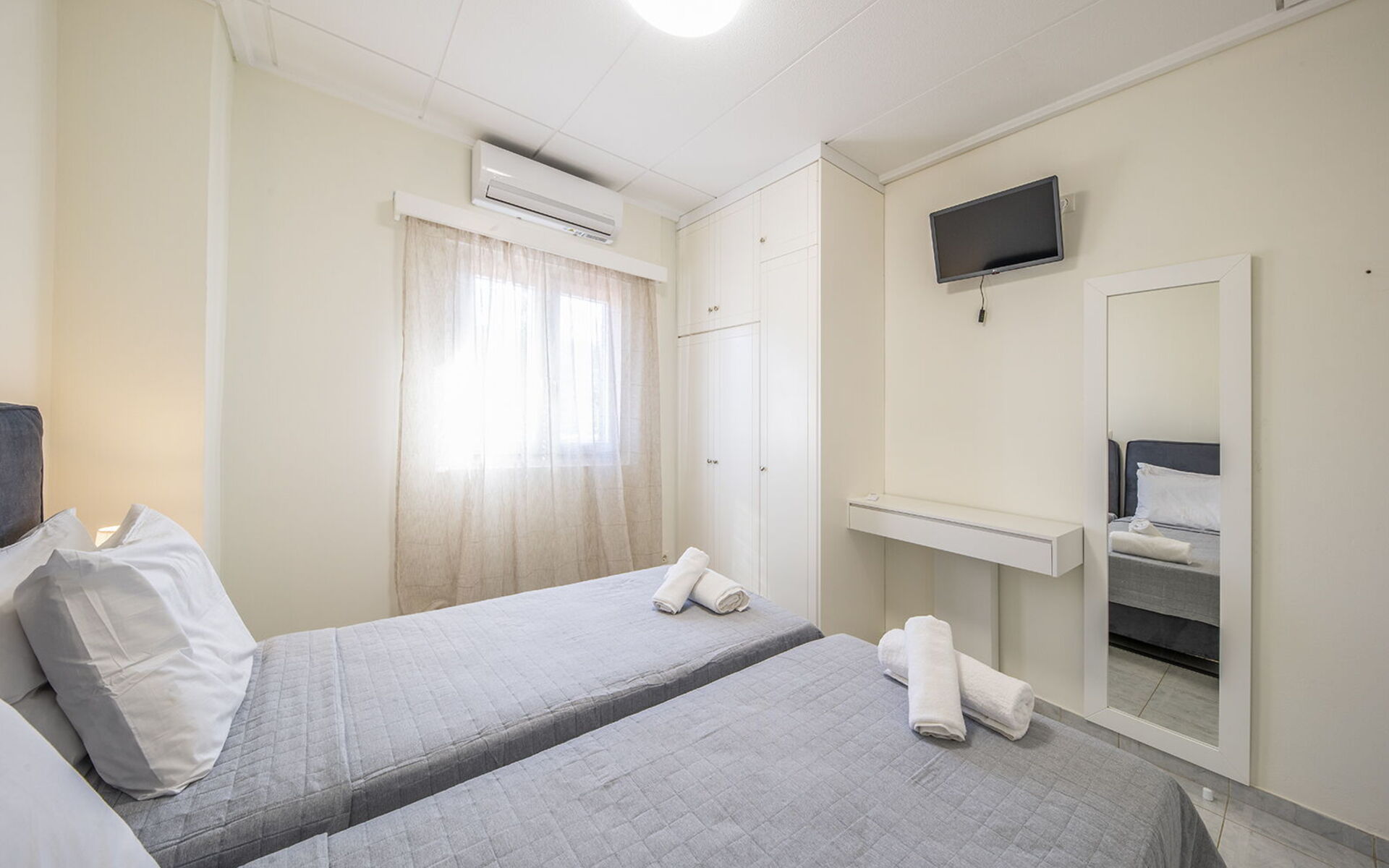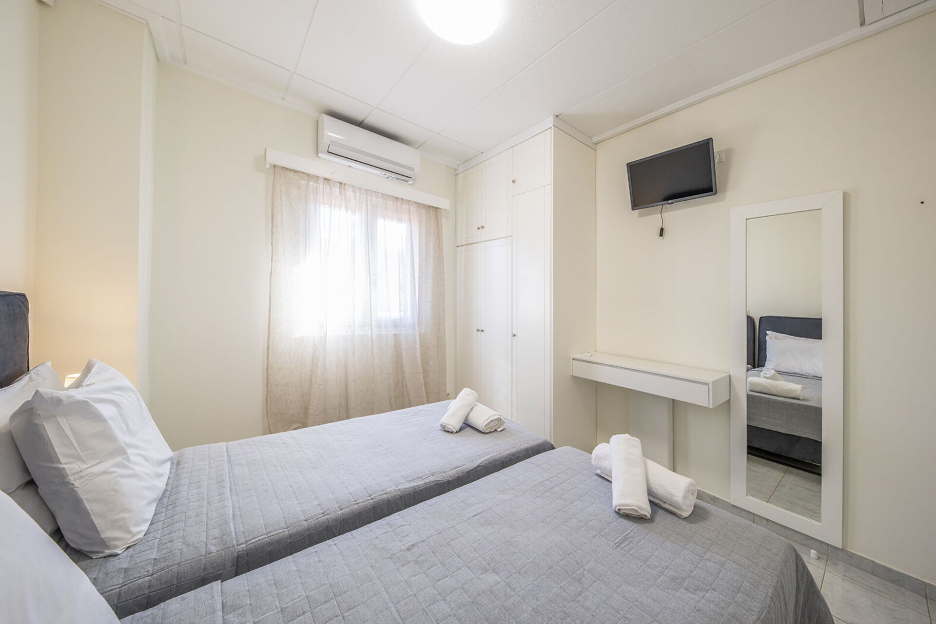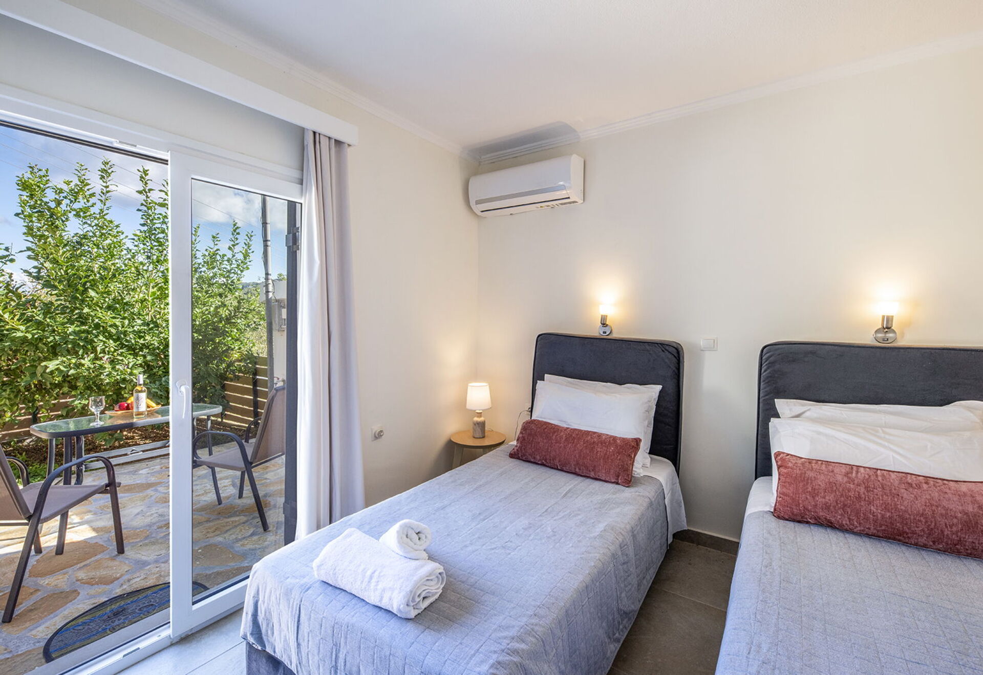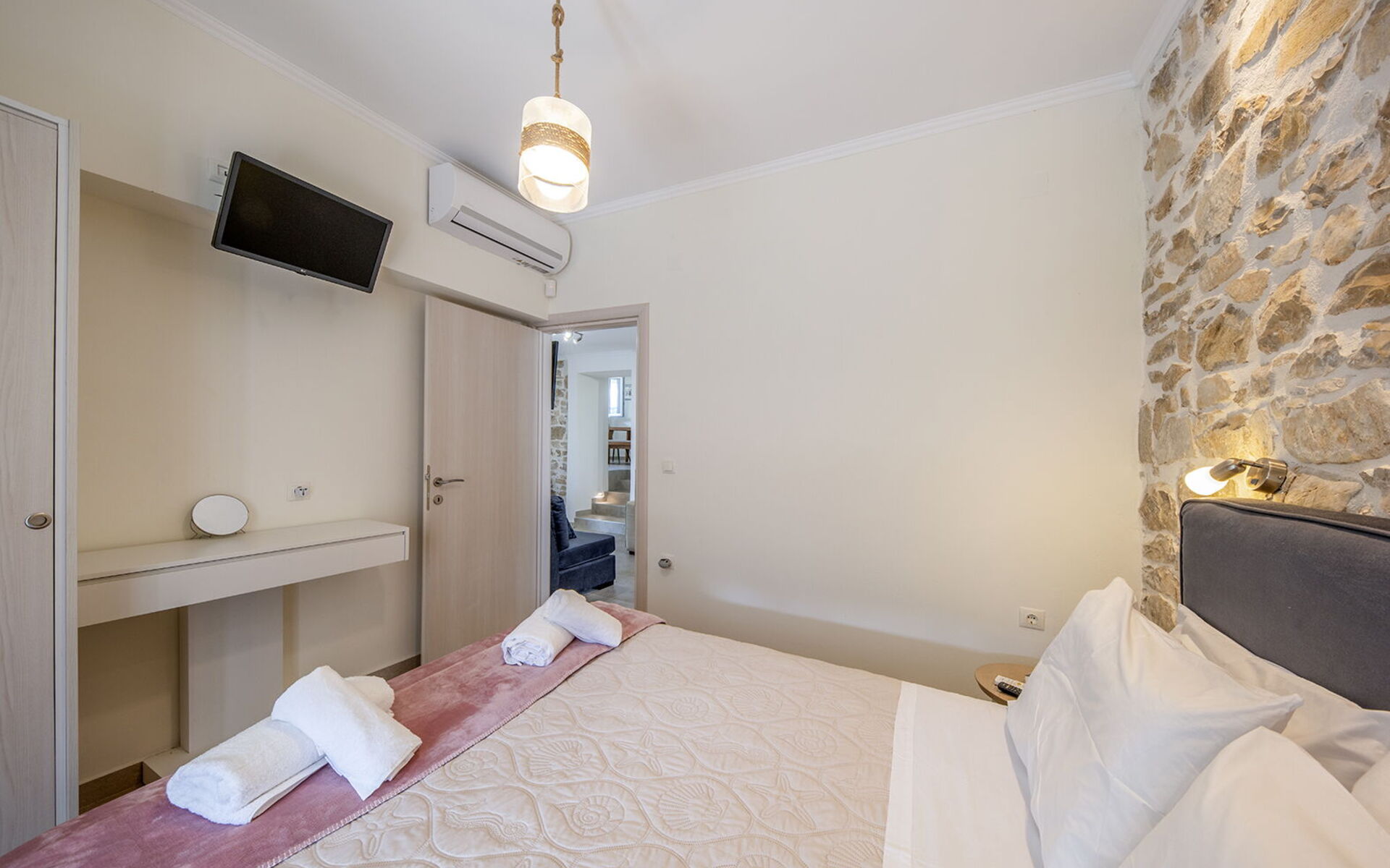 Distances : mer à 2,50km, Acharavi avec magasins variés à 3,50km, Kassiopi à 12km, Agios Stefanos à 16km, la ville de Corfou (aéroport) à 45km.