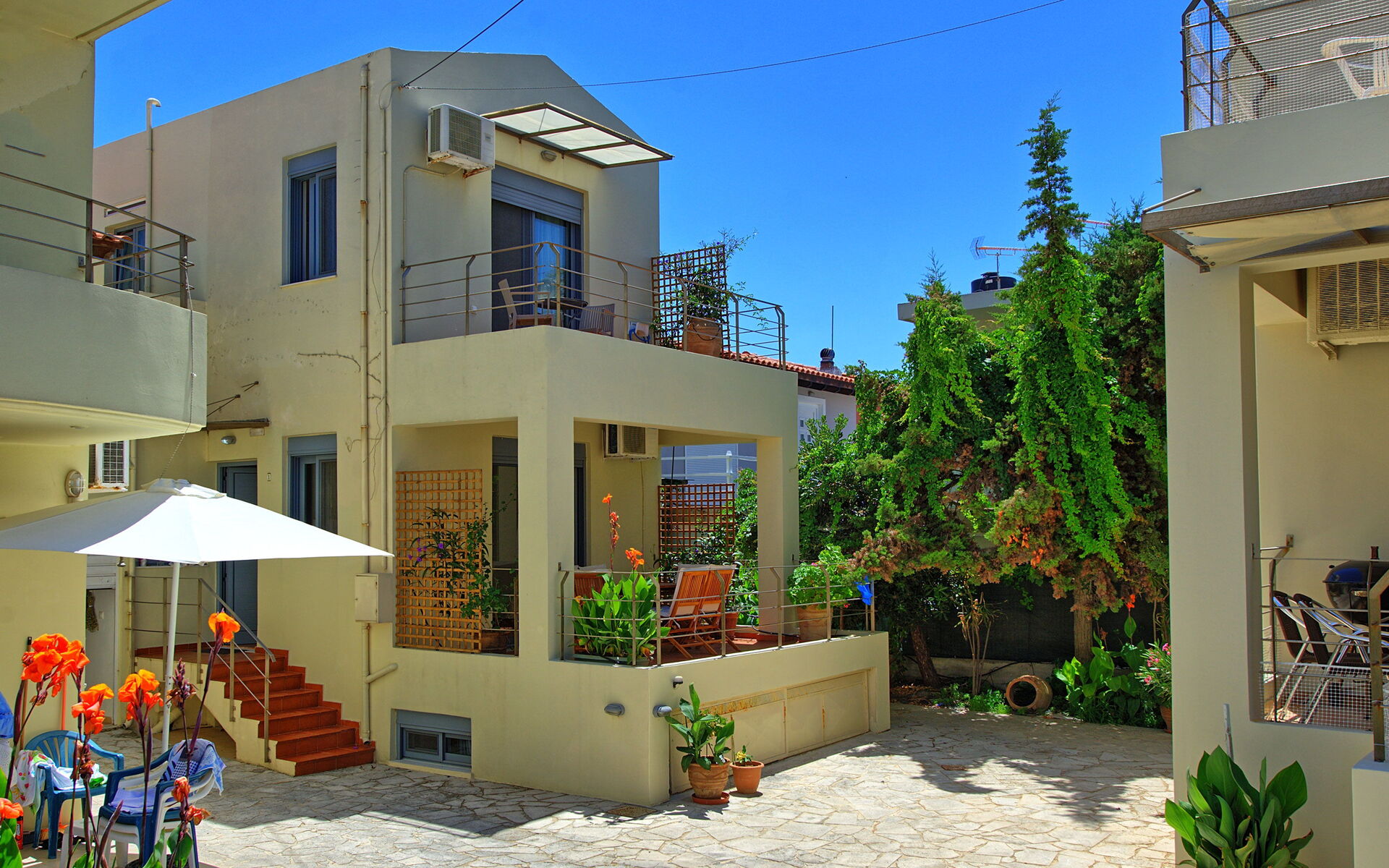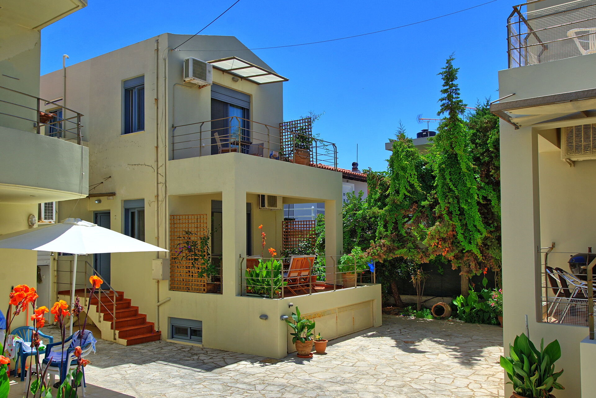 Les appartements sont dotés de tout confort, meublés avec goût et offrent 3 chambres à coucher (Katellina) et 2 chambres à coucher (Emmanouela). Chaque appartement dispose d'un espace extérieur privé pour les repas plein air.