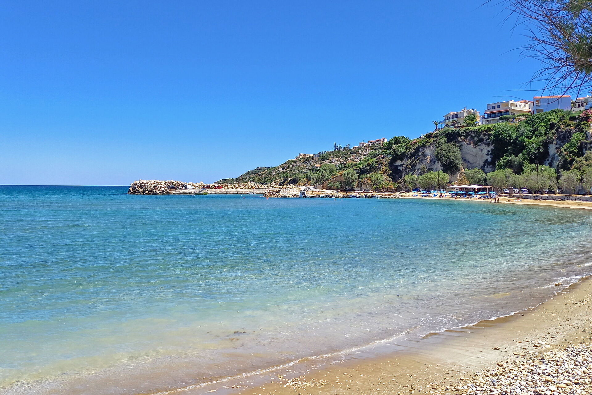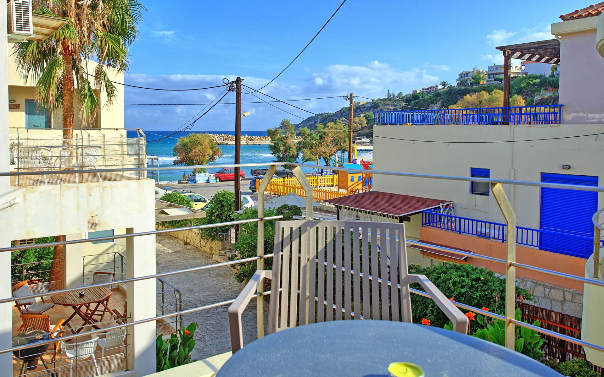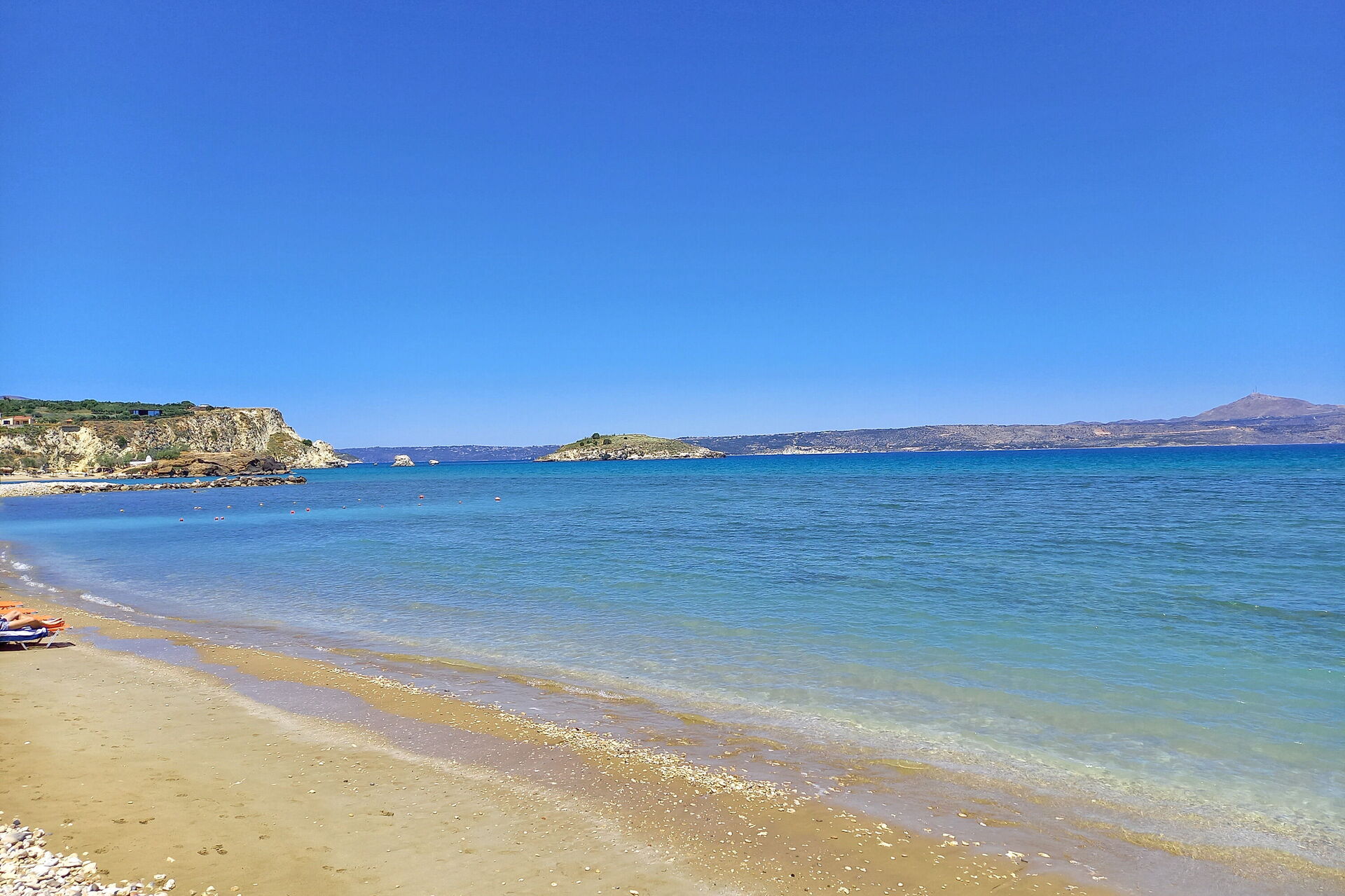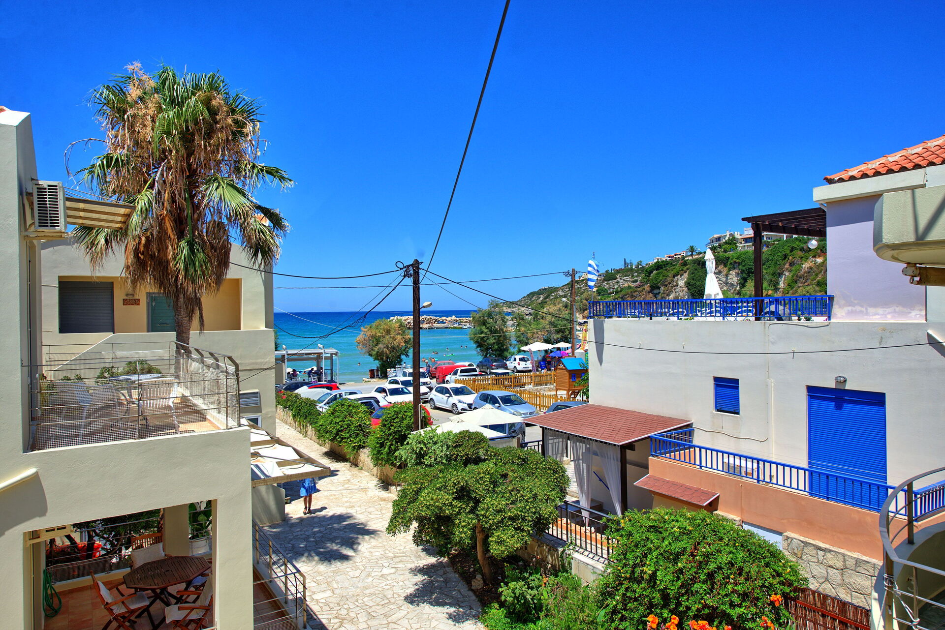 Distances: mer à 50m ; magasins, bars, restaurants et activités variées (location de voiture) à quelques mètres ; Chania à 25 km ; aéroport à 35km.
