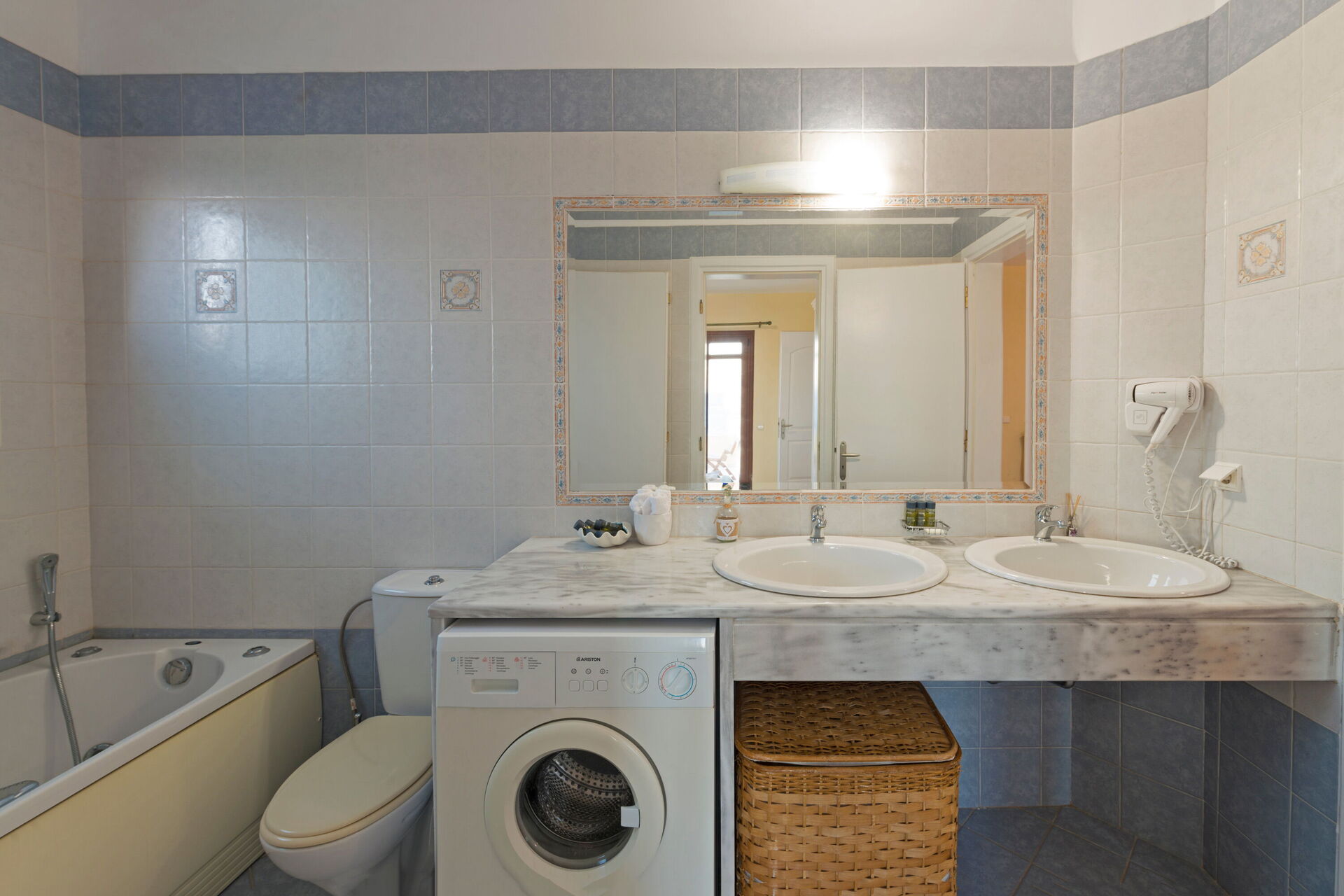 Premier étage: une chambre double (air conditionné), une chambre (air conditionné) avec 2 lits à une place, salle de bains (accessible des deux chambres) avec baignoire hydromassage et lave-linge, terrasse panoramique équipée.