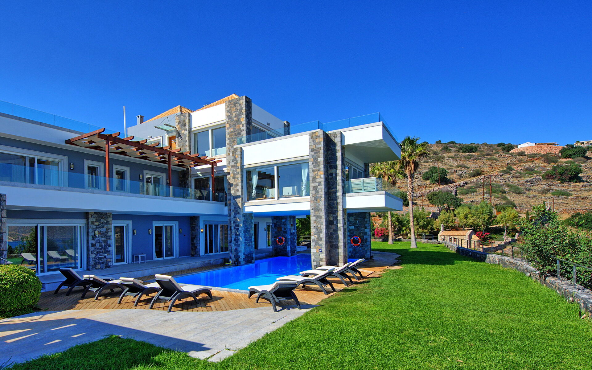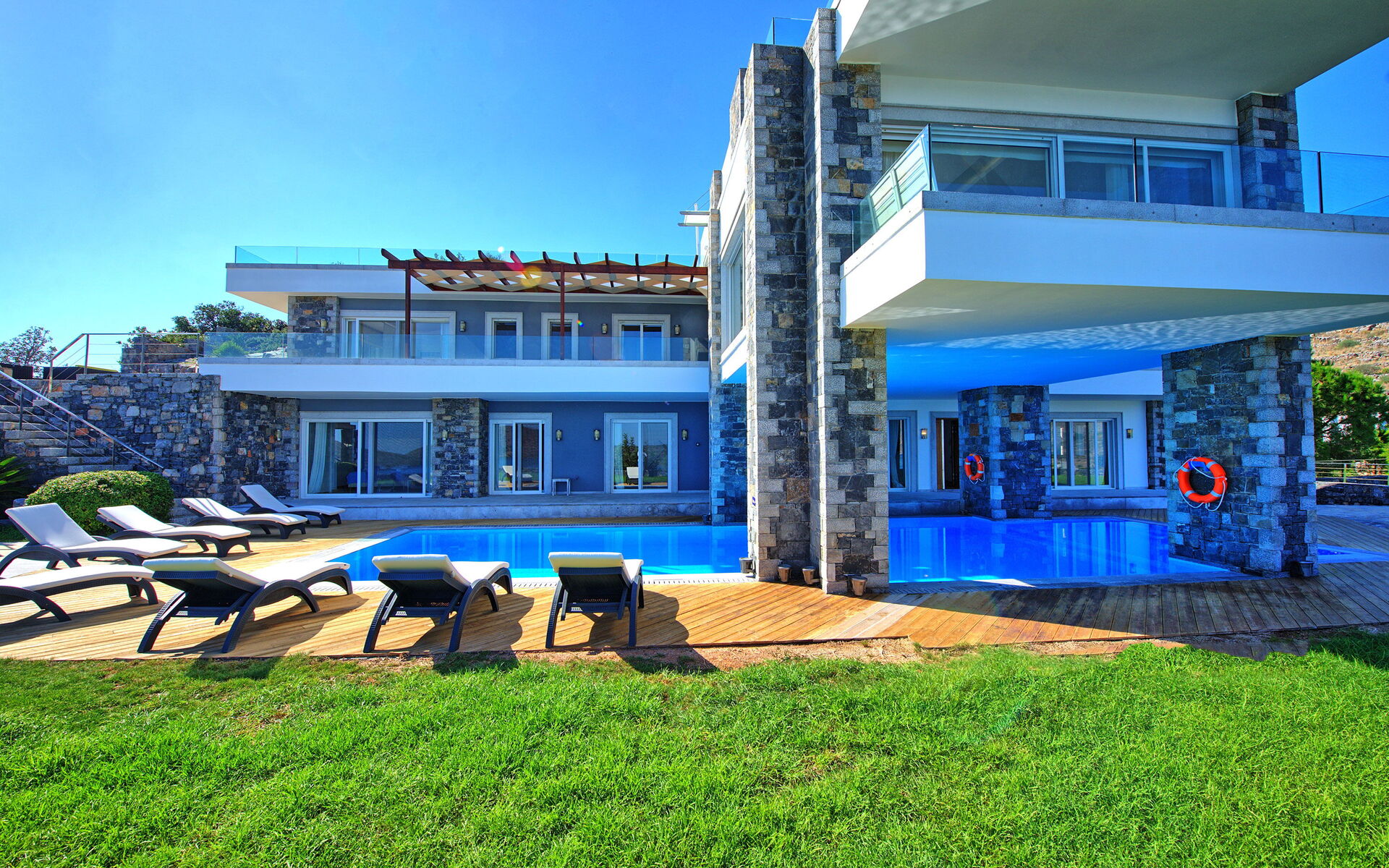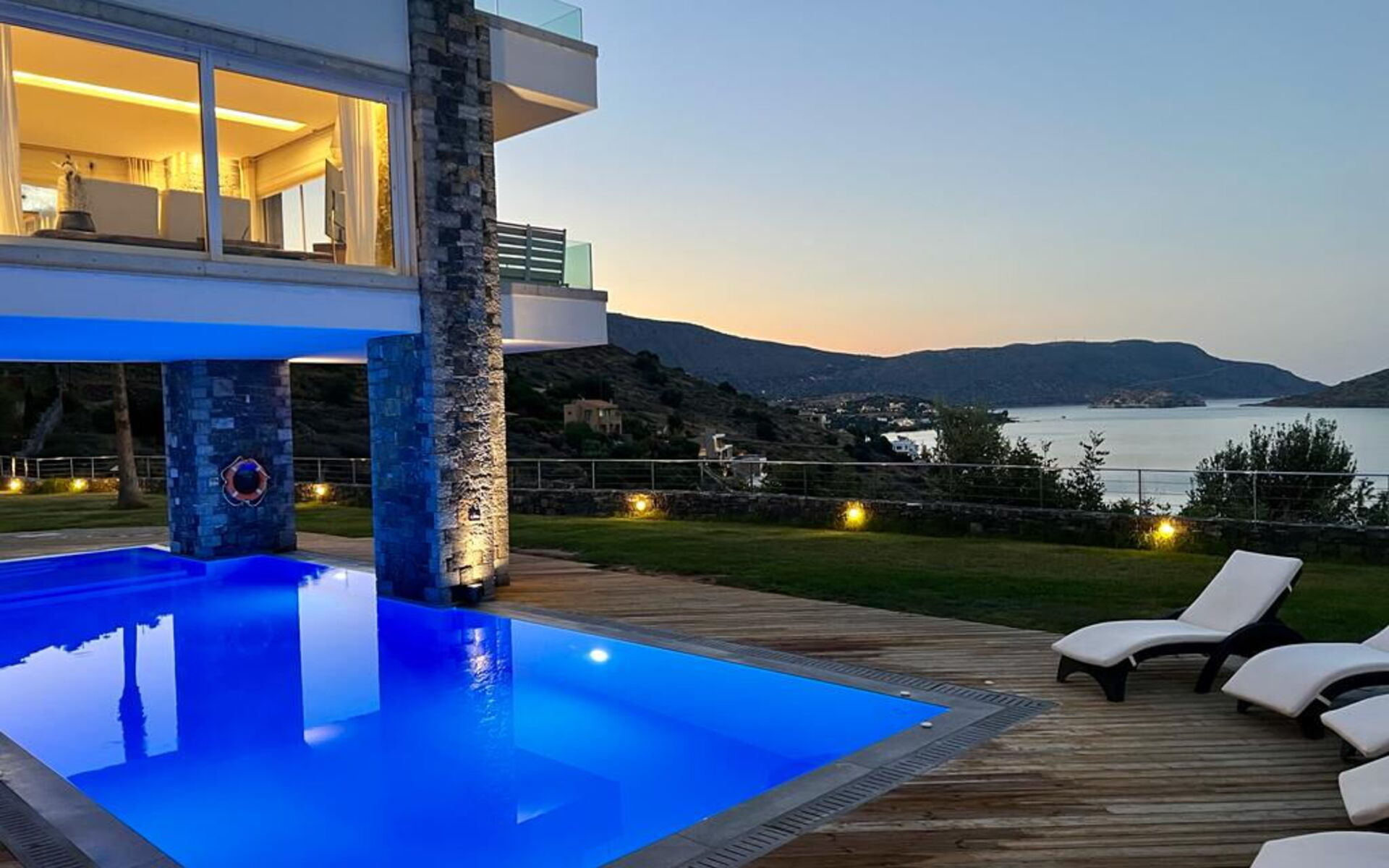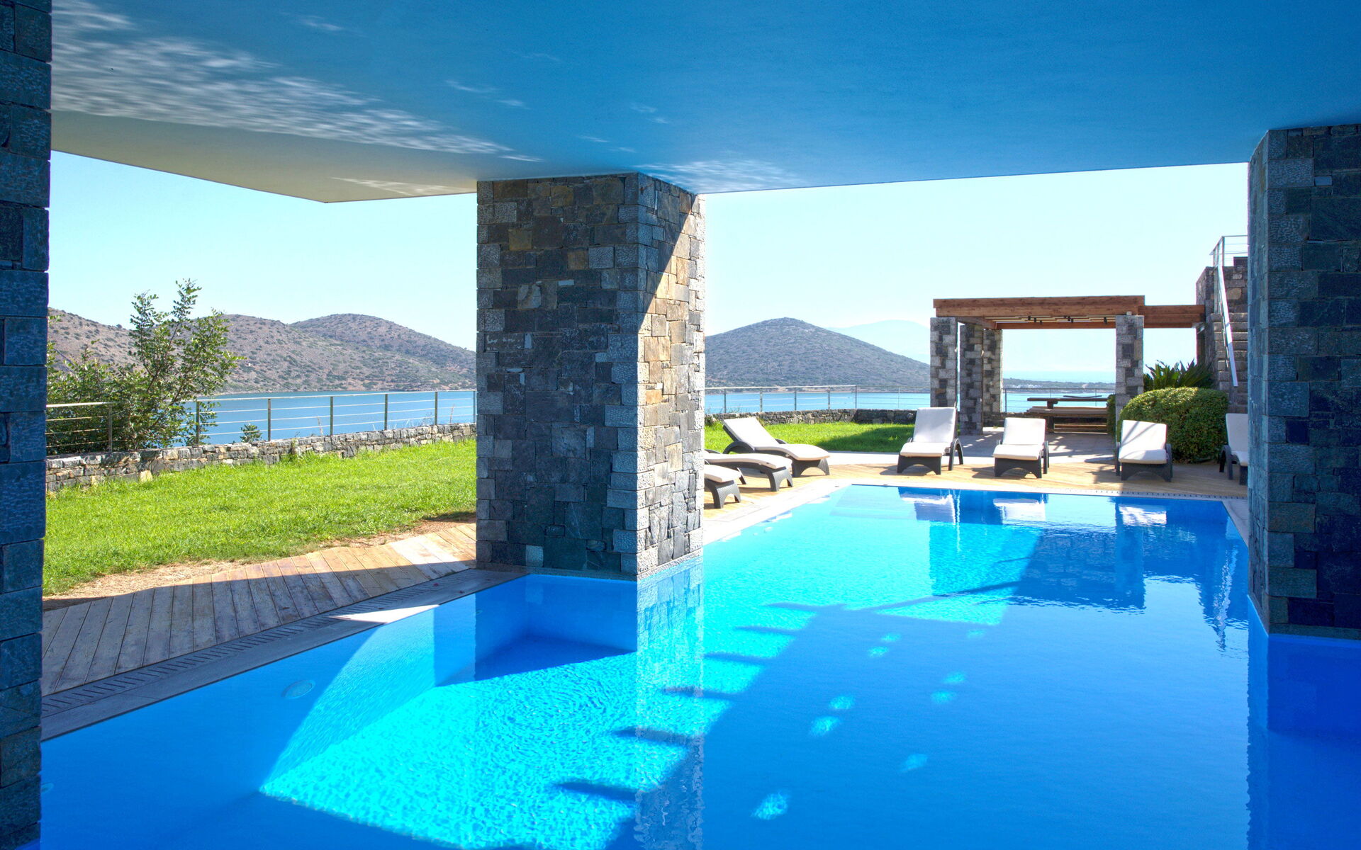 Luxueuse villa à louer avec piscine privée à Elounda, sur l’île de Crête.