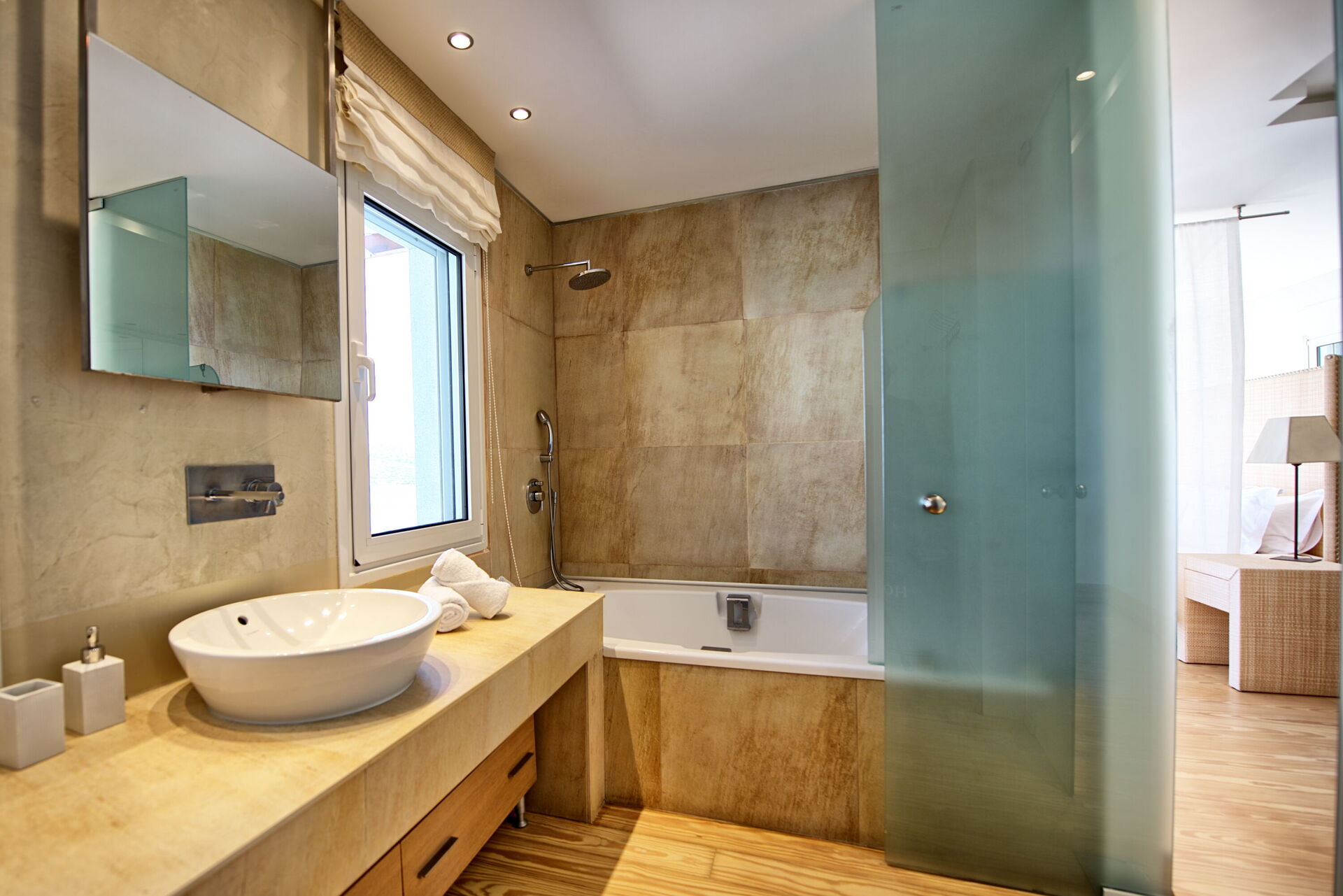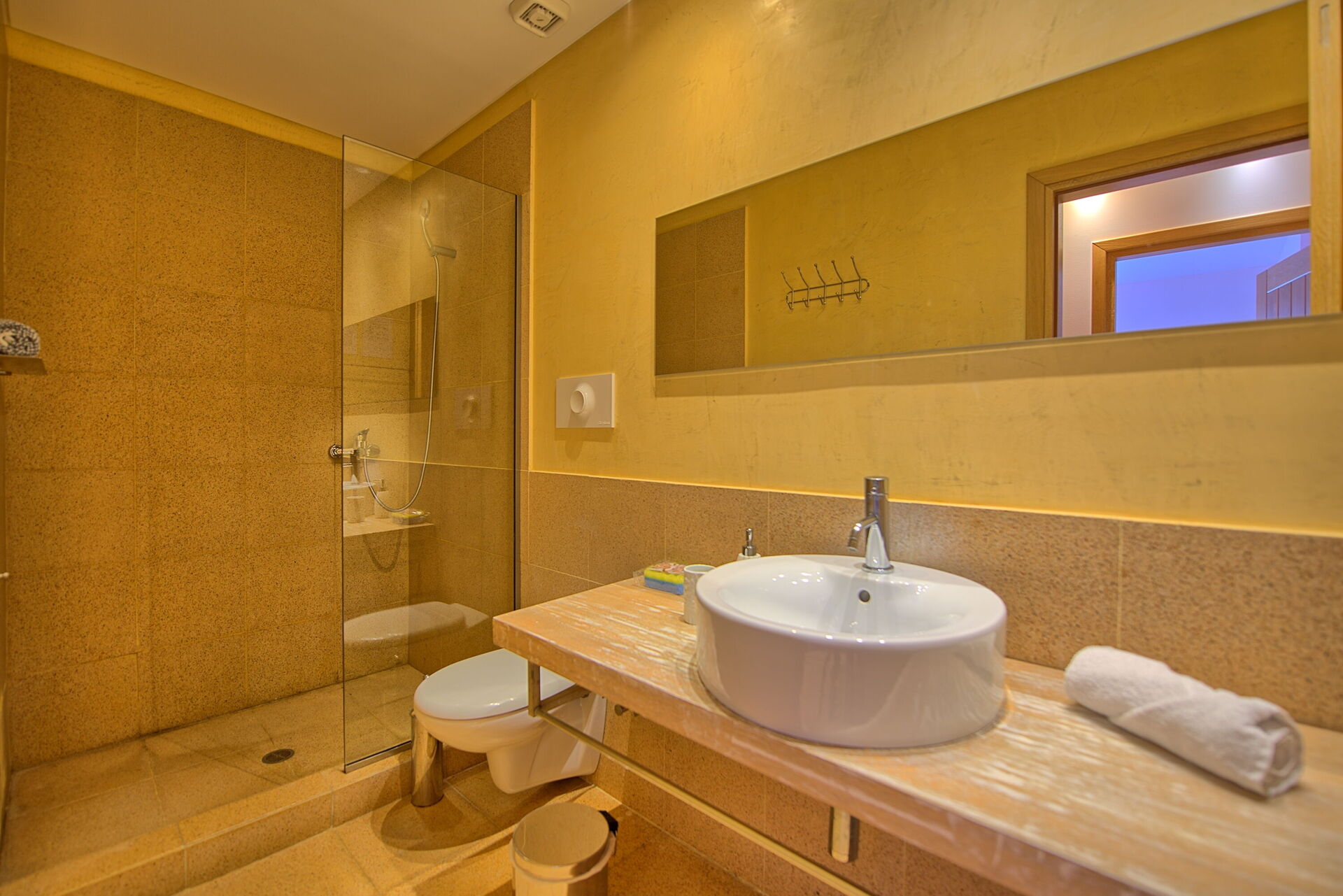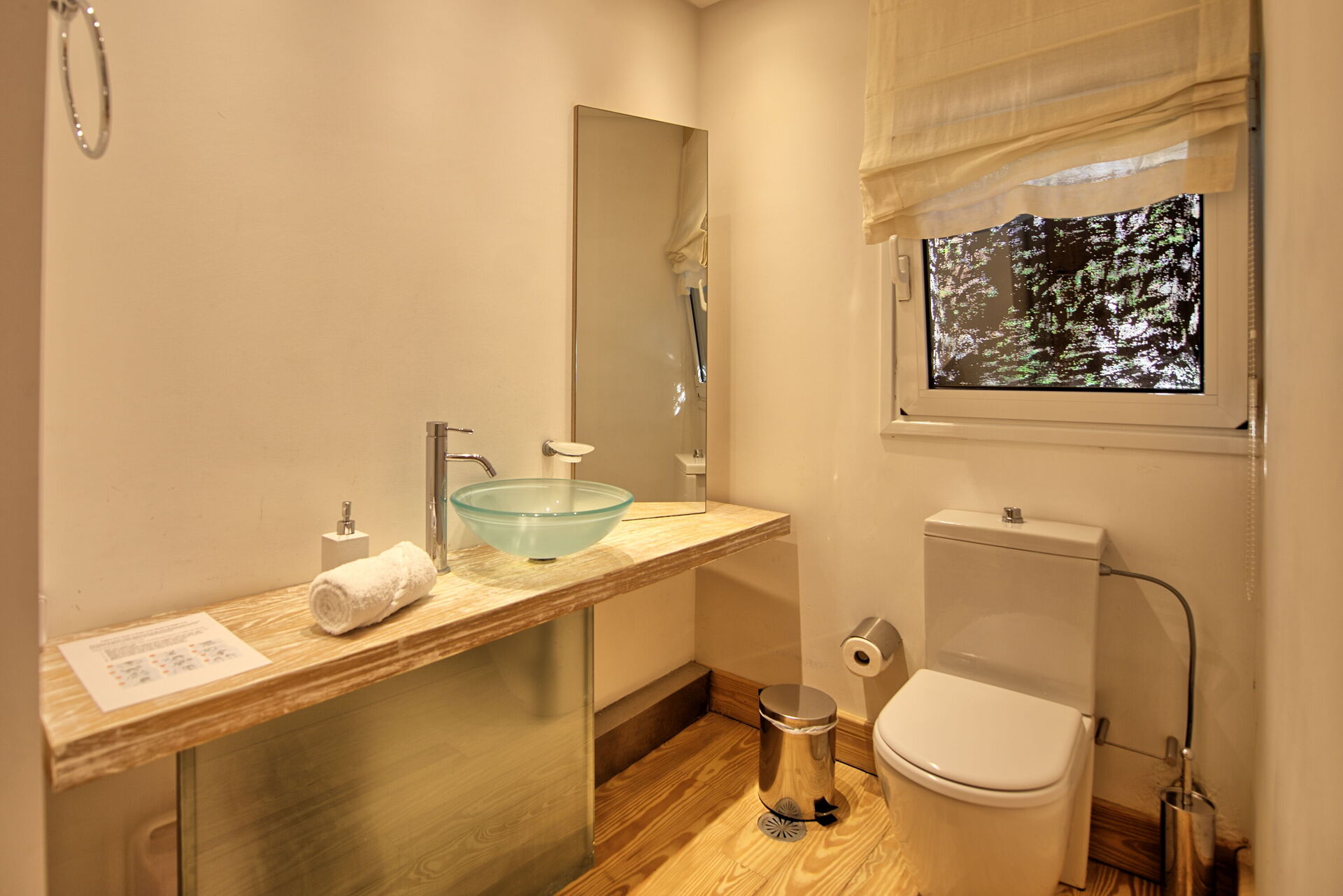 À disposition des hôtes: 5 chambres et 5 salles de bains; 10 personnes, air conditionné, piscine à usage exclusif des hôtes (16 x 5 mètres) avec système de purification au sel, grande terrasse de jardin, véranda avec table à manger, meubles de jardin, barbecue, internet Wi-Fi, parking
