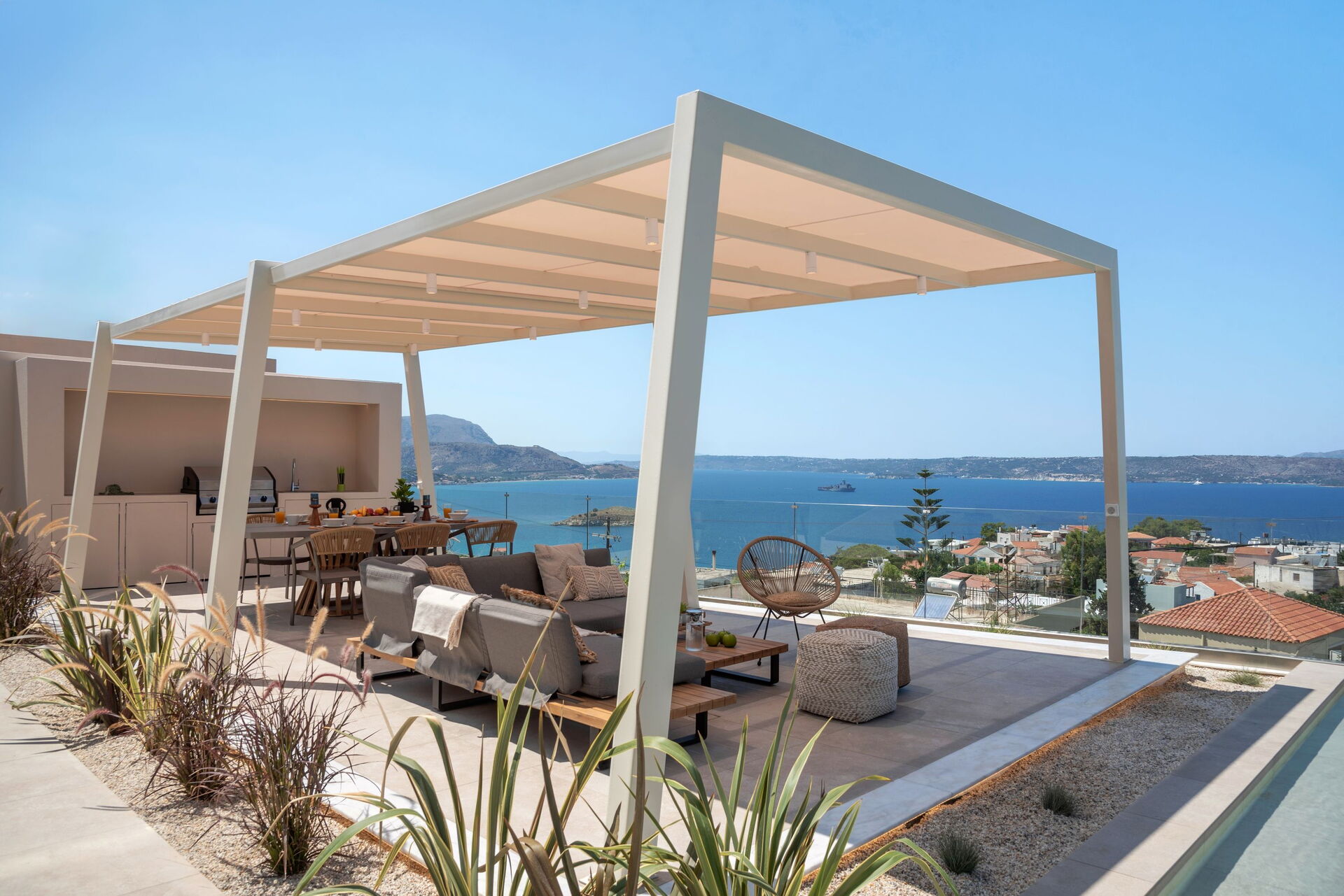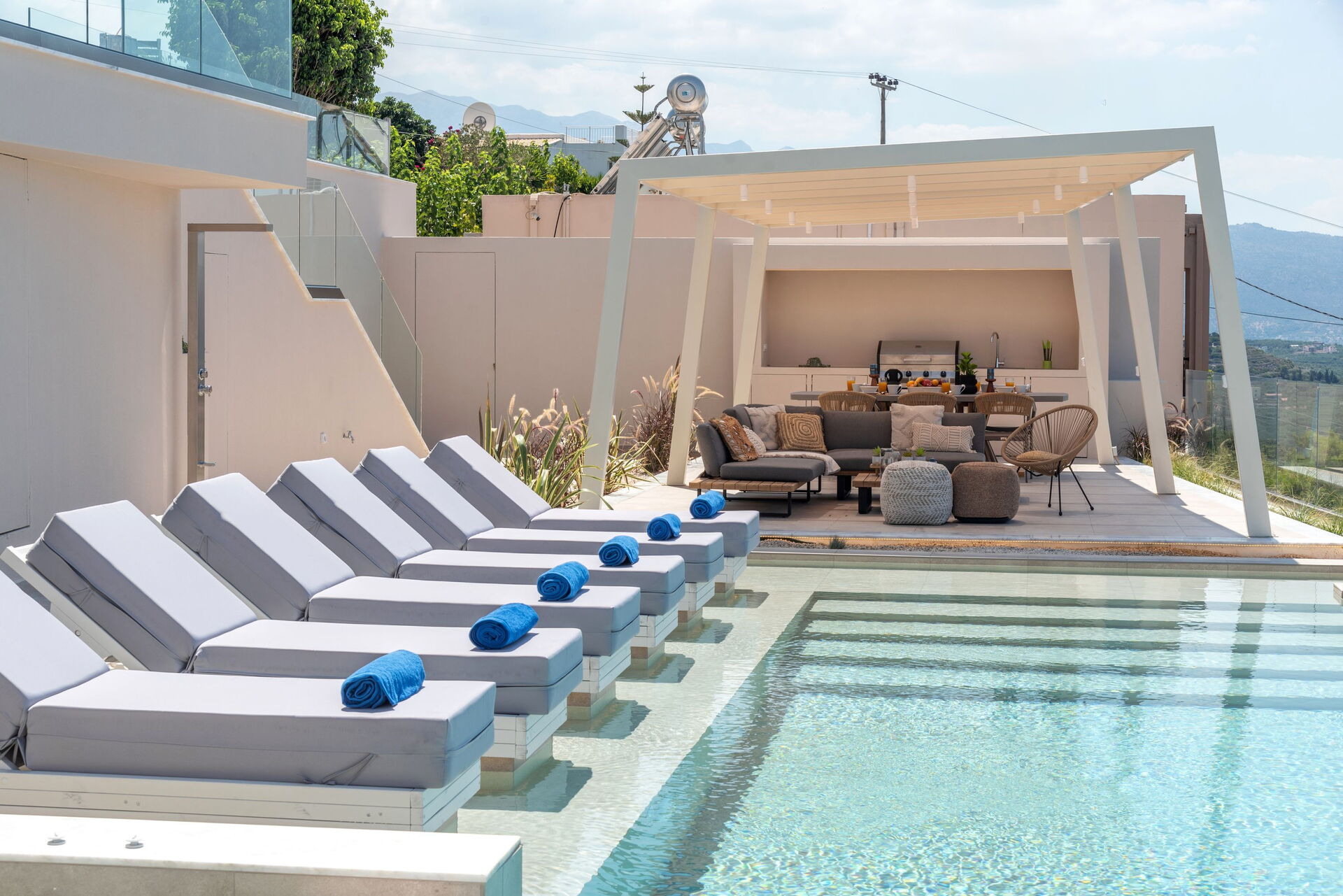 Les hôtes pourront toutefois profiter d’une piscine privée à leur disposition exclusive avec coin hydromassage et d’un espace extérieur équipé pour les repas en plein air.