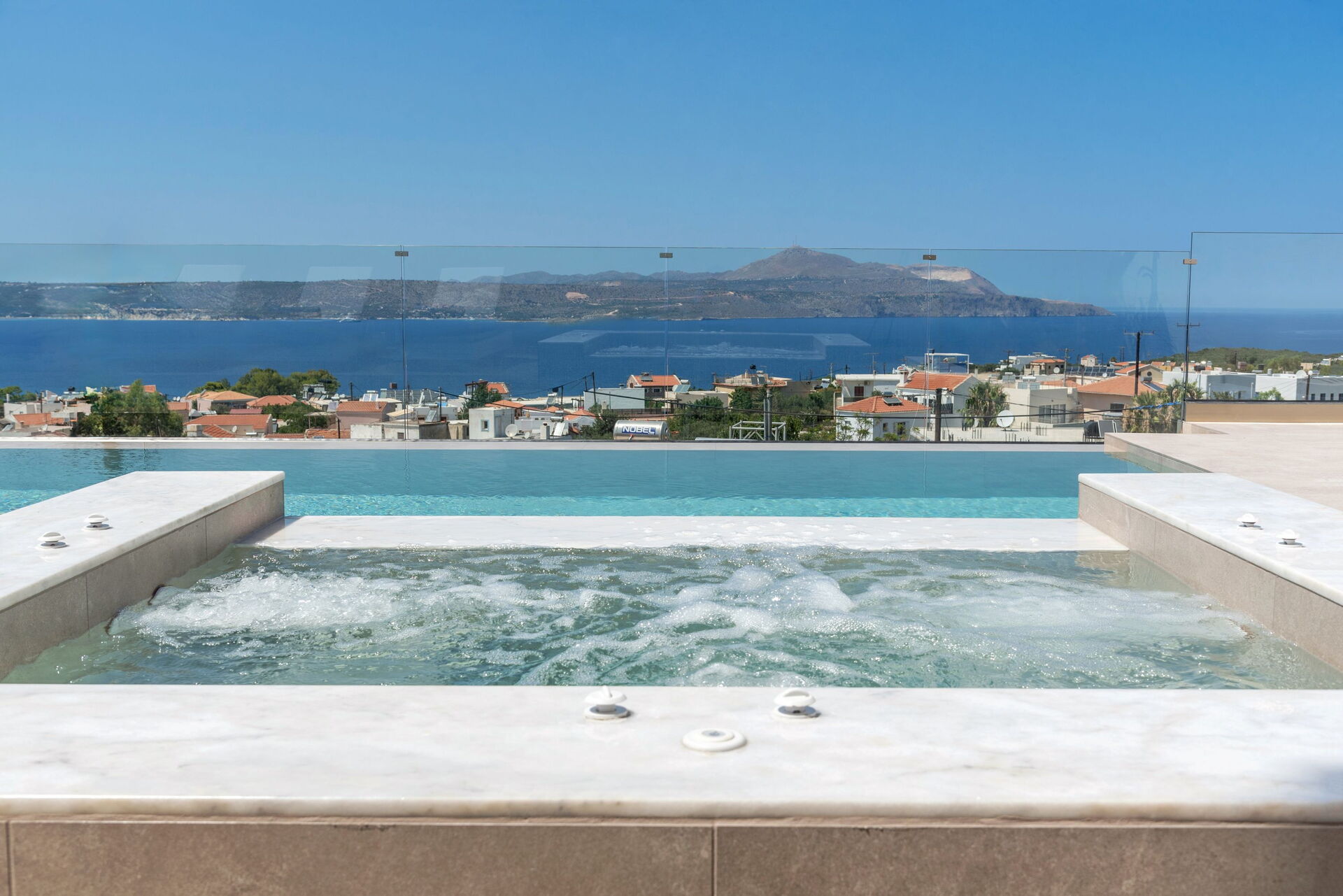 À disposition des hôtes: piscine privée (10 x 3 mètres; profondeur: 1,5 mètres) avec espace d’hydromassage (2 x 2 mètres), la piscine peut être chauffée pour un coût de 70 € par jour et les propriétaires doivent être informés au moins 2 jours avant le début du séjour; vue sur la mer, espace extérieur privé et équipé, gazebo avec table et chaises pour les repas en plein air, barbecue, connexion internet Wi-Fi gratuite, air conditionné, parking privé.