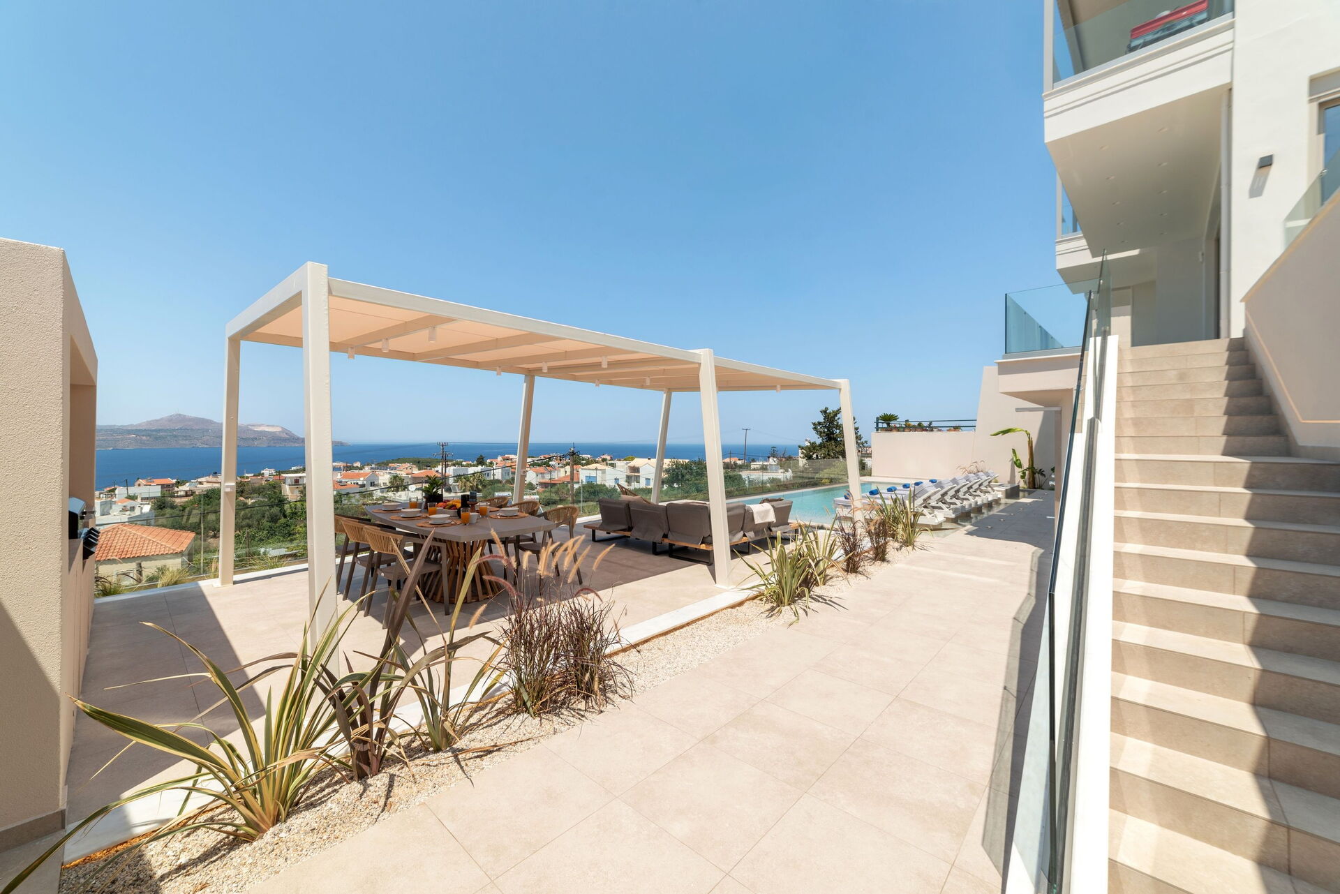 Seaview Lux est une partie de villa avec piscine privée située sur une position panoramique du village de Plaka, en Crète. Elle est répartie sur un seul étage (à l’étage du dessus se trouve l’appartement habité par les propriétaires) et peut accueillir jusqu’à 6 personnes.