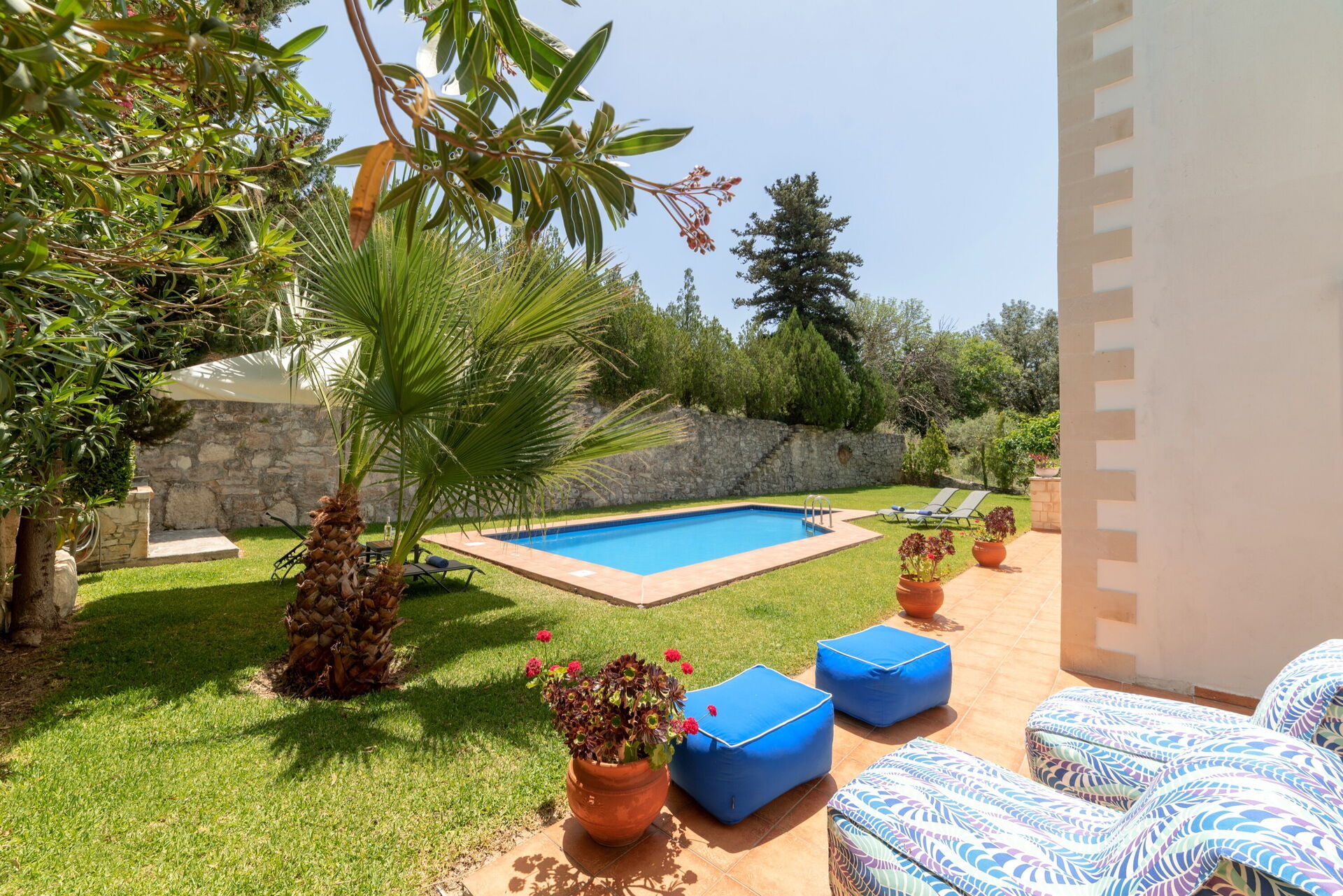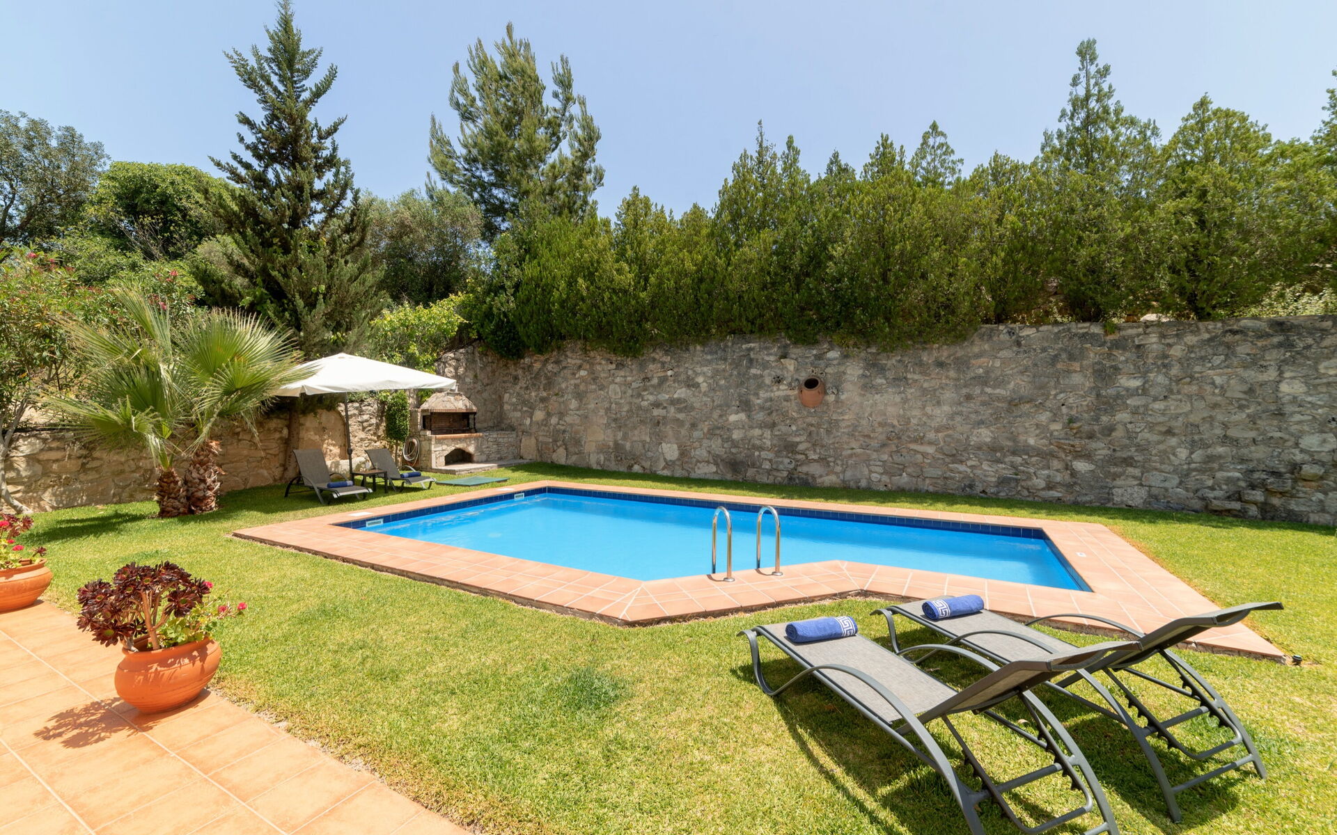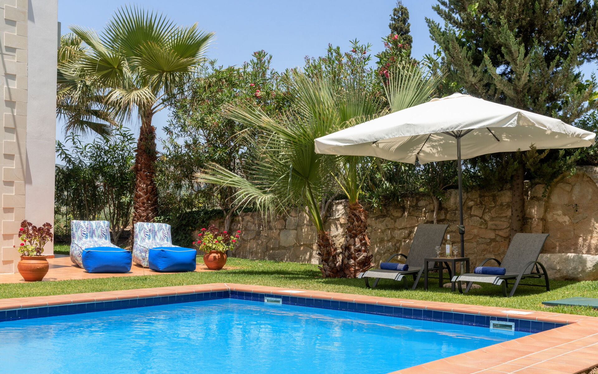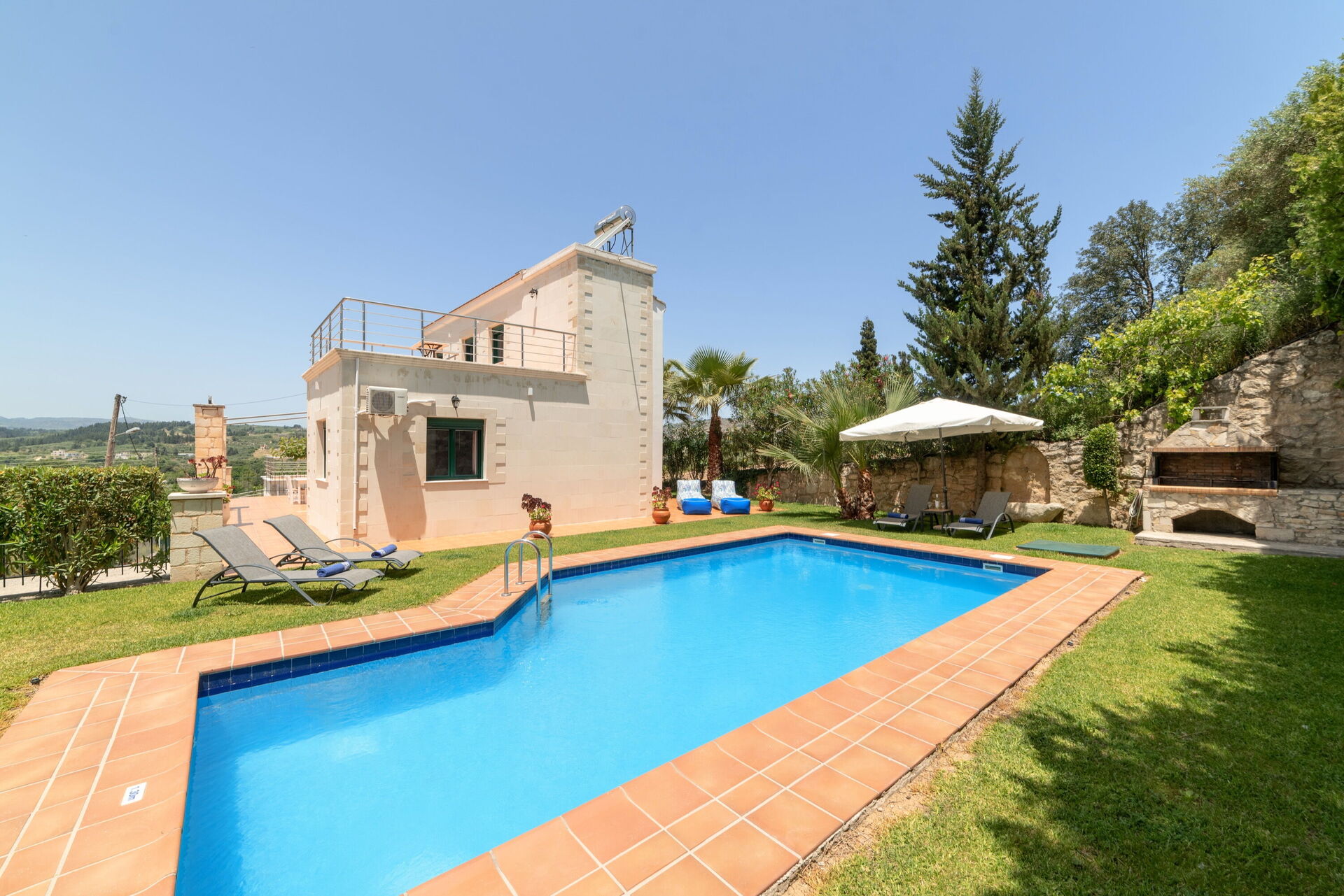 À l'extérieur, il y a un jardin clos, équipé pour les repas en plein air et une belle piscine privée où vous pourrez vous détendre et vous amuser avec vos amis et votre famille lors des journées chaudes en Crète.