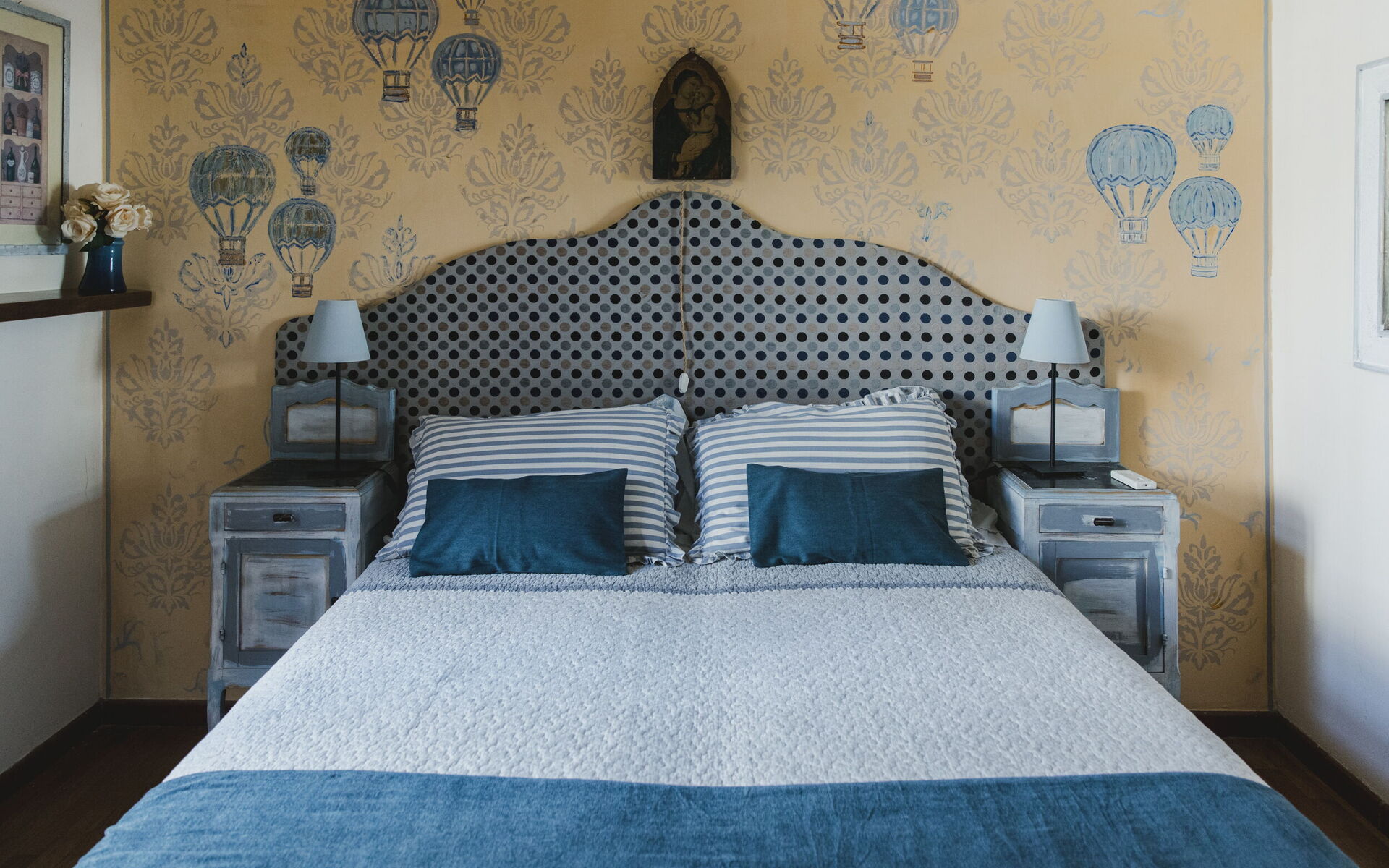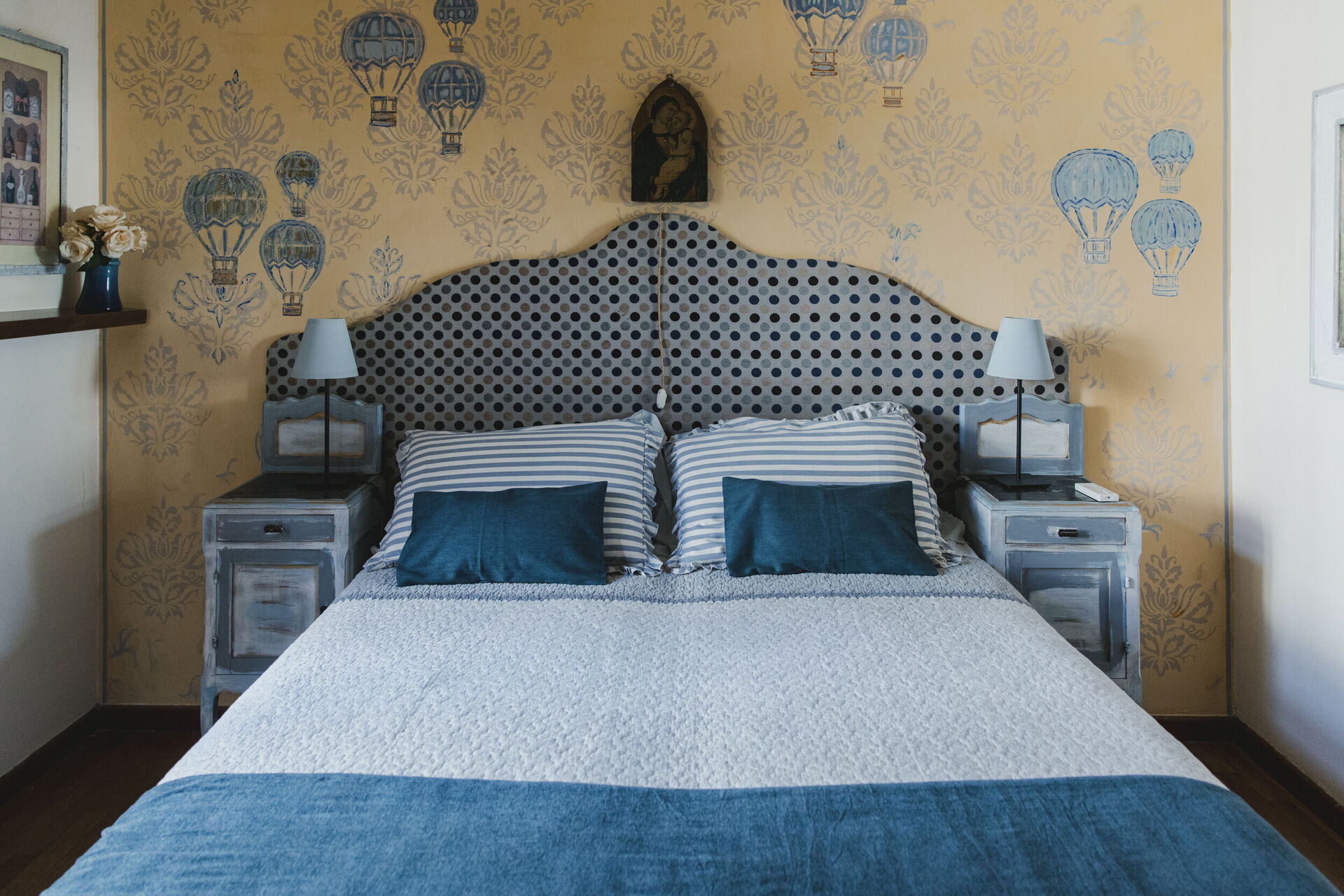 chambre avec salle de bain 2: lit double, lit de bébé, lit de bébé, climatisation, télévision, bassin double, wc, bidet, douche, sèche-cheveux.