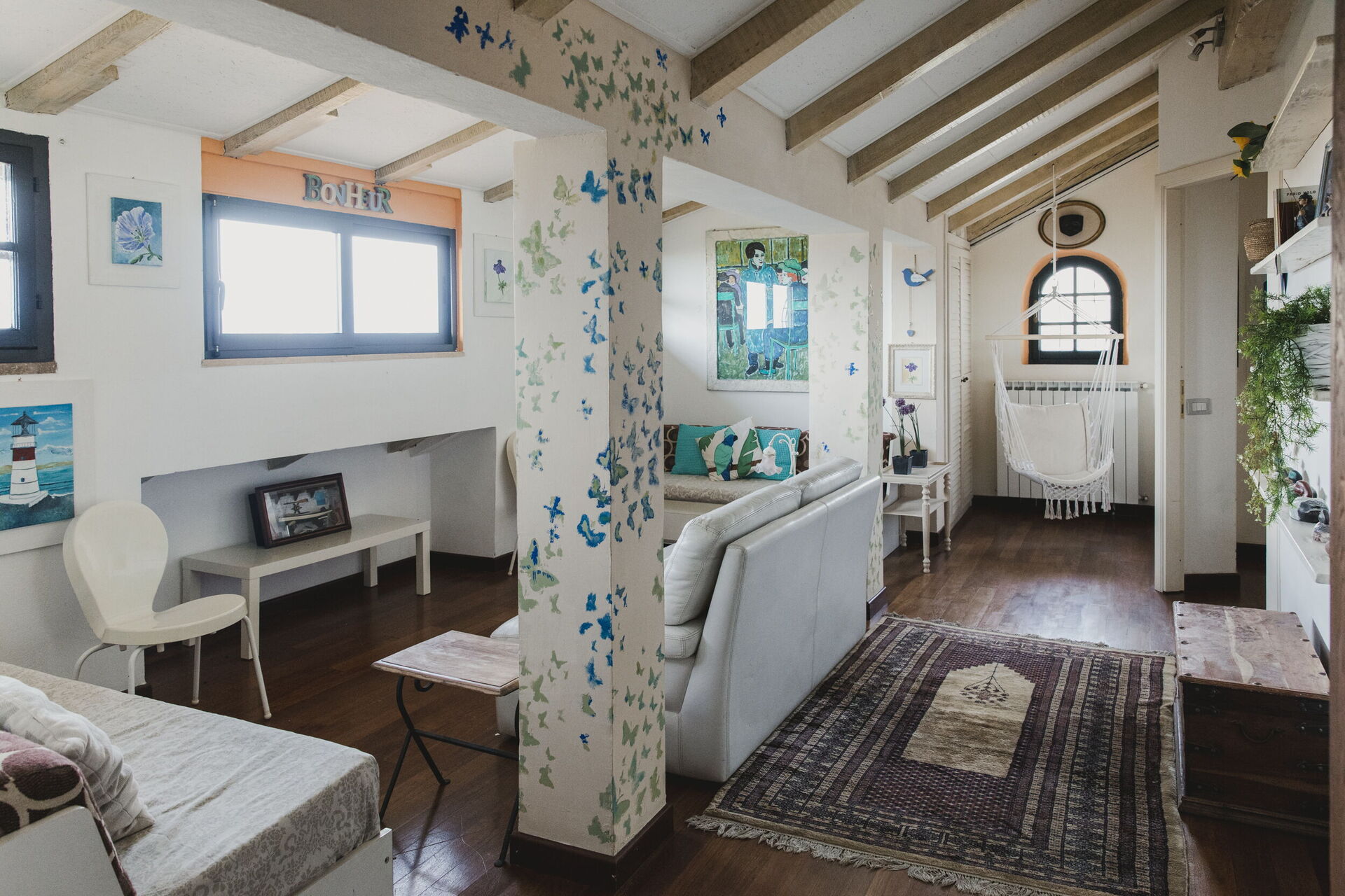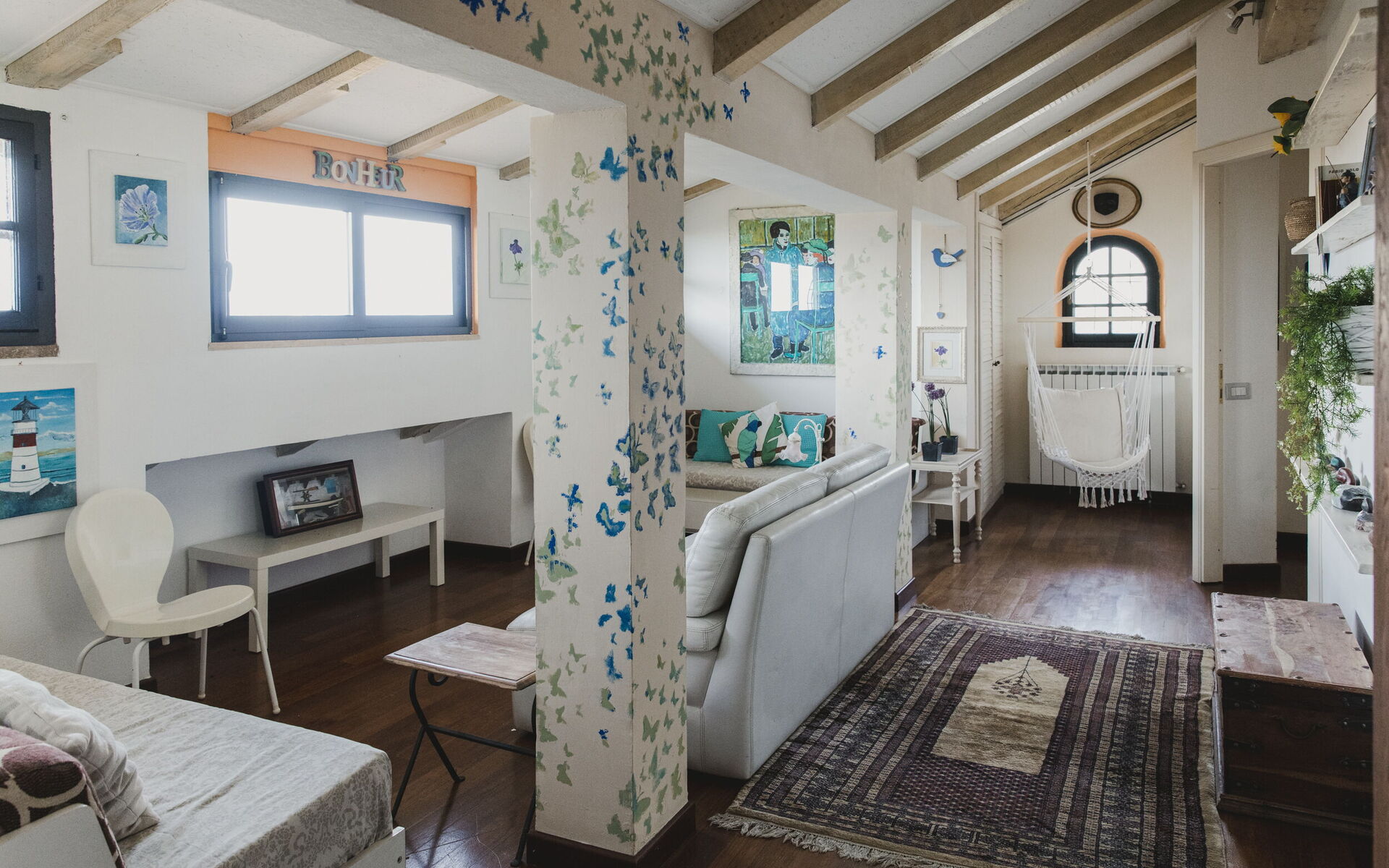 Comprend salon, 2 chambres avec salle de bain, studio, balcon.
