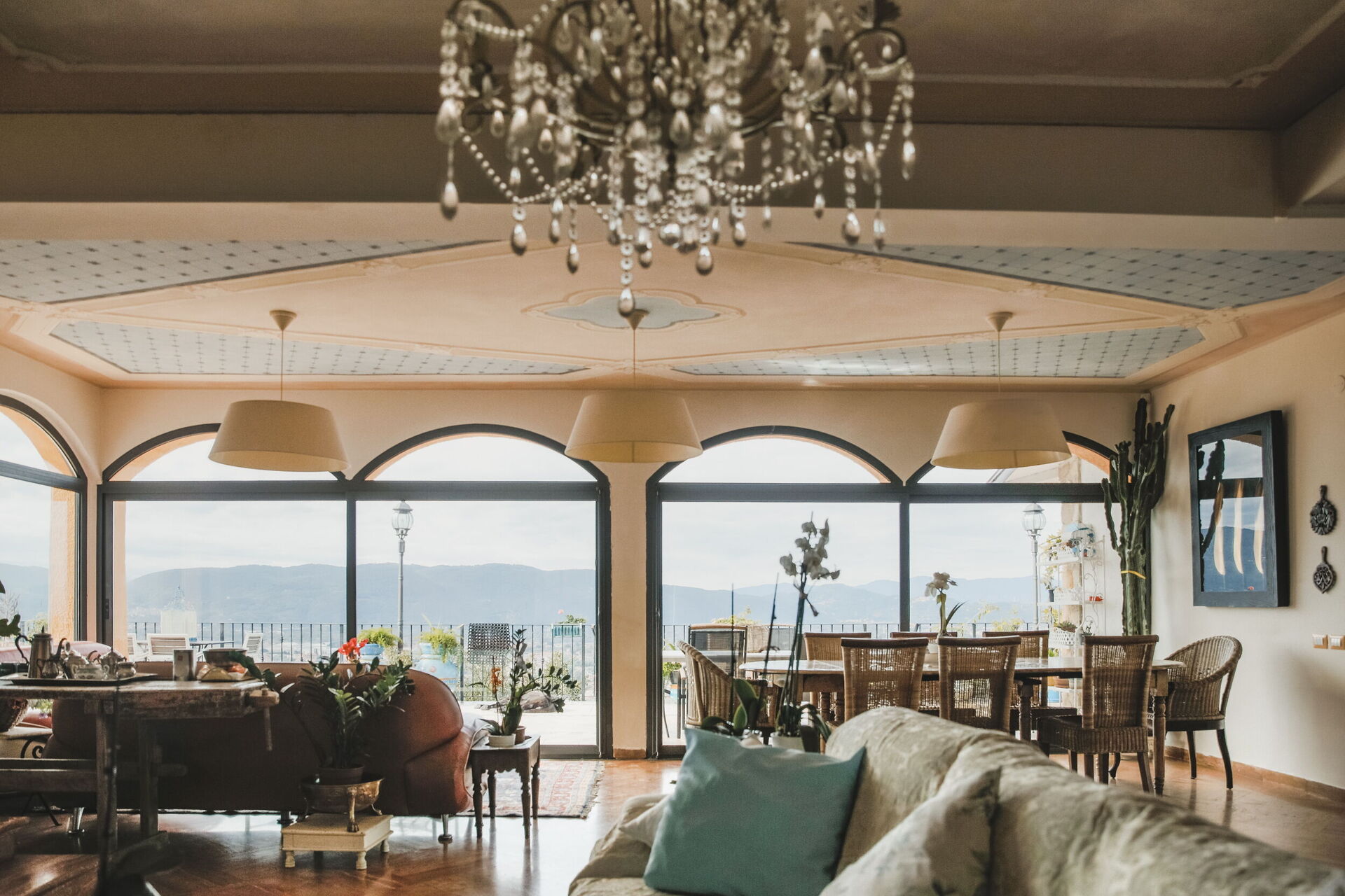 Salon: canapé, cheminée, internet WIFI, internet, climatisation, télévision, détecteur de fumée, détecteur de co2, sortie sur le balcon, sortie sur le jardin, sortie sur le patio, sortie sur la terrasse.