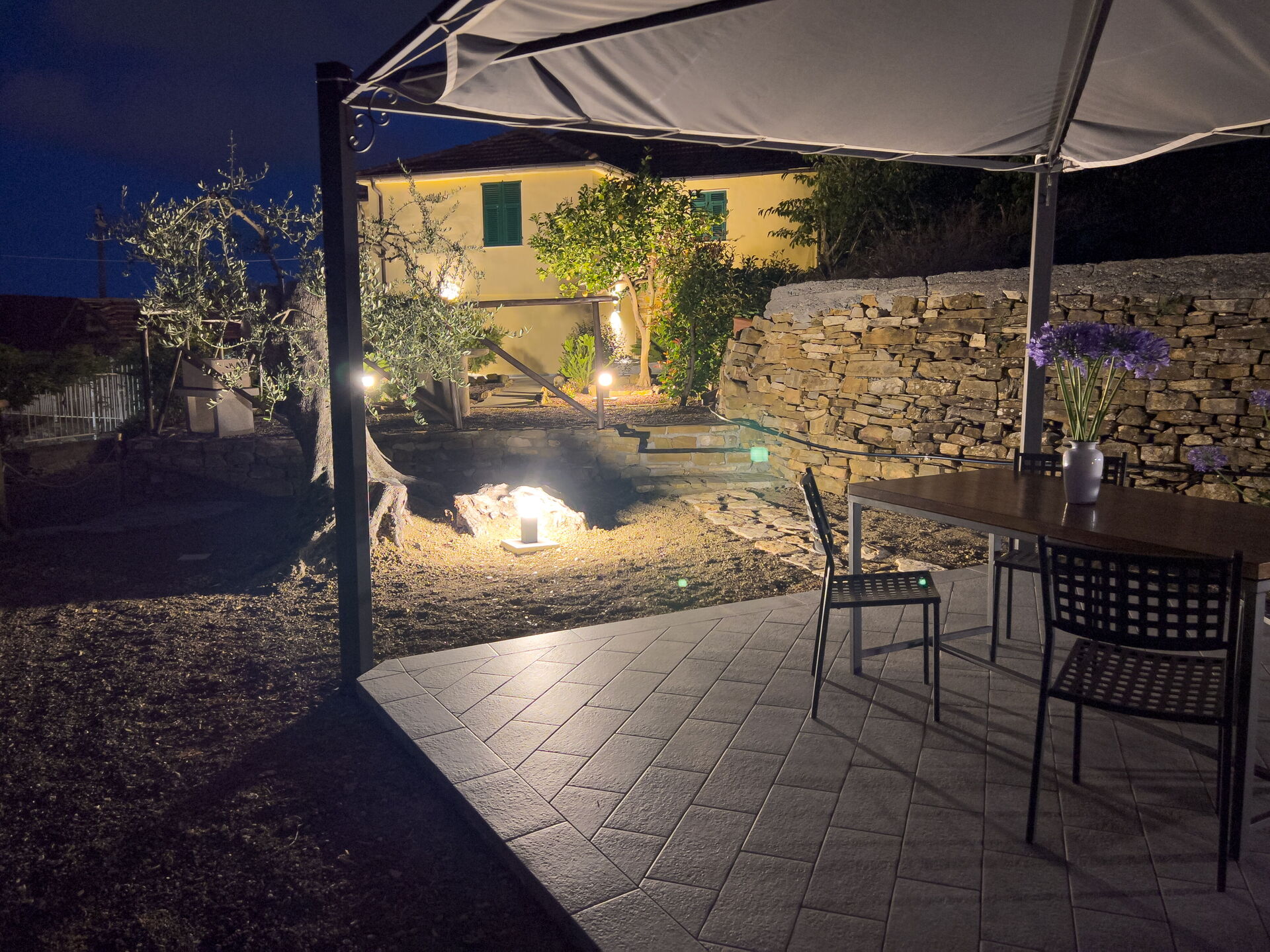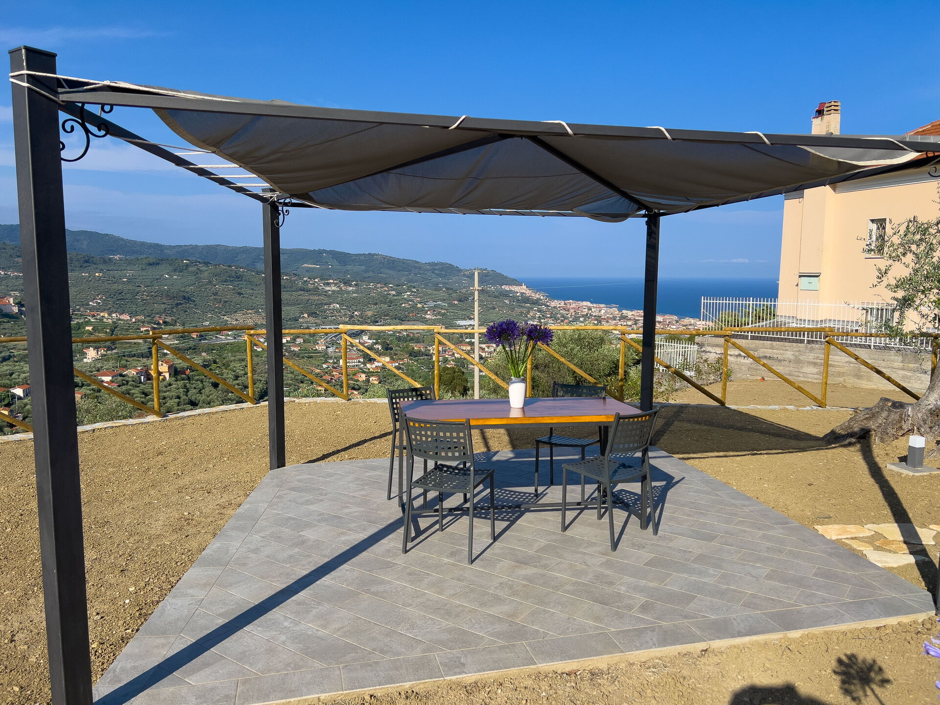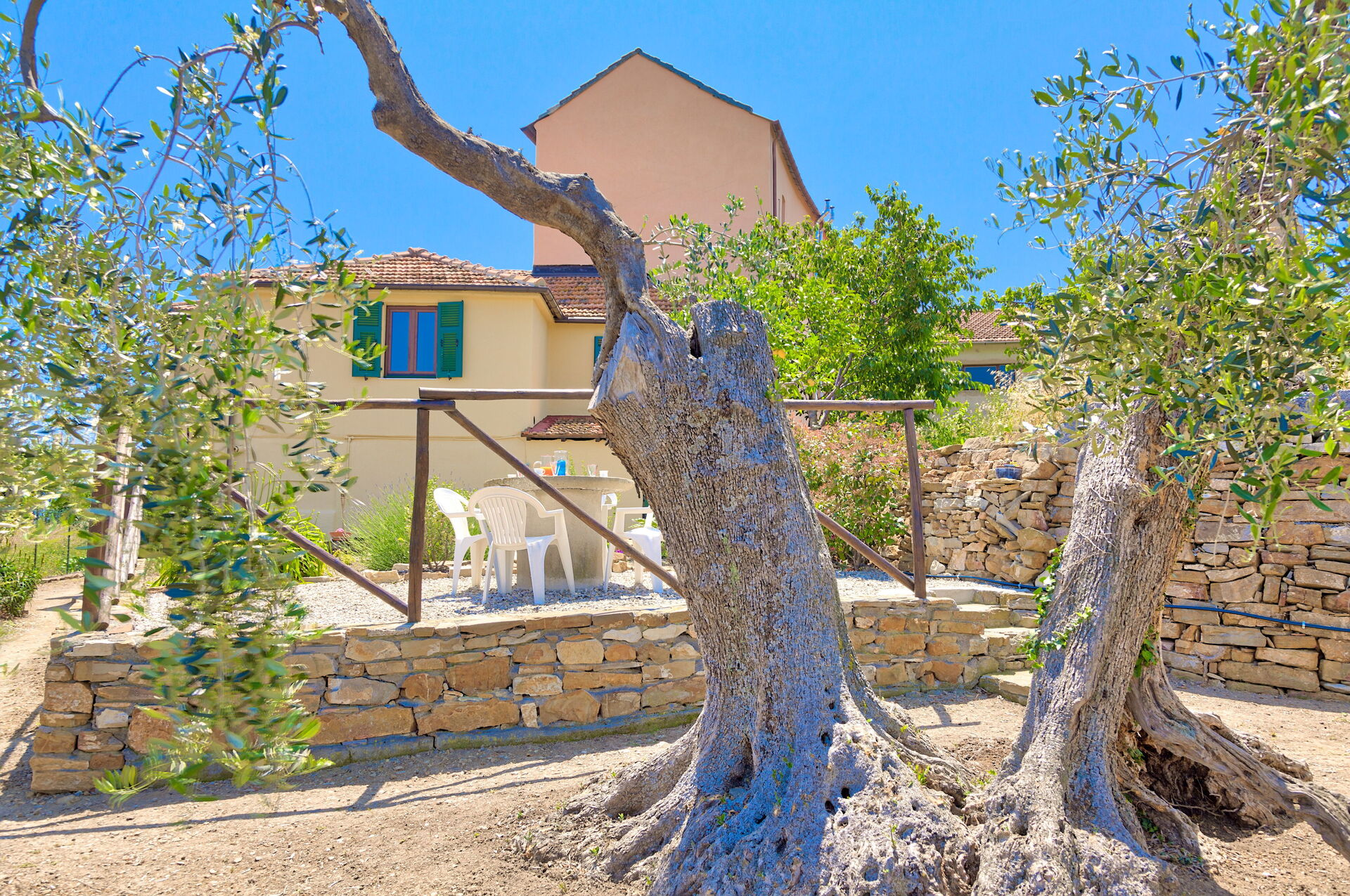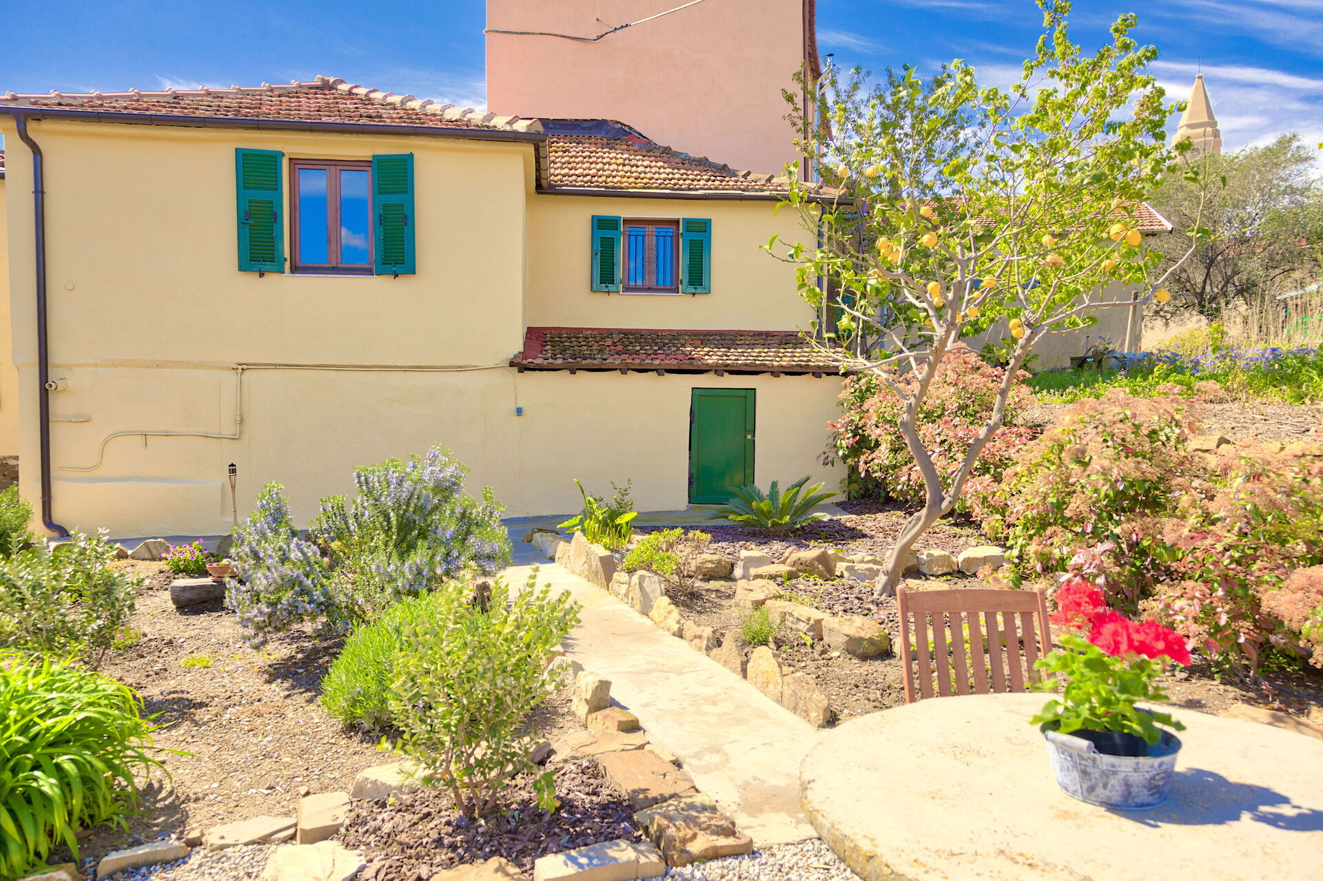 "Casa Mara" à Diano Serreta, en Ligurie, est une maison avec jardin privé avec table, chaises, parasol et chaises longues.