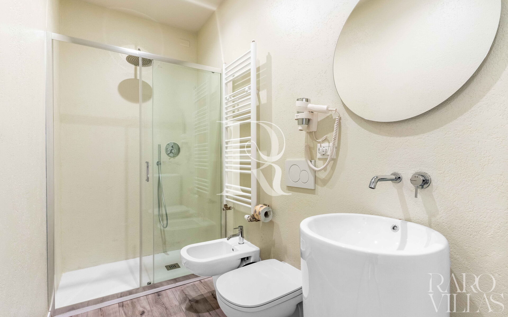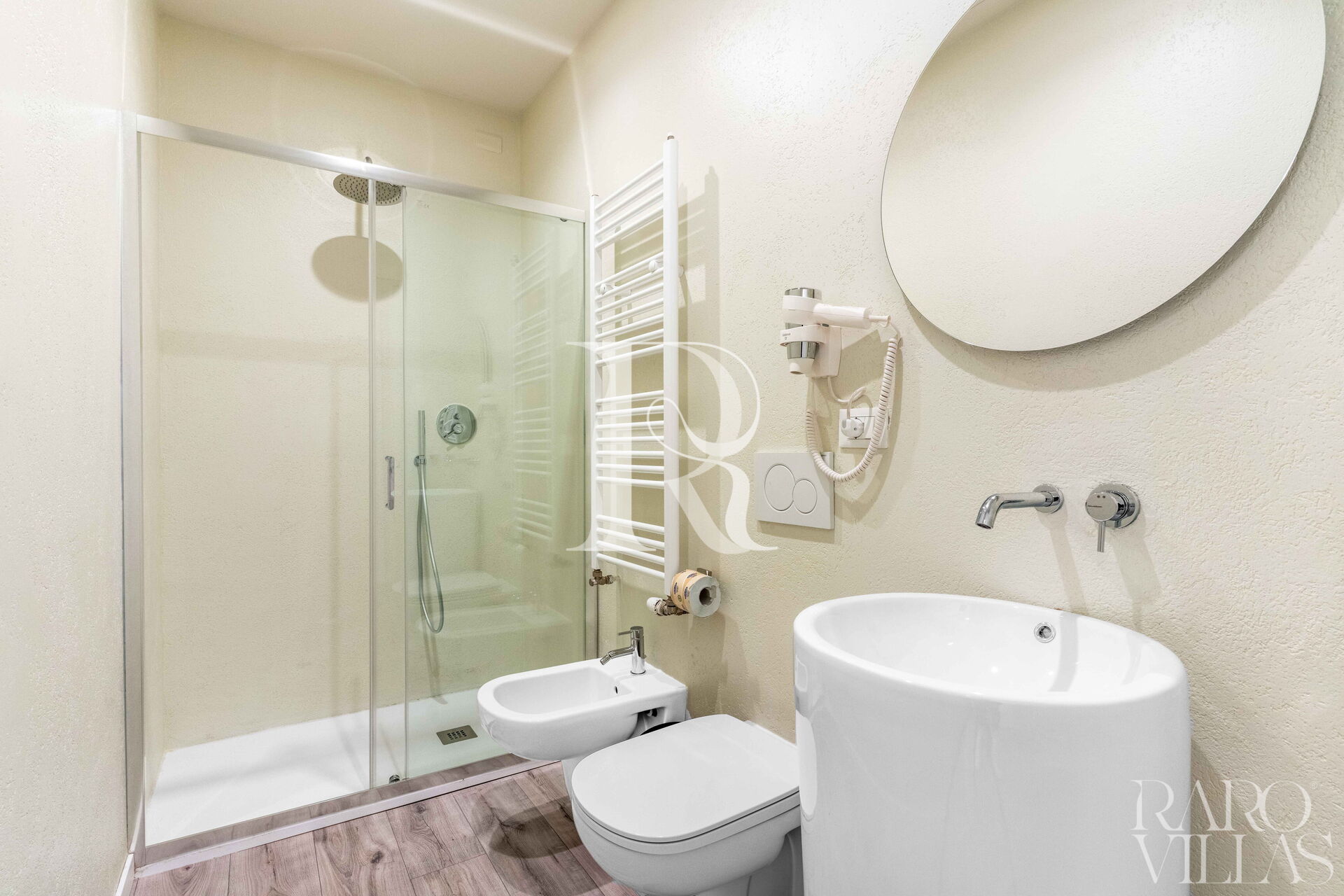 Bedroom + Ensuite Bathroom: air conditioning, hairdryer, bidet, WIFI internet, basin, double bed, working desk, toilet, shower, television.