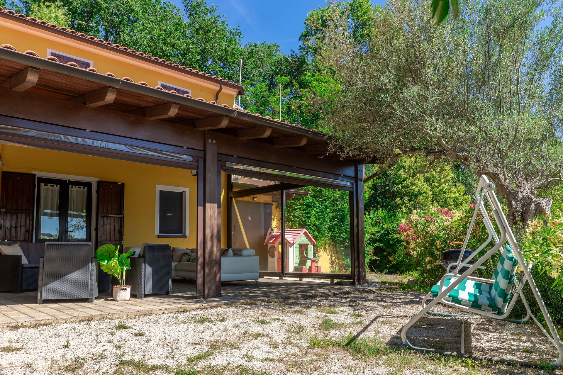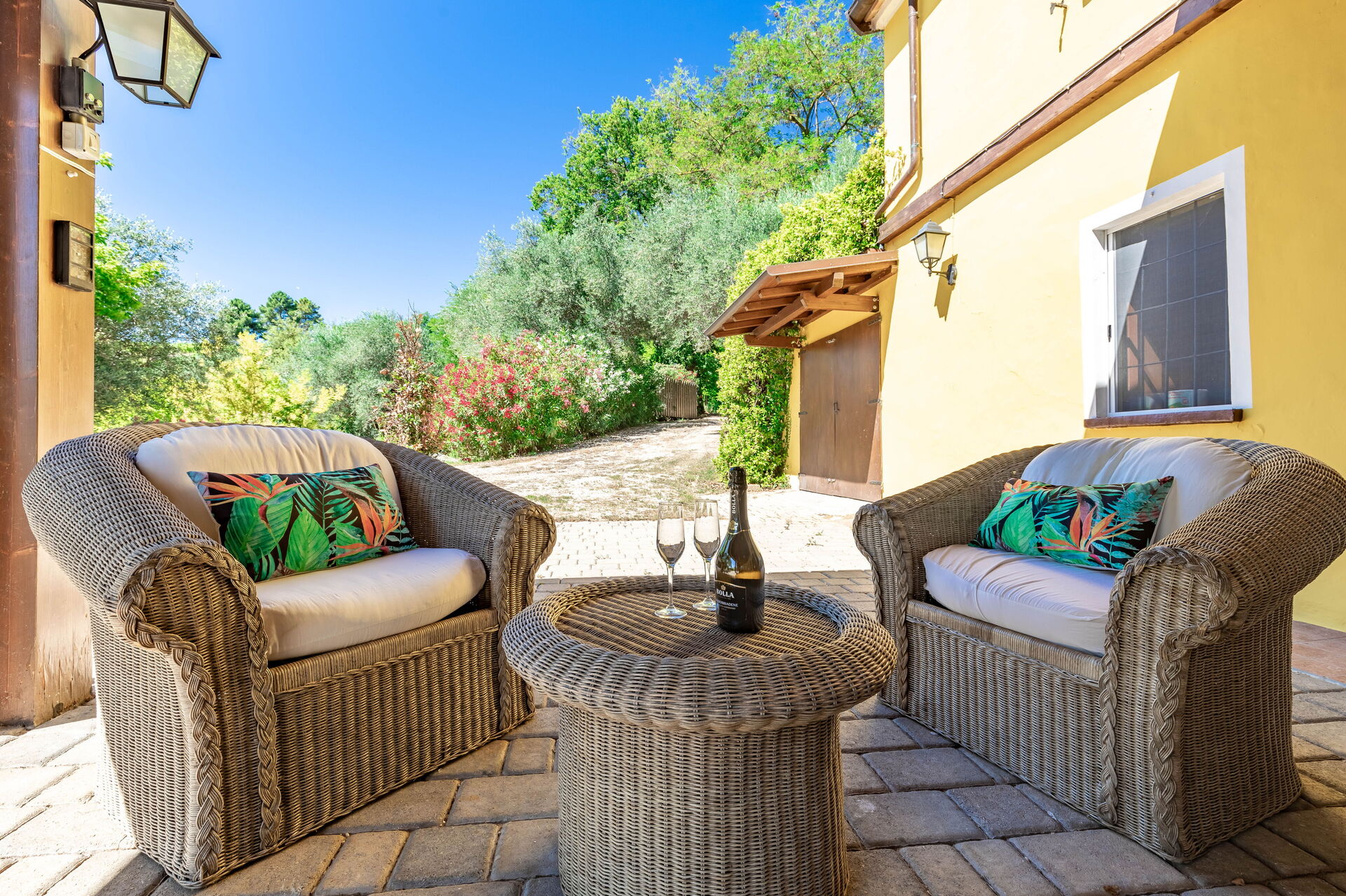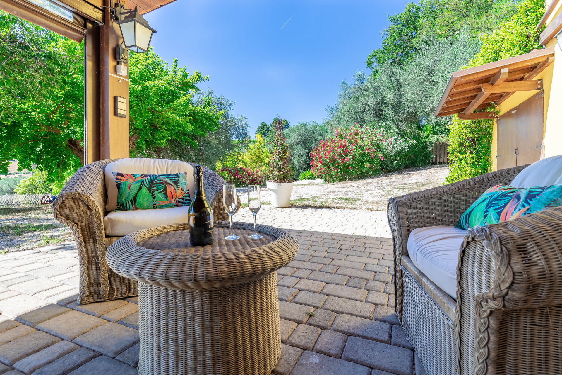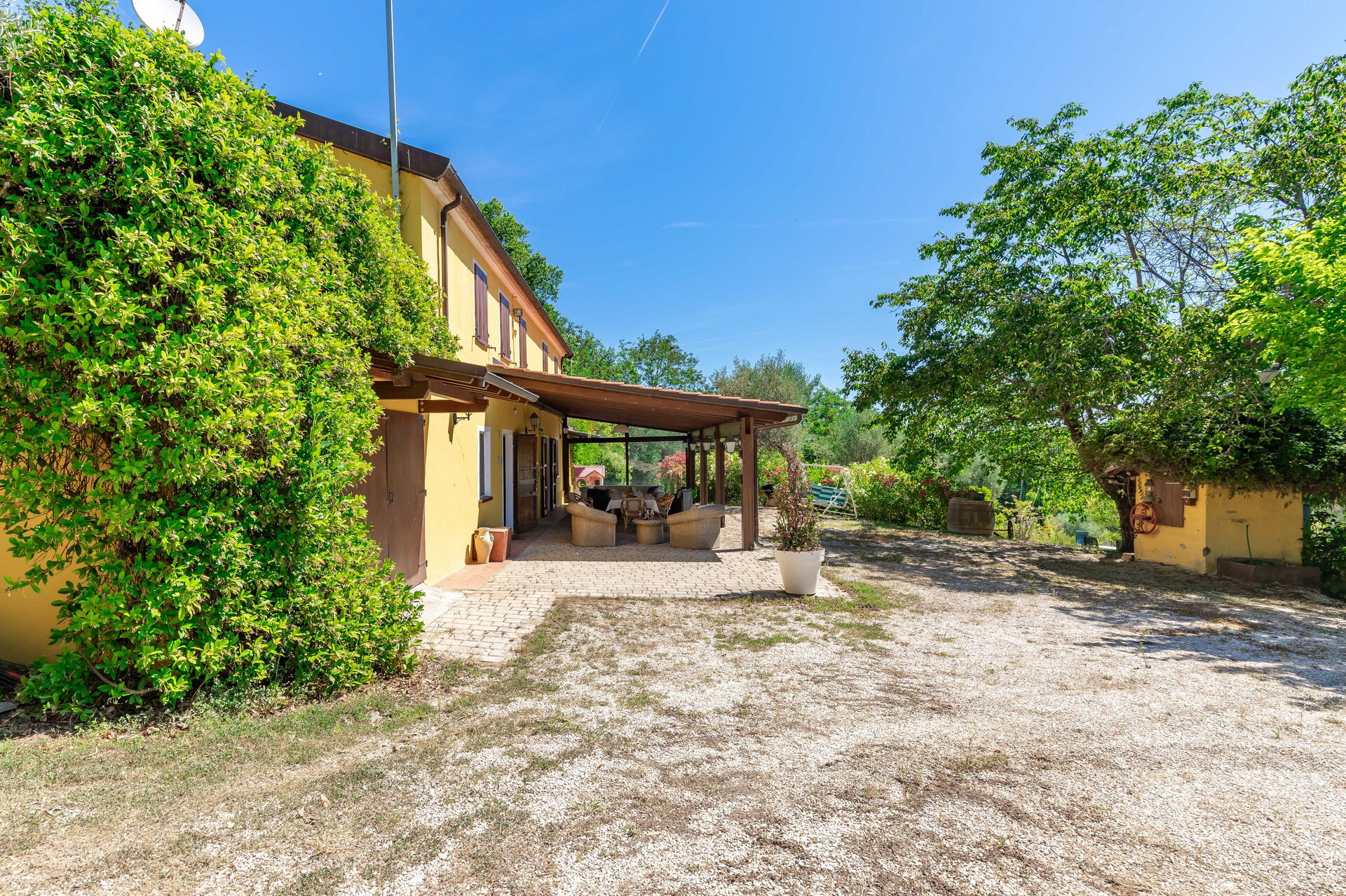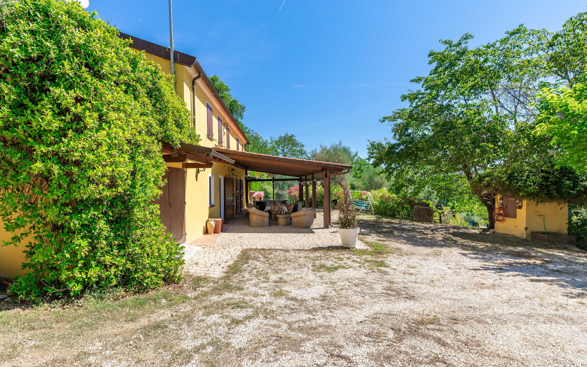 Une fois arrivés à Villa La Pagliarina vous trouverez une jolie propriété, propre et bien entretenue, avec vue sur les collines et montagnes idéale pour des vacances paisibles en Marches. Après une épuisante journée de visites, passez du temps avec la famille et les amis en bord de piscine en dégustant un verre de vin, un moyen idéal pour vous détendre à la fin de la journée. Pour votre plaisir, sur le terrain il y a un barbecue et une véranda. Si vous aimez cuisiner pour la famille et les amis il y a une cuisine bien equipée y compris grille-pain, cuisinière et réfrigérateur, ainsi que, assez de vaisselle et couverts jusqu'à neuf personnes. Si vous préférez dîner «al fresco», il y a à votre disposition un patio entièrement meublé où vous pourrez profiter du beau temps tout en mangeant en plein air.
