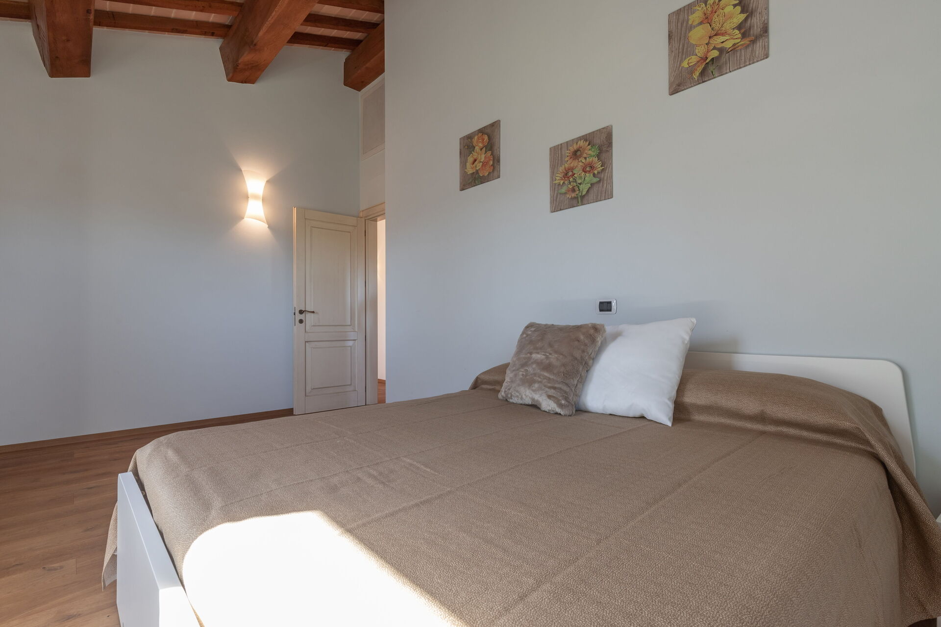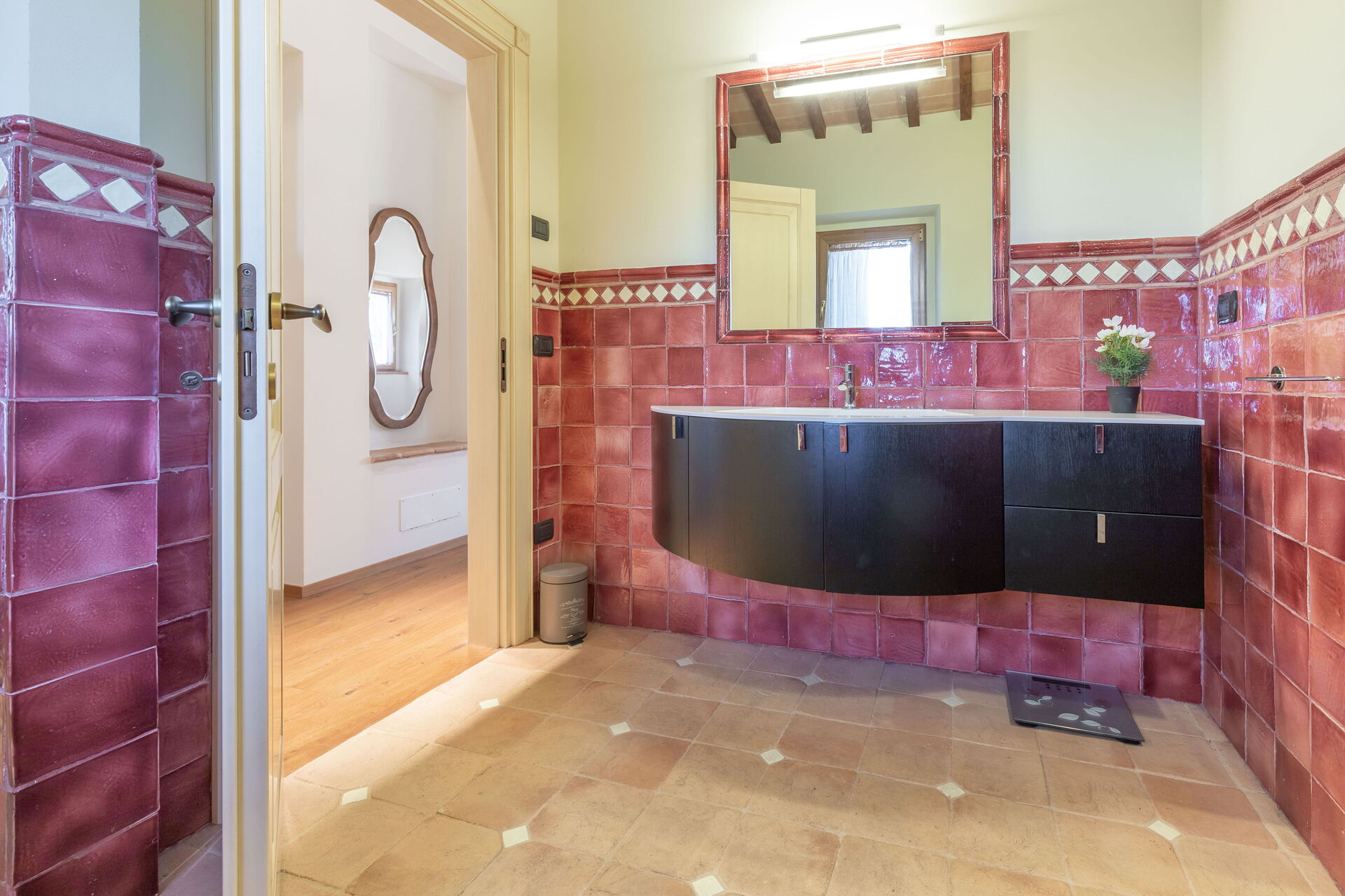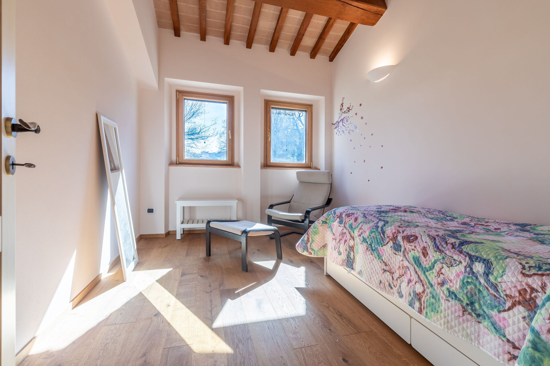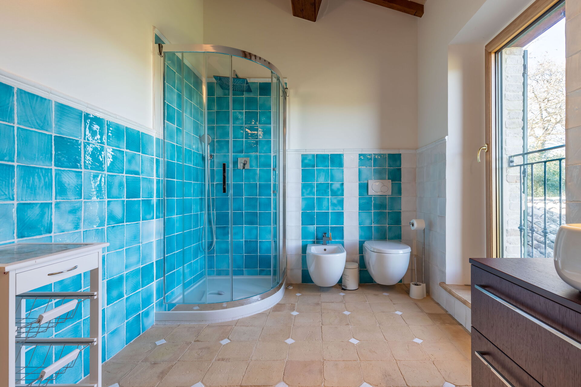 Une charmante piscine à débordement, entourée par la campagne luxuriante de la région des Marches, offre un cadre à couper le souffle. Les chaises longues et transats invitent à la détente, offrant une expérience luxueuse et tranquille dans un environnement d'une beauté incomparable.