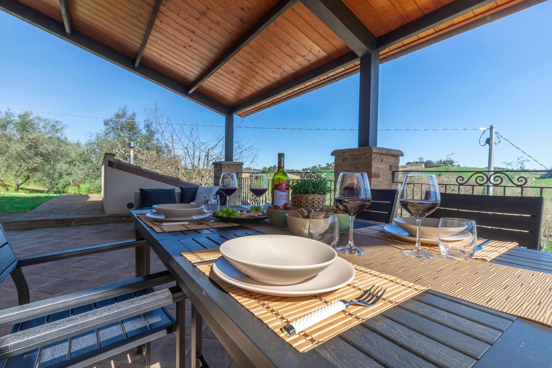 Une fois arrivés vous serez reçus par le propriétaire, ou une personne de sa confiance, et vous trouverez une jolie propriété, propre et bien entretenue, avec vue sur les collines parfaite pour des vacances tranquilles en Marches. Après une mouvementée journée de visites, passez du temps avec la famille et les amis en bord de piscine en dégustant un verre de vin, un moyen idéal pour vous détendre à la fin de la journée. Si vous aimez cuisiner pour la famille et les amis il y a une cuisine bien equipée y compris machine à café, four micro-onde, grille-pain, cuisinière et réfrigérateur, ainsi que, assez de vaisselle et couverts jusqu'à 12 personnes. Si vous préférez dîner «al fresco», il y a à votre disposition une terrasse complètement équipée où vous pourrez profiter du beau temps tout en mangeant en plein air.