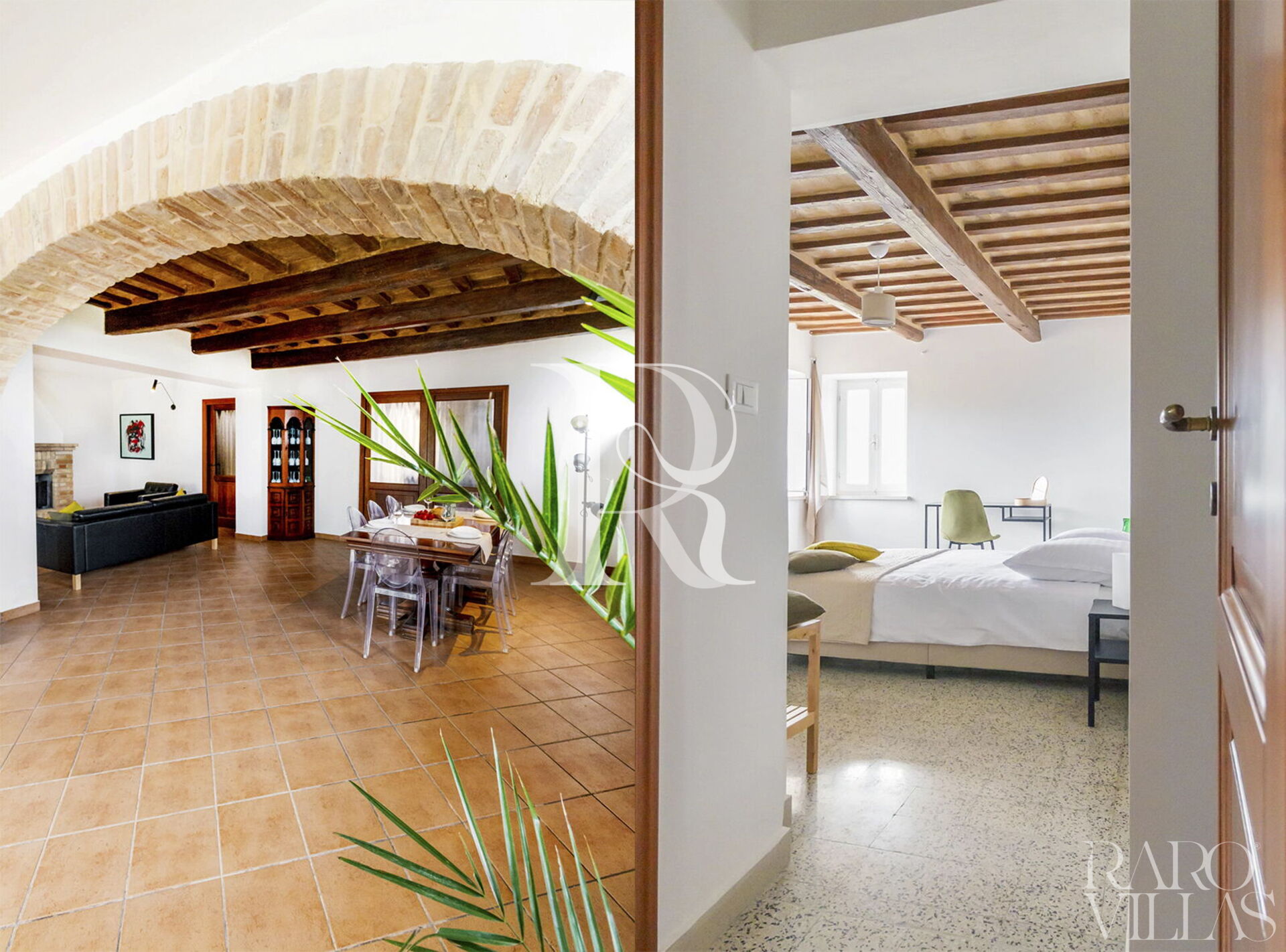 The villa for rent has a wonderful panoramic view over the landscape of Marche. It is an historic farmhouse with swimming pool dating back to the 18th century who is located just 45 minutes drive from Ancona International Airport.