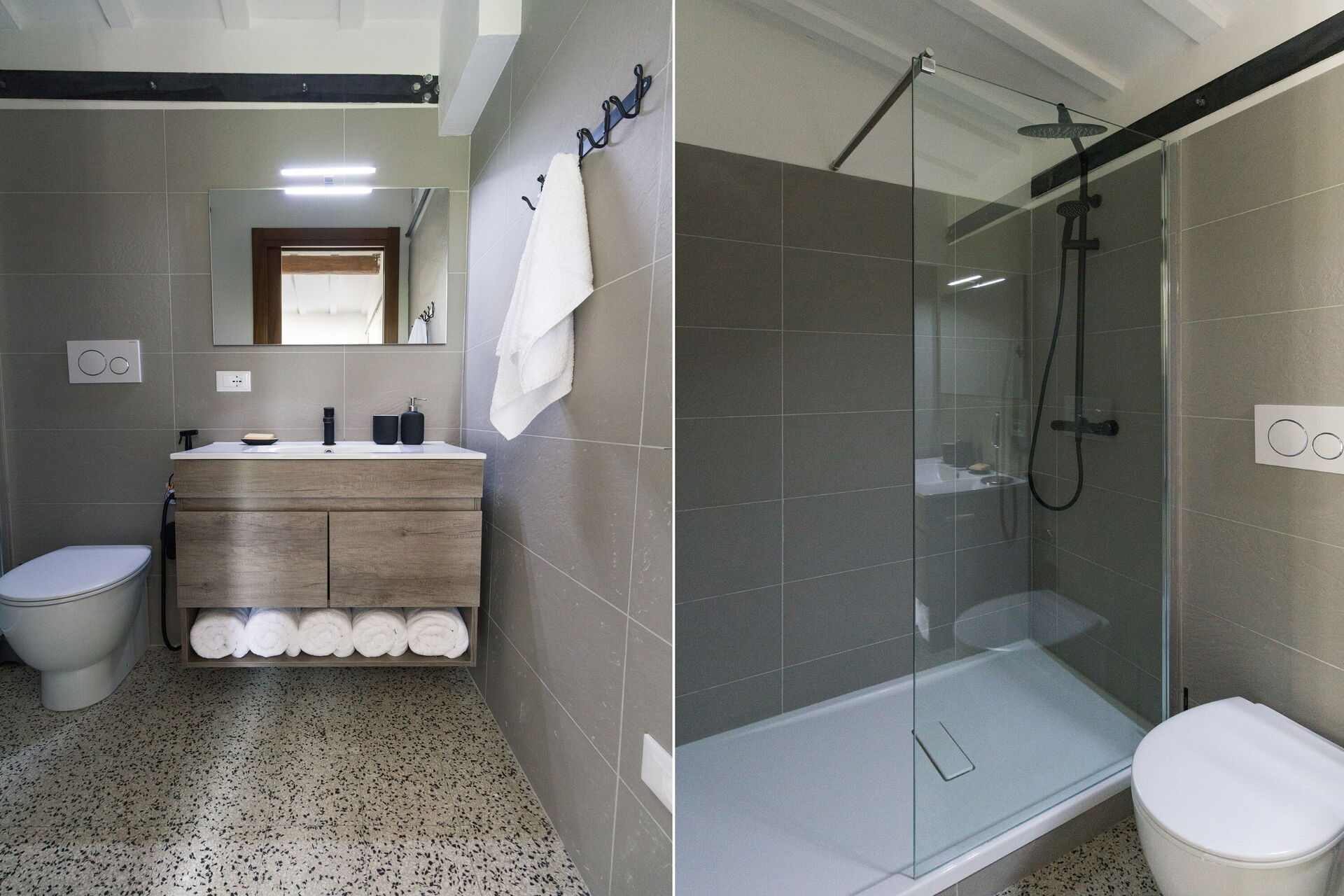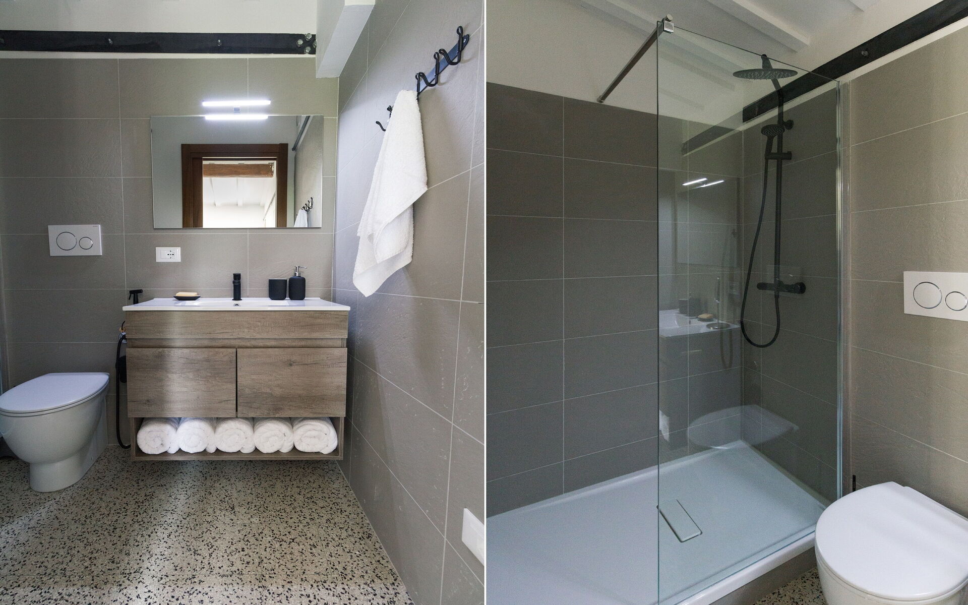 chambre avec salle de bain 2: lit double, internet WIFI, climatisation, bassin, wc, bidet, douche.