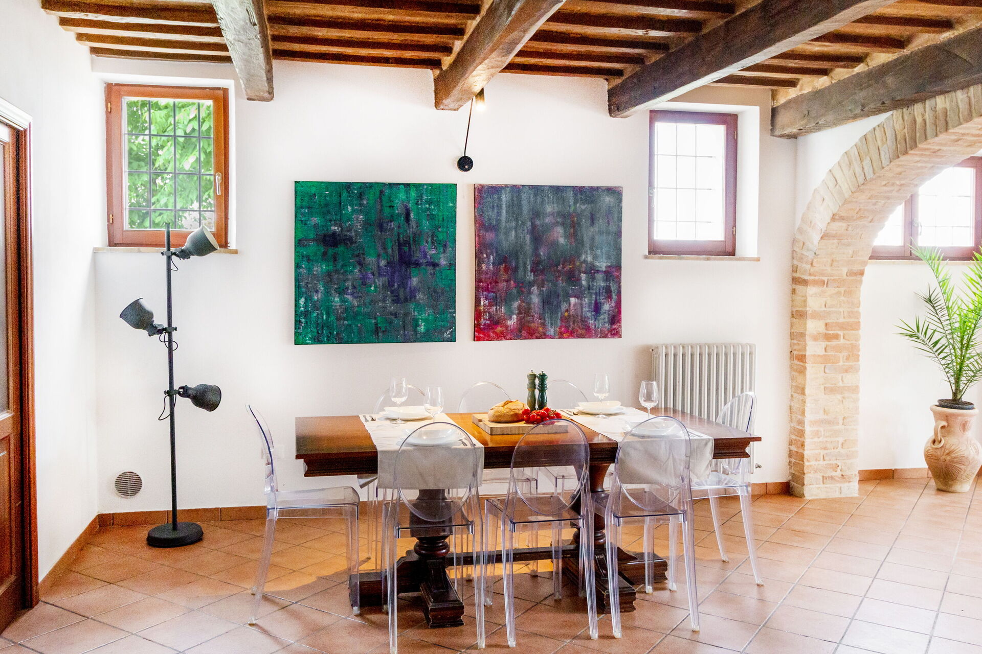 Une fois arrivés vous serez reçus par le propriétaire, ou une personne de sa confiance, et vous trouverez une jolie propriété, propre et bien entretenue, idéale pour des vacances relaxantes en Marches. Pour votre plaisir vous trouverez une piscine privée où vous pouvez vous délasser tout en dégustant une bonne boisson fraîche après une active journée de visites. Pour votre plaisir, sur le terrain il y a une véranda et un barbecue. Manger avec les amis et la famille est une importante partie de la culture italienne. Profitez de la cuisine bien équipée pour préparer les repas avec des produits locaux pendant vos vacances. La cuisine comprend machine à café, four micro-onde, grille-pain et réfrigérateur, ainsi que, abondance de vaisselle et couverts pour un maximum de dix personnes. Dînez «al fresco» comme un vrai italien, le patio entièrement meublé est le cadre idéal pour apprécier la cuisine, s'amuser en famille, et profiter du jolie beau temps italien.