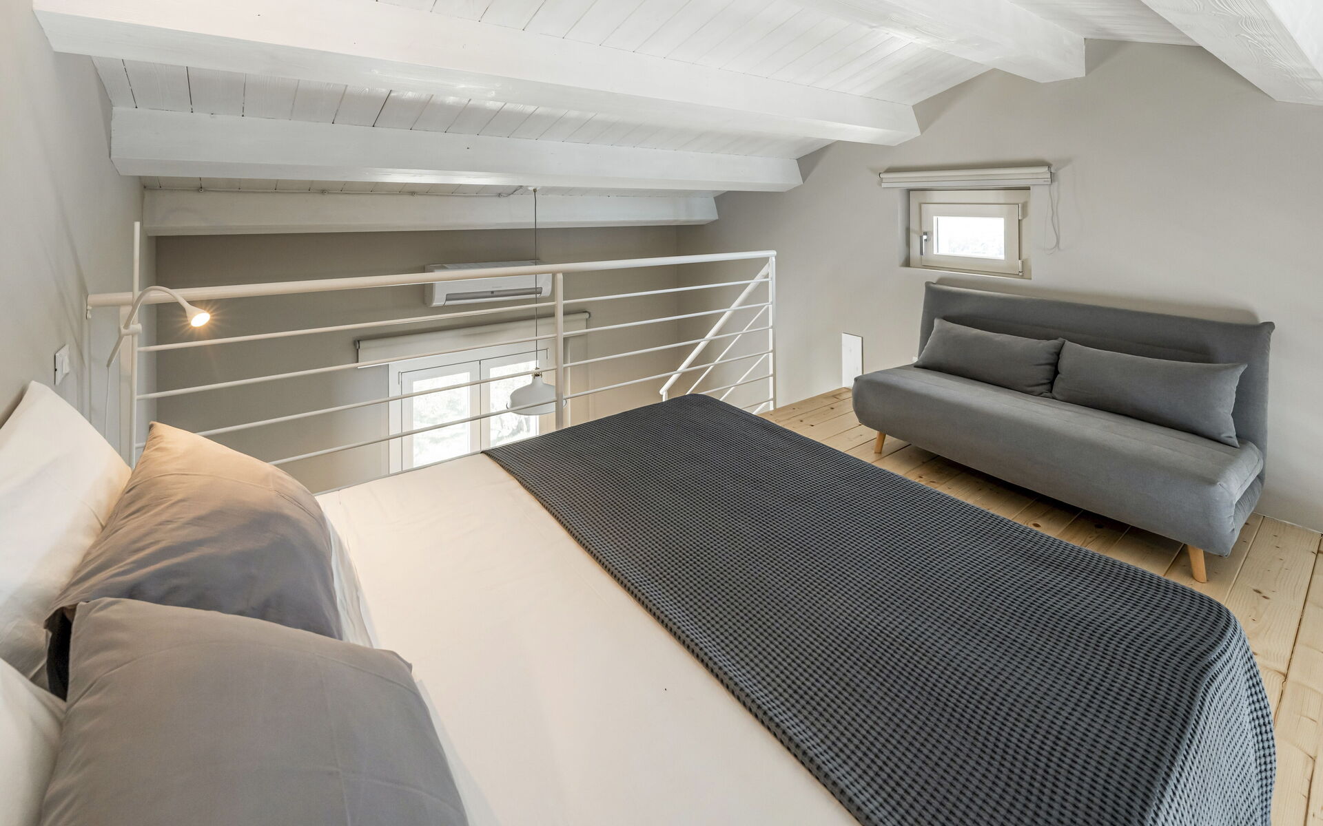 Sur demande, un lit à la française peut être ajouté dans la mezzanine de la dépendance, permettant d'accueillir jusqu'à 2 personnes supplémentaires.