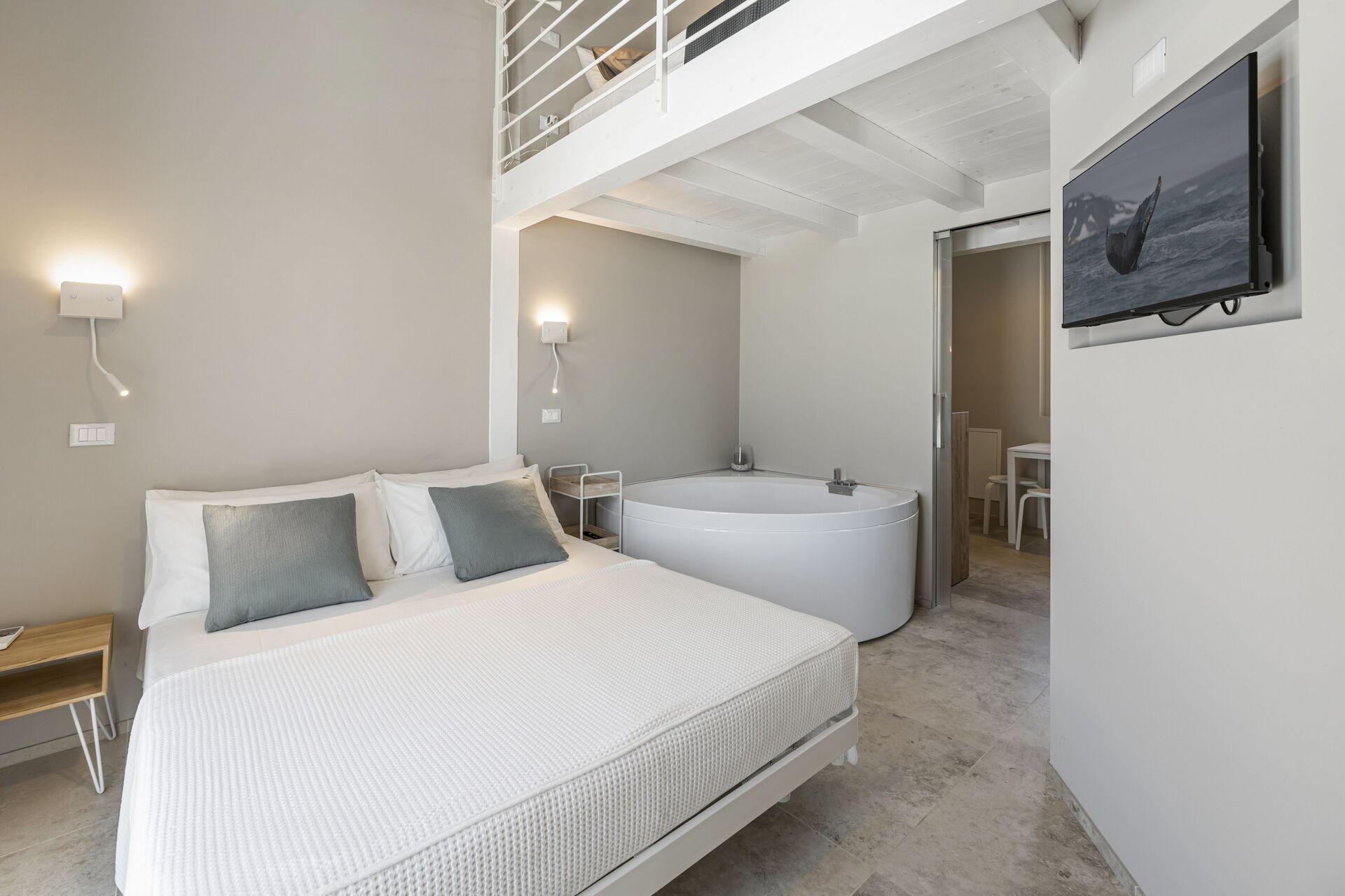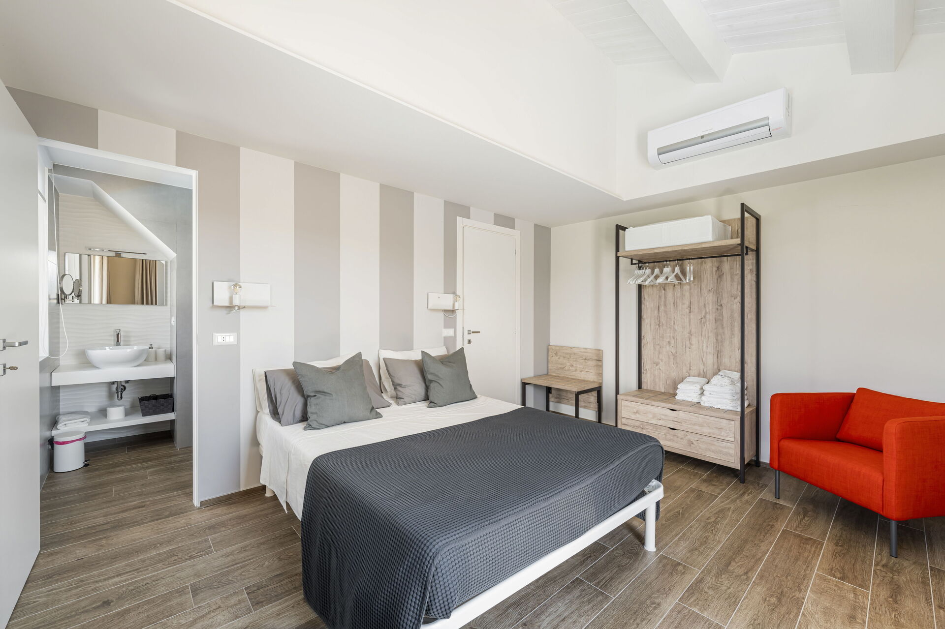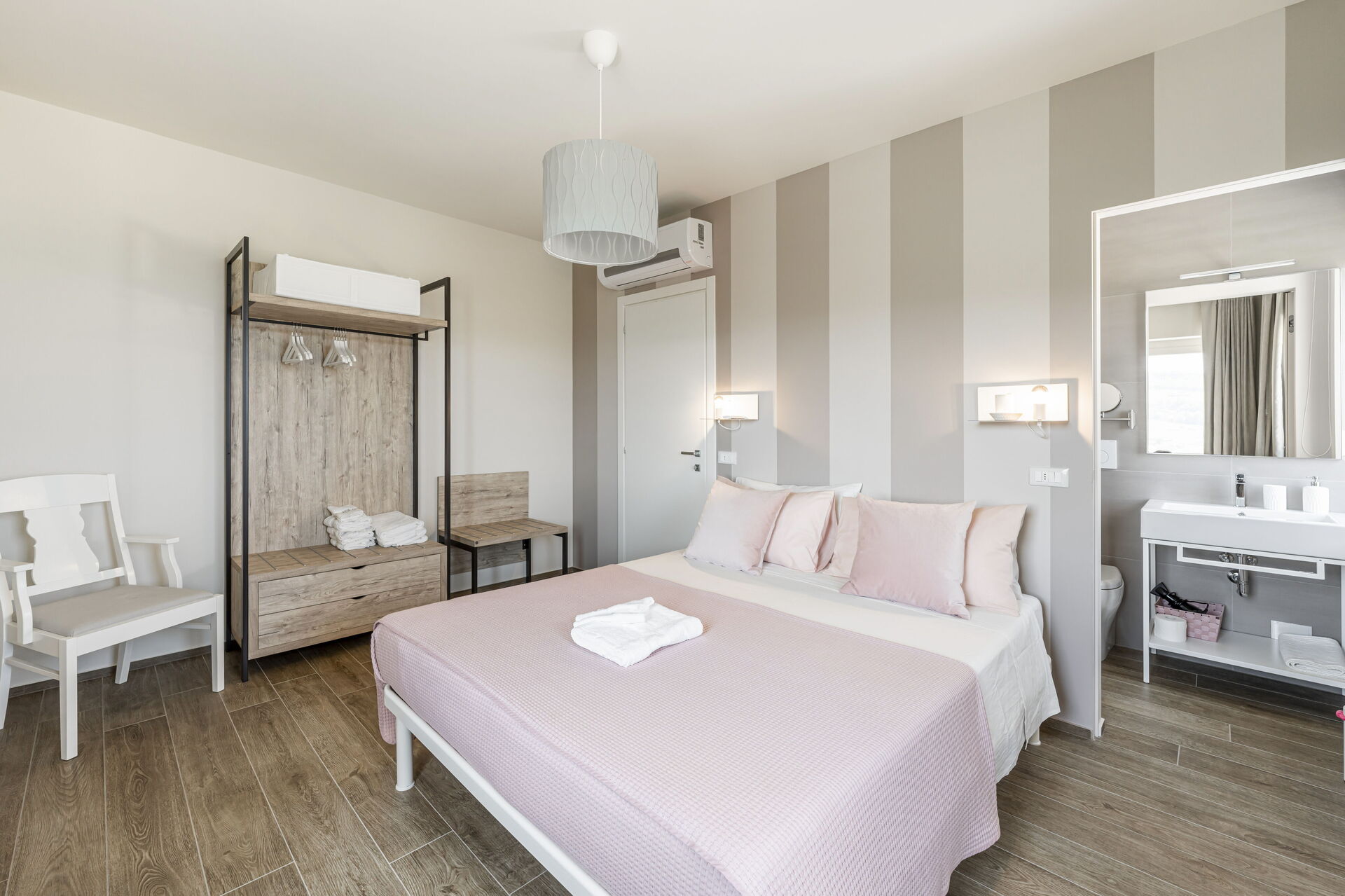 chambre avec salle de bain 5: lit double, internet WIFI, climatisation, moustiquaires, canapé, bassin, wc, bidet, douche, galerie.