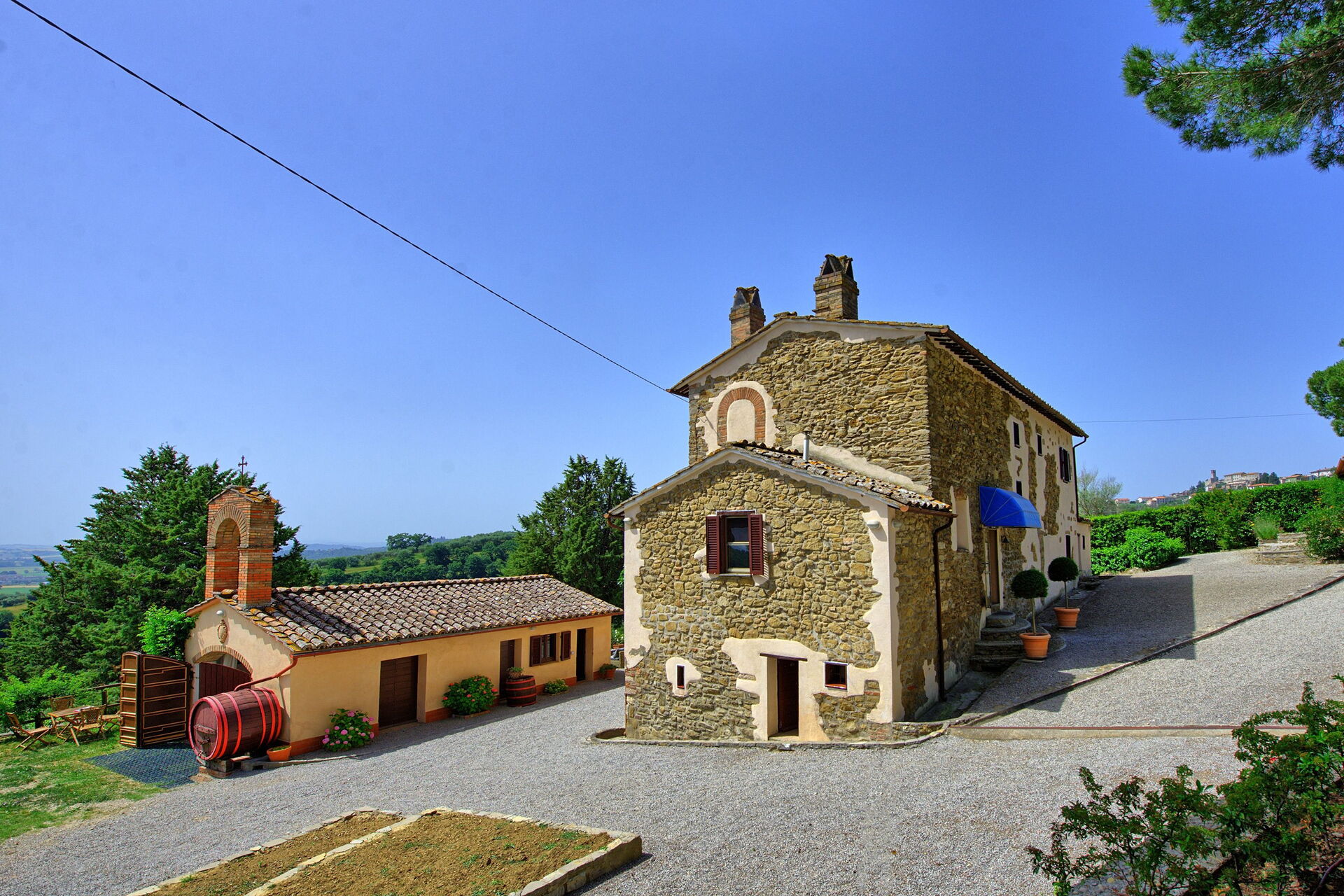 Grande maison avec ameublement de style rustique confortable. Belle vue sur la campagne. Grands espaces extérieurs où se détendre en contact avec la nature. La position géographique de cette propriété en location permet de visiter facilement des villes de grand intérêt comme Pérouse avec gare ferroviaire (liaisons journalières avec Florence et Rome), Assise, Orvieto, Gubbio, Città di Castello, Cortona, Chiusi, Chianciano, Montepulciano et le Lac Trasimène (sports nautiques).