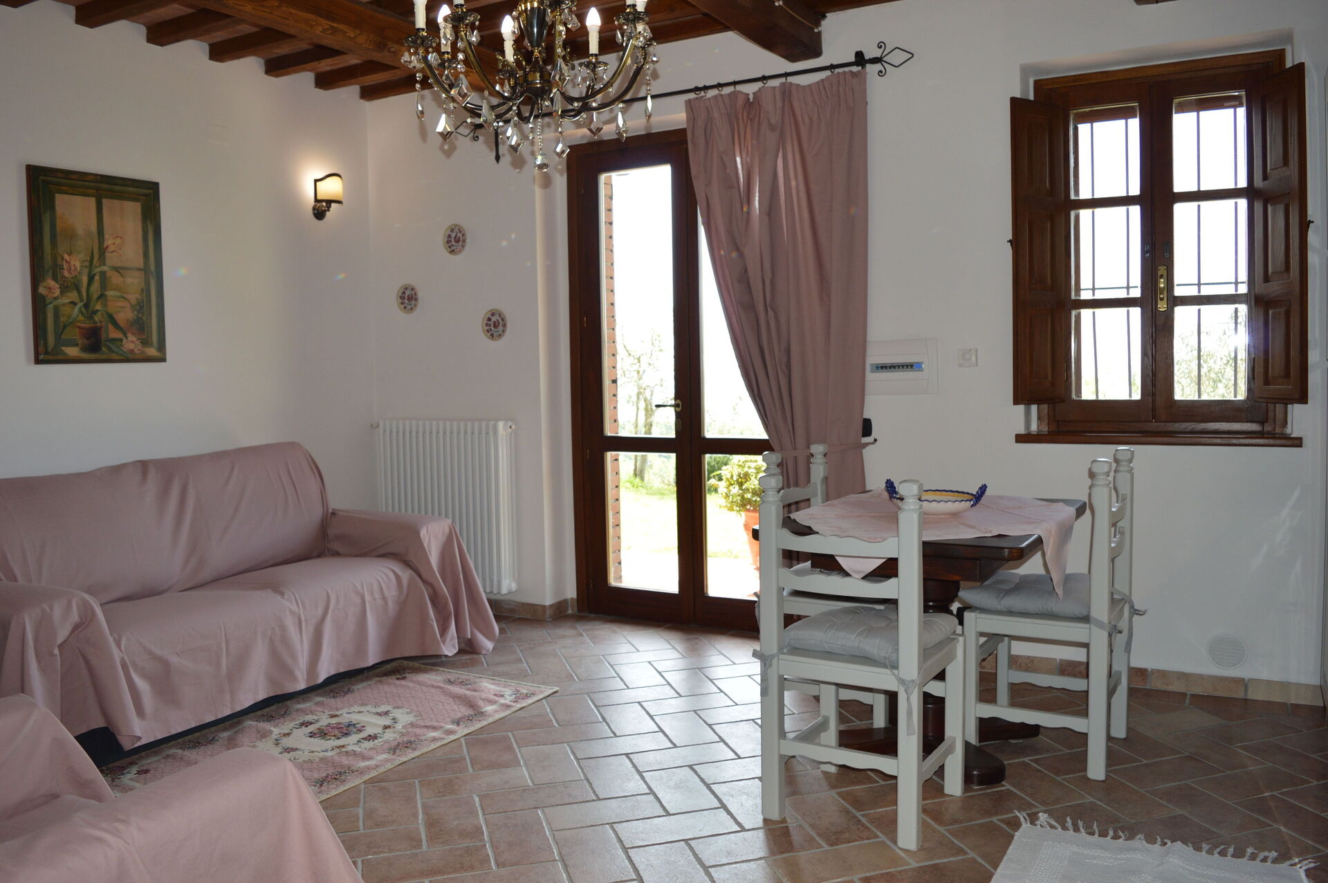 Cuisine – salle de séjour 1: cuisine bien équipée, table à manger (personnes: 4), lave-vaisselle, réfrigérateur, congélateur, four micro-onde, cuisinière, four, grille-pain, machine à café italienne, machine à café américaine, canapé (personnes: 3), deux fauteuils, cheminée, internet WIFI, climatisation, tv satellitaire, sortie sur le jardin.