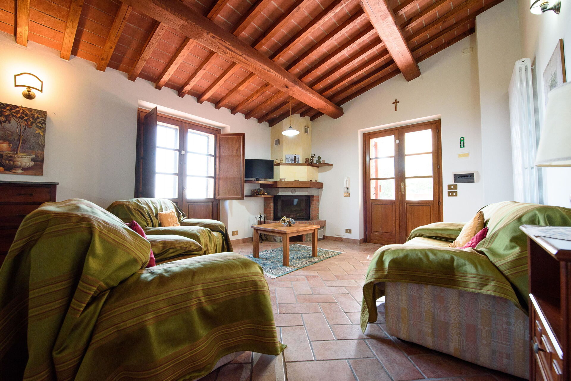La plupart des gens aiment visiter les villes et les villages à proximité pendant les vacances, donc pour votre référence vous trouvez ici est une liste des lieux populaires avec les distances (à vol d’oiseau) en voiture depuis la propriété:Cortone 20 km, Montepulciano 39 km, Pérouse 43 km, Gubbio 57 km et Assise 61 km.