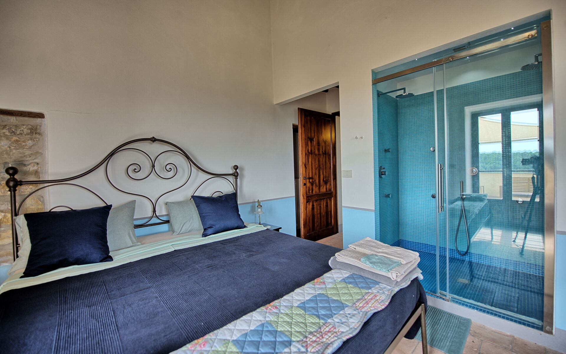Deuxième étage : une chambre double (air conditionné) avec double douche dans la chambre et salle de bains privée, une chambre double (air conditionné) avec double douche dans la chambre, salle de bains privée et accès sur une terrasse privée panoramique.