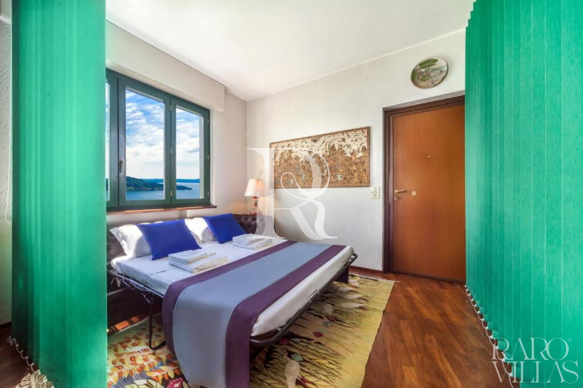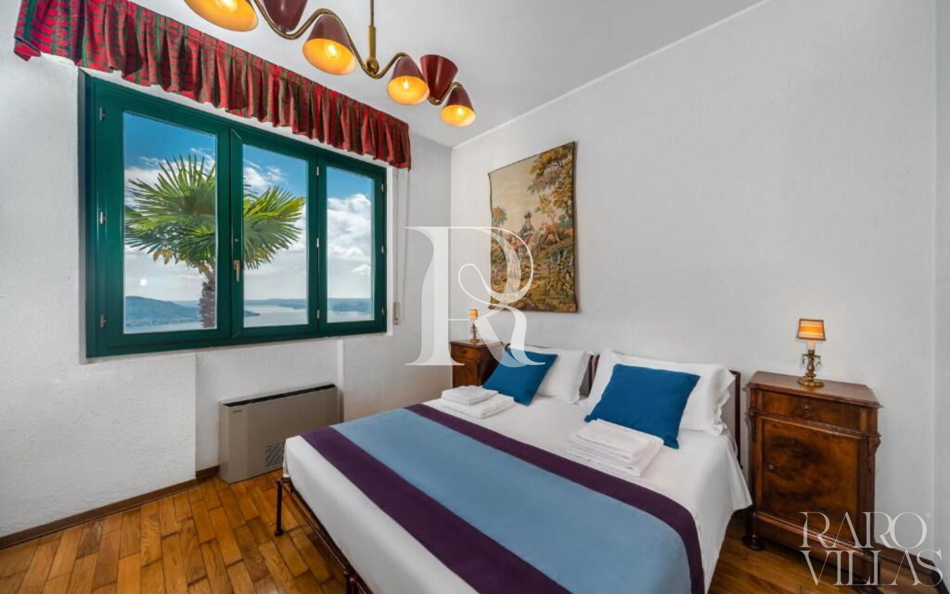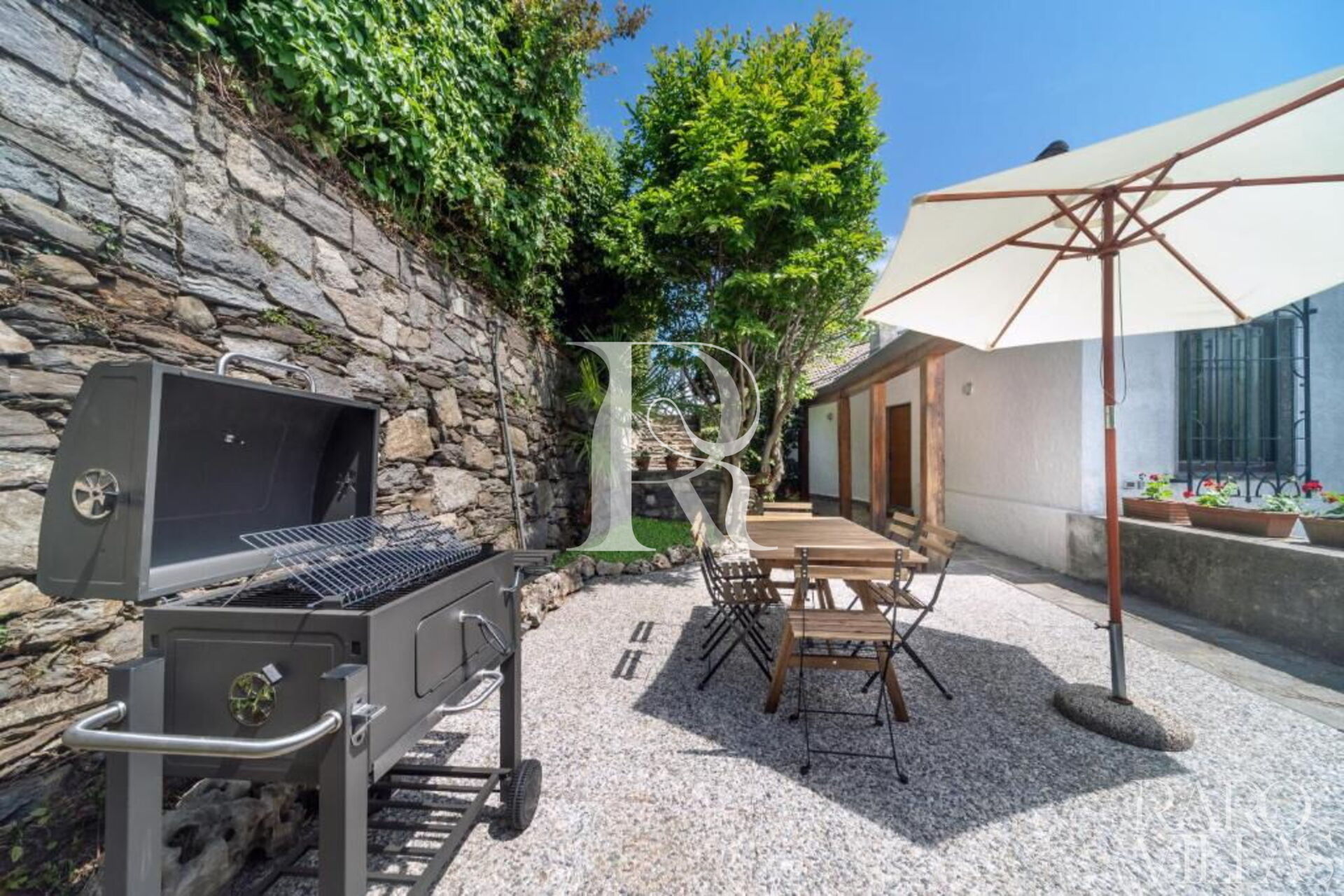 Palazzo Contessa was created to homage the Lake Maggiore, always and from every space. The large windows make the house a set of refined rooms, to be discovered and enjoyed. Its white and meastose façade stands out against a unique backdrop, between sky and water, between mountains and boats, and with nature as the protagonist of enchanting landscapes. Inside, this dwelling is structured on three levels. On the top floor there are two bedrooms, a relaxation area and a bathroom. Going down the large staircase made of masonry and wood, you enter an immense living area, consisting of a dining room and living room, from which you access the terrace, the authentic pearl of the house. From the terrace you can enjoy the view, have lunch, read a book or sunbathe. On the same floor there is a kitchen and a sleeping area, secluded and independent, with an attached bathroom. Going down one floor, with its own entrance guaranteeing maximum privacy, is the suite. This little love nest, also entirely overlooking the lake, consists of a kitchen with dining area, a quadruple bedroom (with a king-size double bed and two single beds) and a bathroom. The garden is structured on four levels, on two of which there are two barbecues, two dining areas and two terraces, ideal places for sunbathing and enjoying the view. The house also welcomes four-legged friends. Facilities include: two fully equipped kitchens (with dishwasher, oven, hob and microwave) a washing machine, two TVs and unlimited wifi connection.