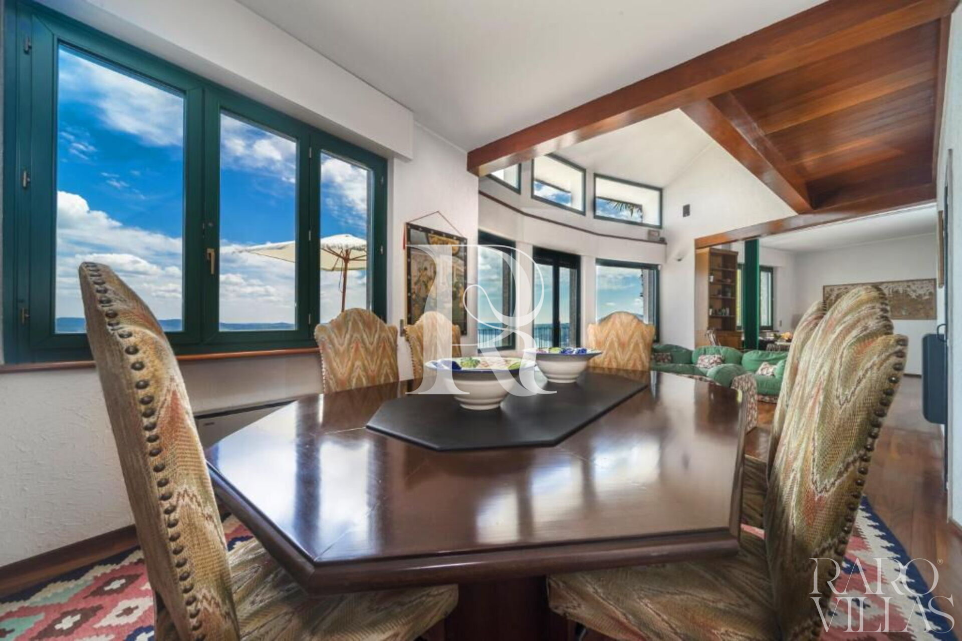 There are sun loungers, deck chairs, two barbecue areas, three open-air dining areas, two dining rooms, two kitchens and three bathrooms. Facilities include wifi and washing machine.
