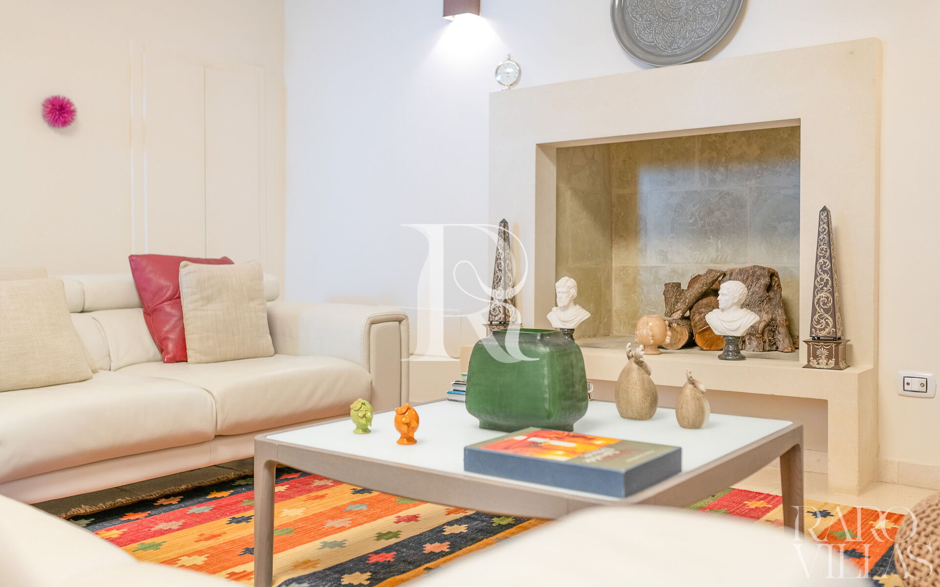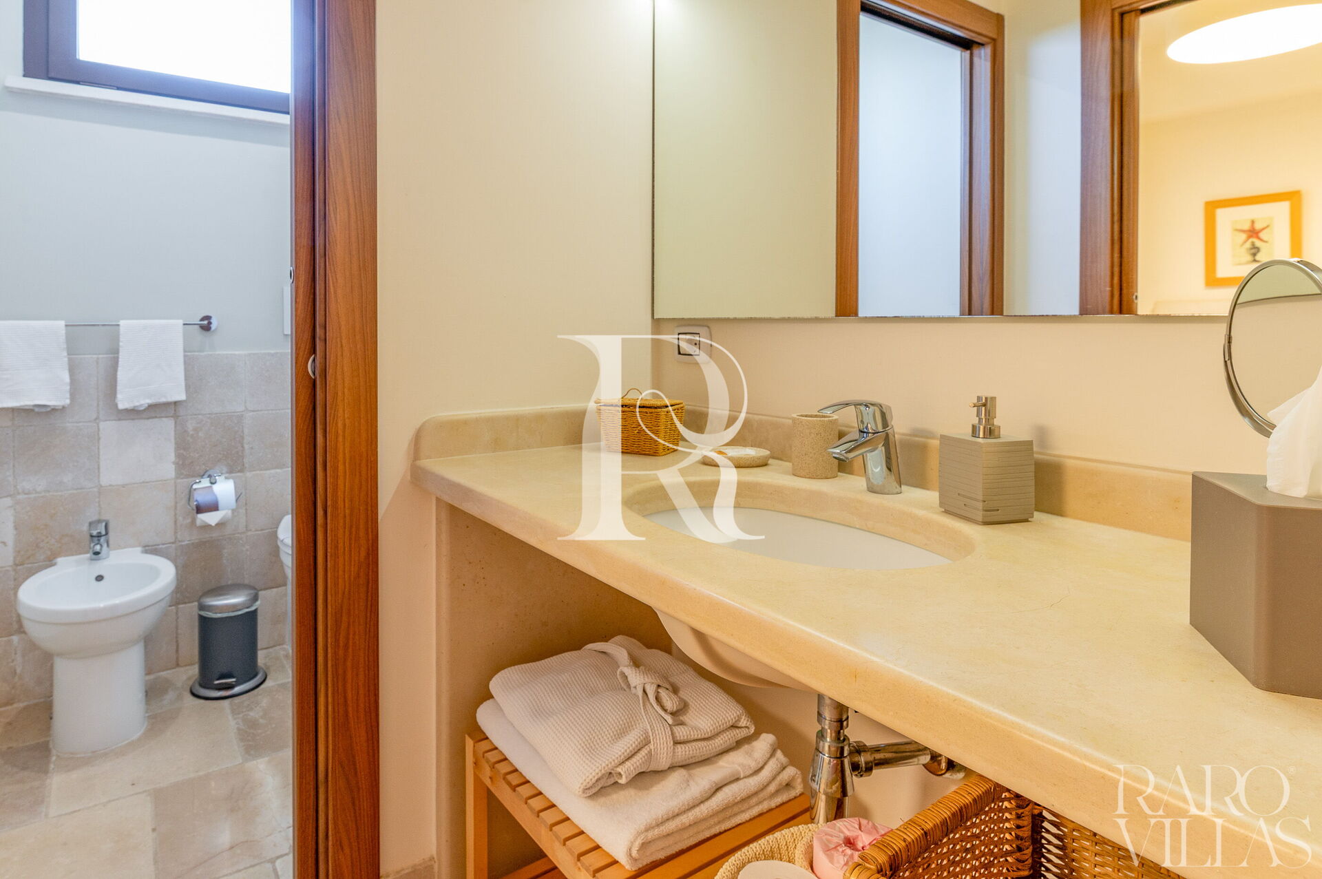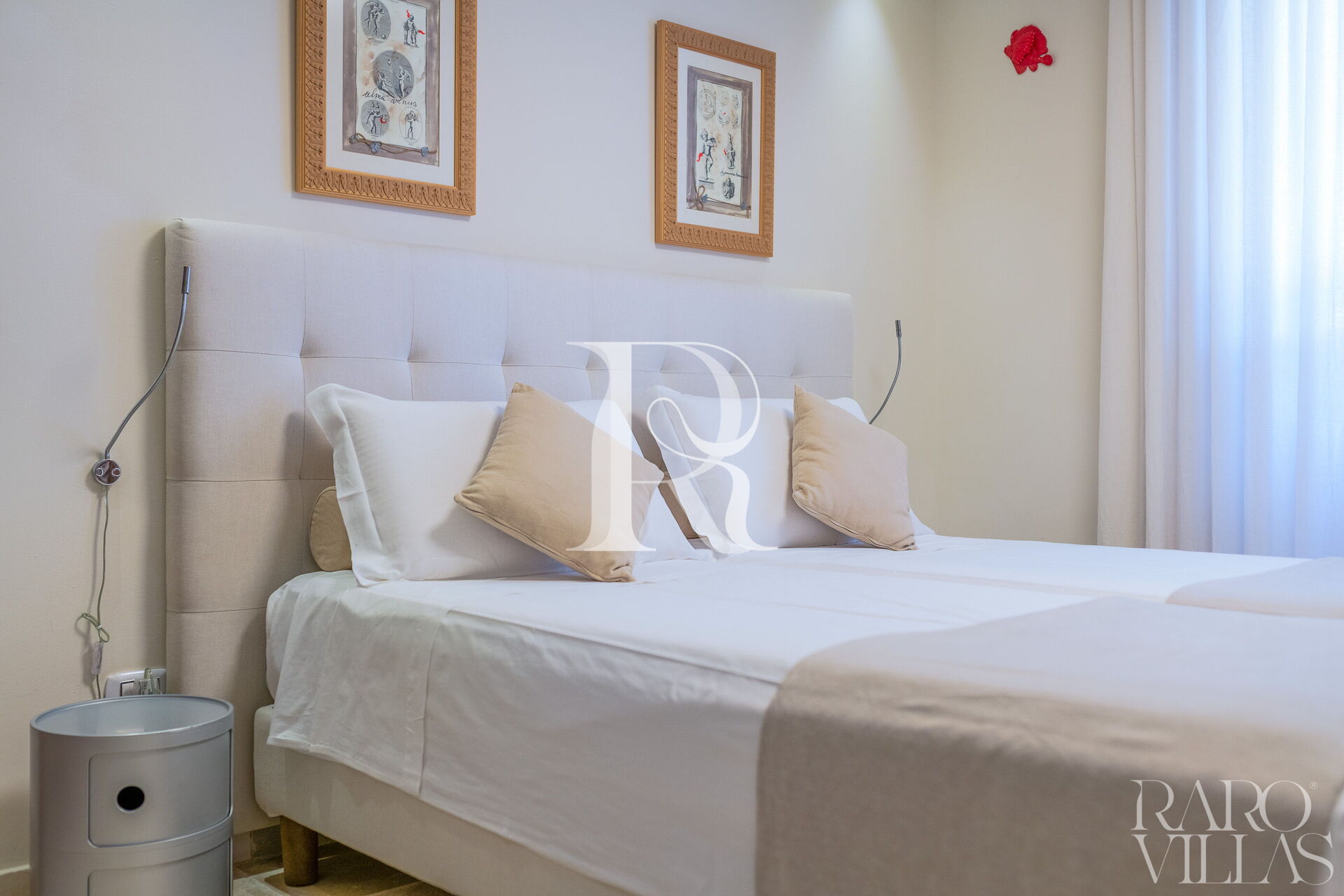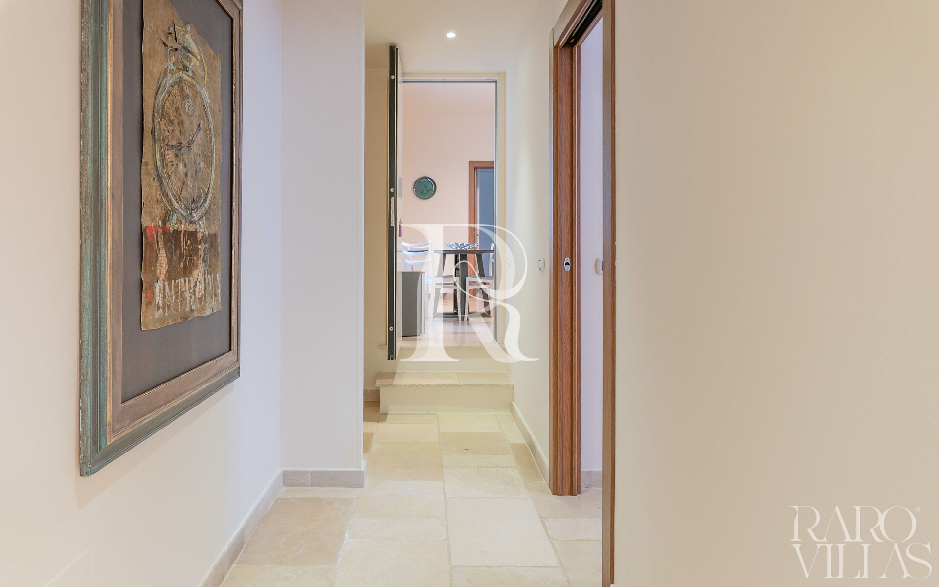 Completing the villa for rent are the living room with dining room and service bathroom, the kitchen and the garden with its patio and 10 x 7 m salt and infinity pool. Each space is designed to offer a special feeling of well-being and serenity.
