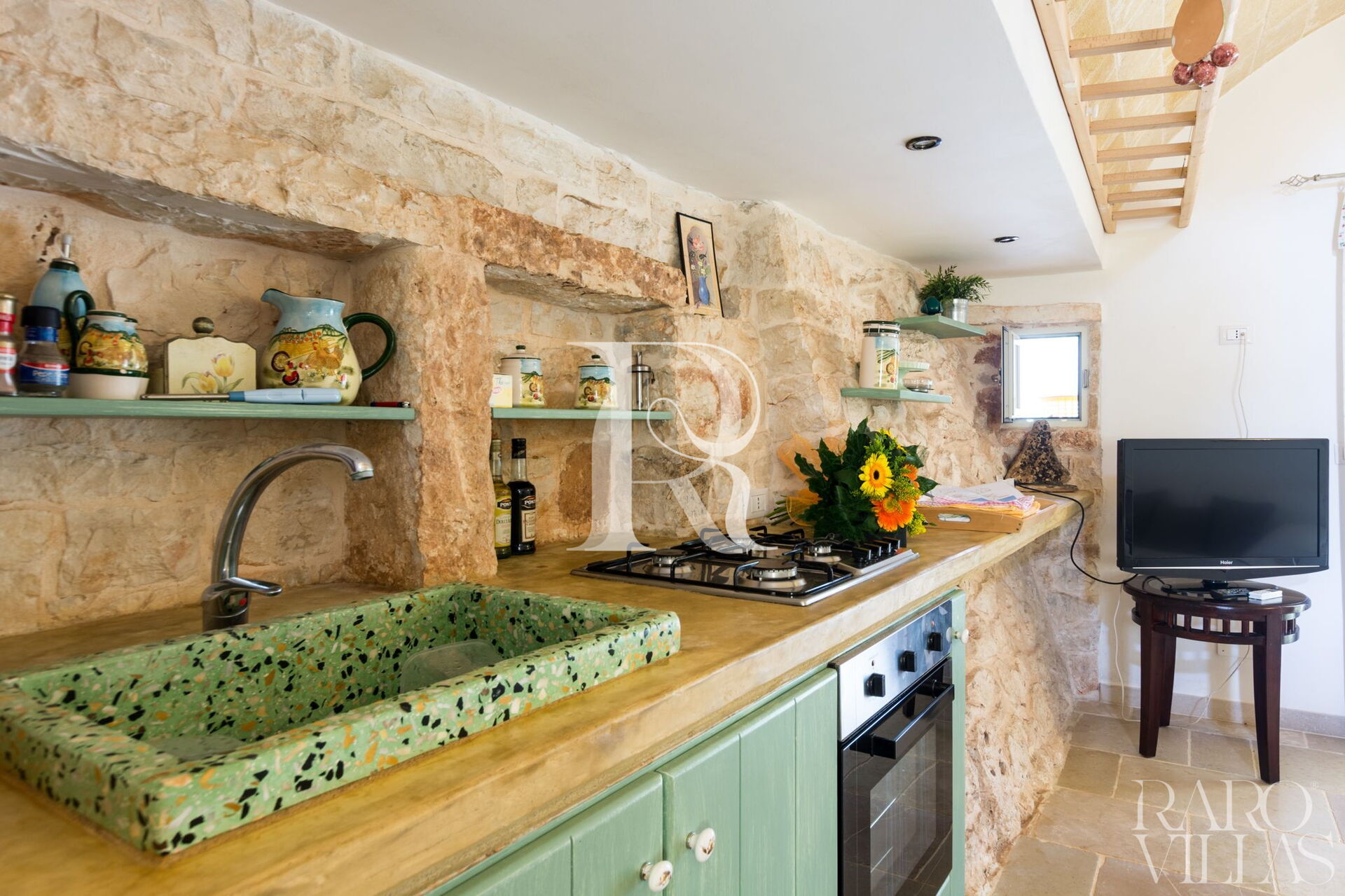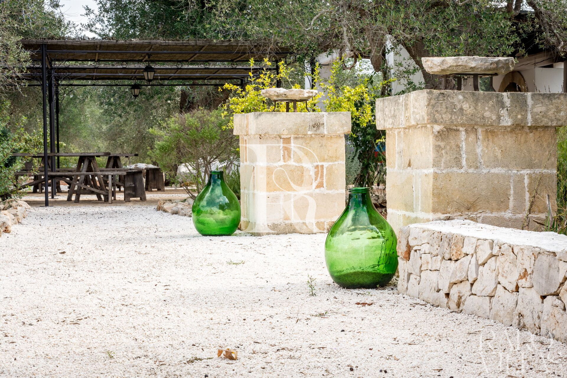 Trullo Acquamarina est une splendide propriété située dans un terrain clos où se trouvent d'autres lamias et trulli, avec lesquels il partage la piscine et les espaces extérieurs. Puis les espaces détente avec pergolas où vous pourrez dîner en toute sécurité après avoir préparé un délicieux barbecue grillé situé non loin de la piscine.