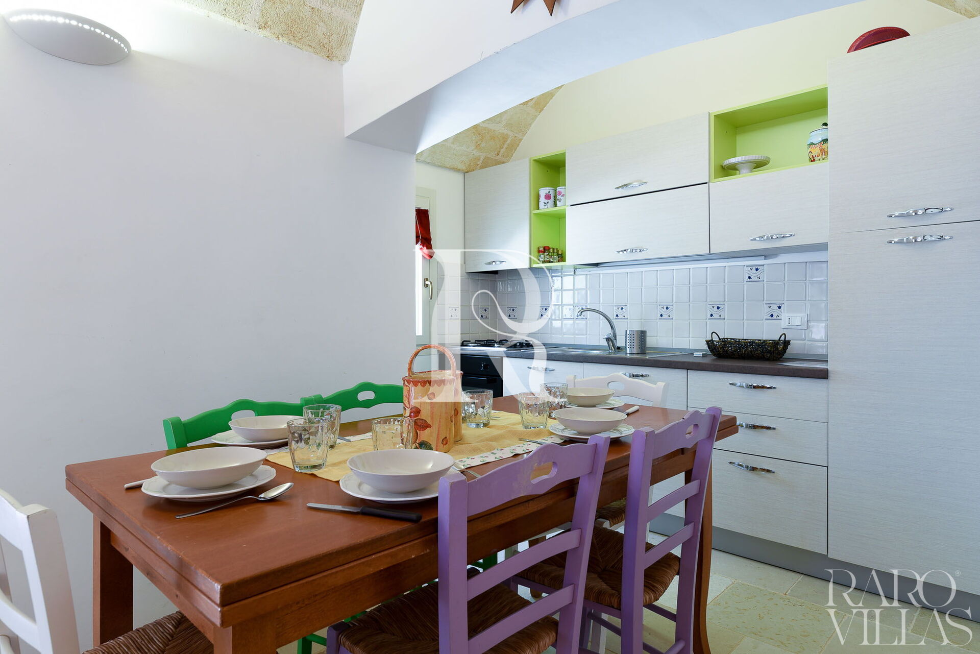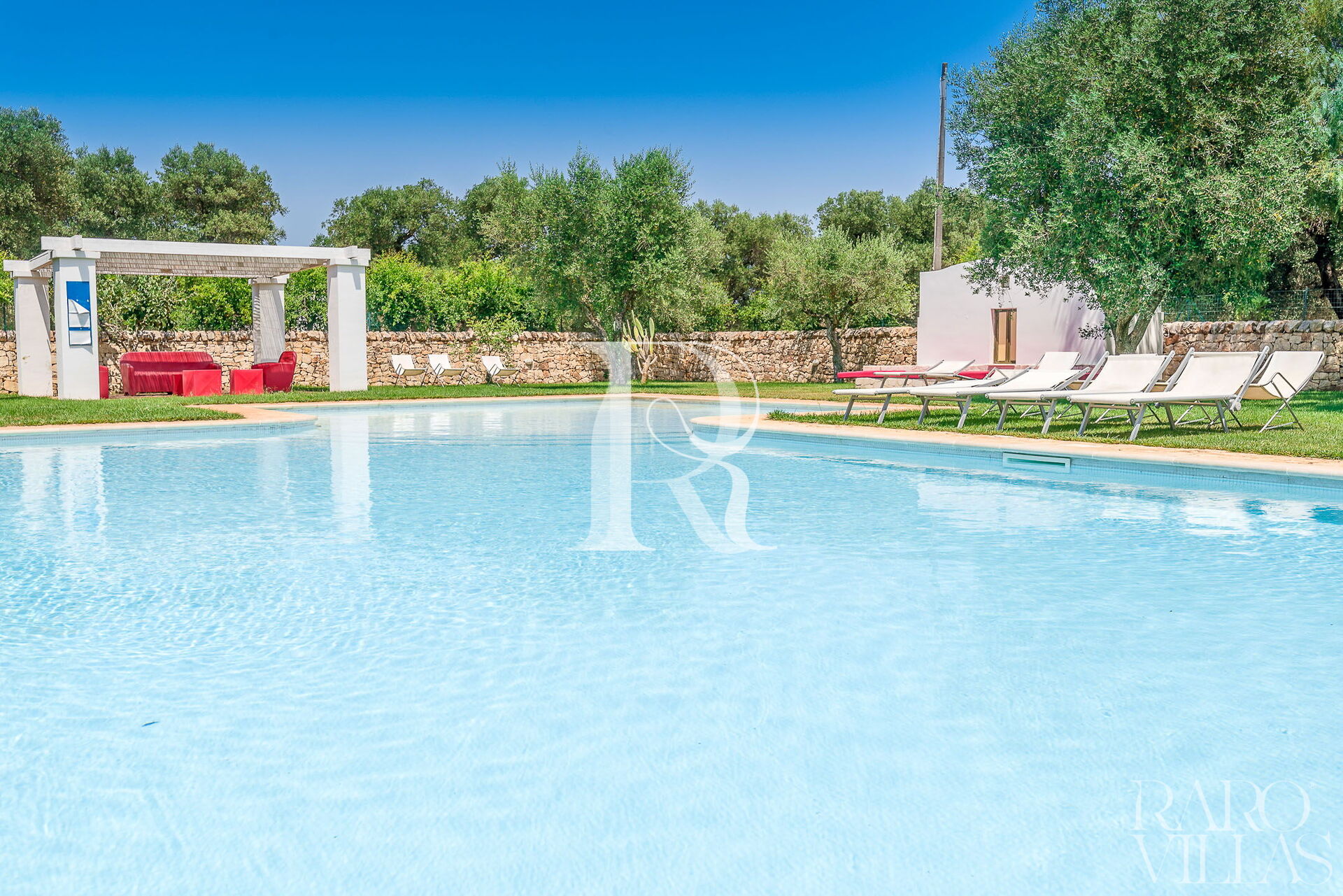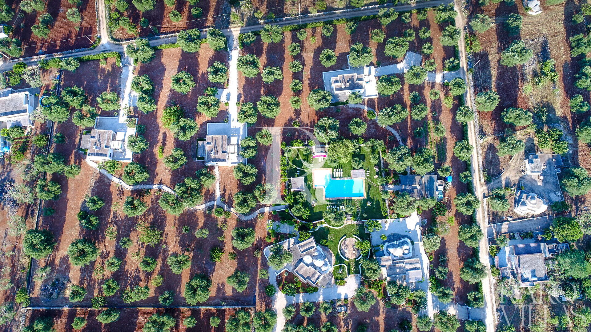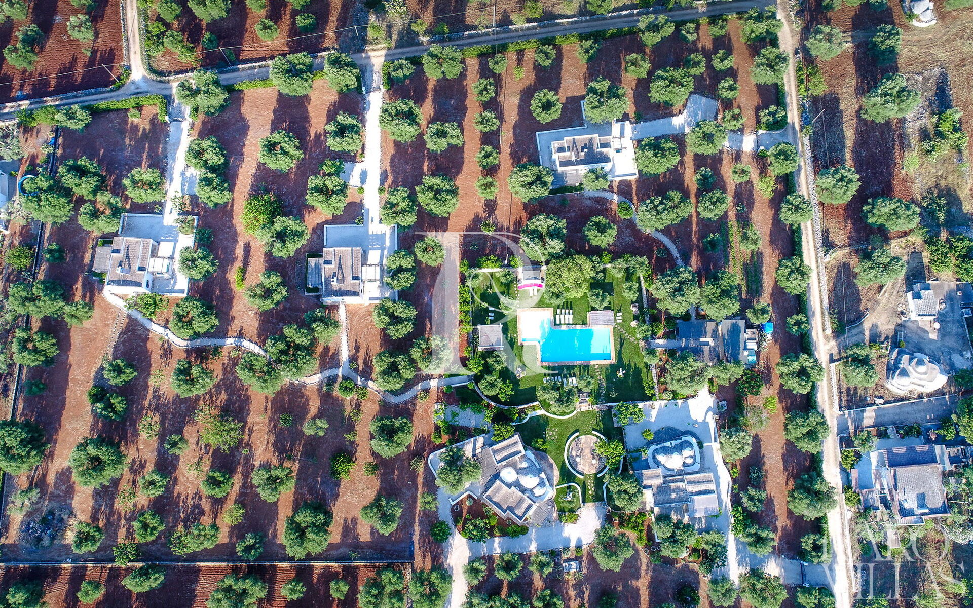 La propriété est composée de six unités: Lamia Turchese, Lamia Sole, Lamia Vite, Lamia Chiara, Trullo Aquamarina et Trullo La Scaletta, avec un total de 38 lits, et 18 chambres et 8 salles de bains divisée en différentes structures. Pour compléter la beauté de cette structure est la piscine entourée de beaux jardins, soignés dans les moindres détails.