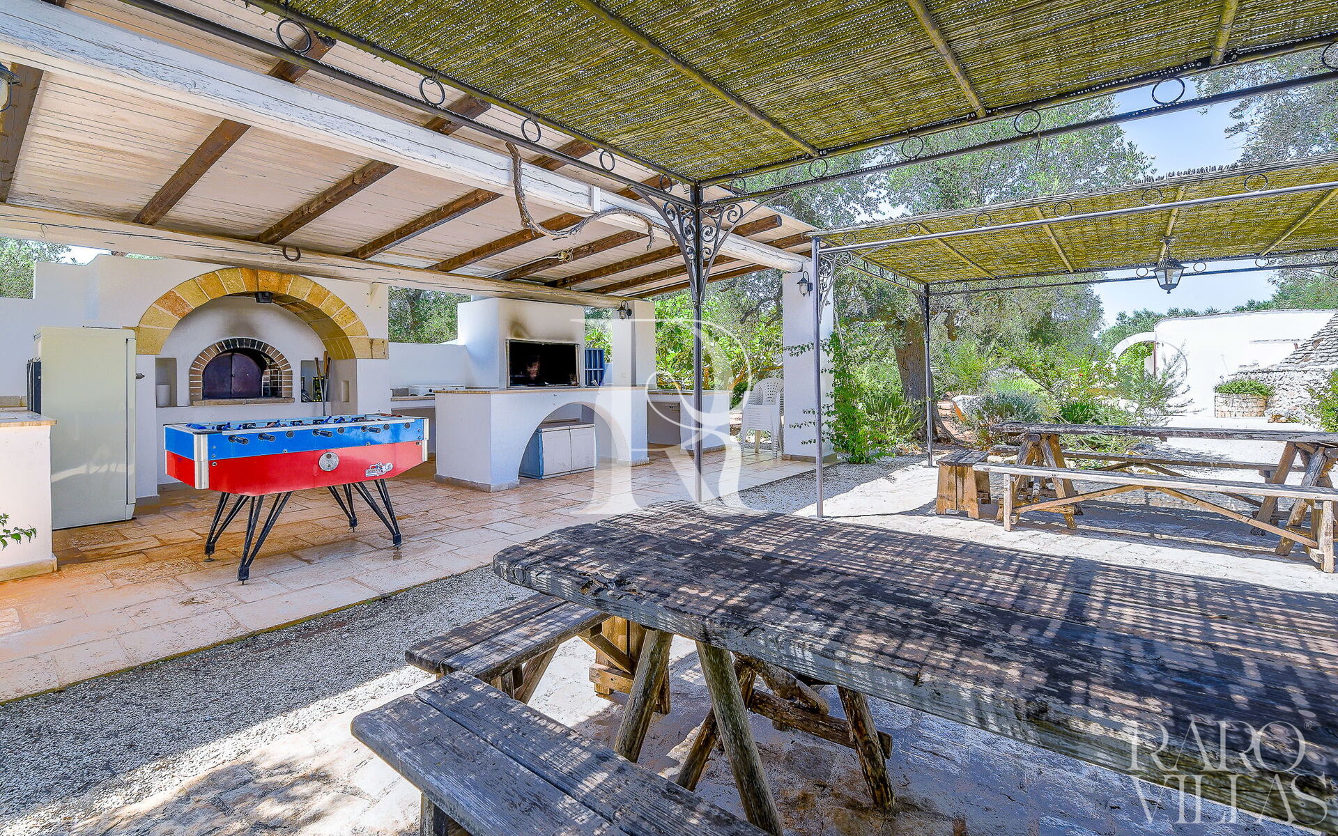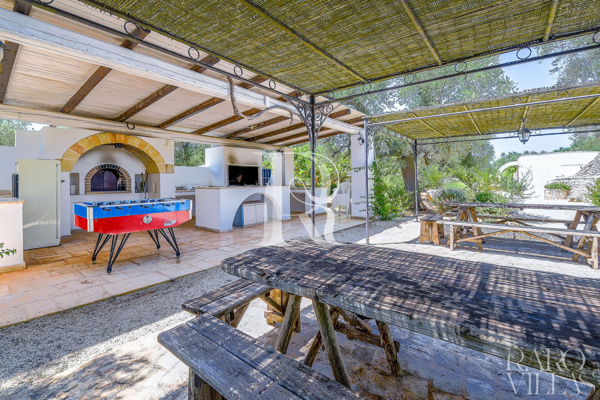 Dehors il y a plusieurs zones équipées pour se détendre, avoir pendant les jours merveilleux d'été en plein air déjeuner et le dîner, tout cela grâce à la place du barbecue à une courte distance de la piscine grâce à laquelle ils peuvent être préparés de l'excellent grillé et où il sera possible Essayez la préparation de la pizza typique de Pugliese.