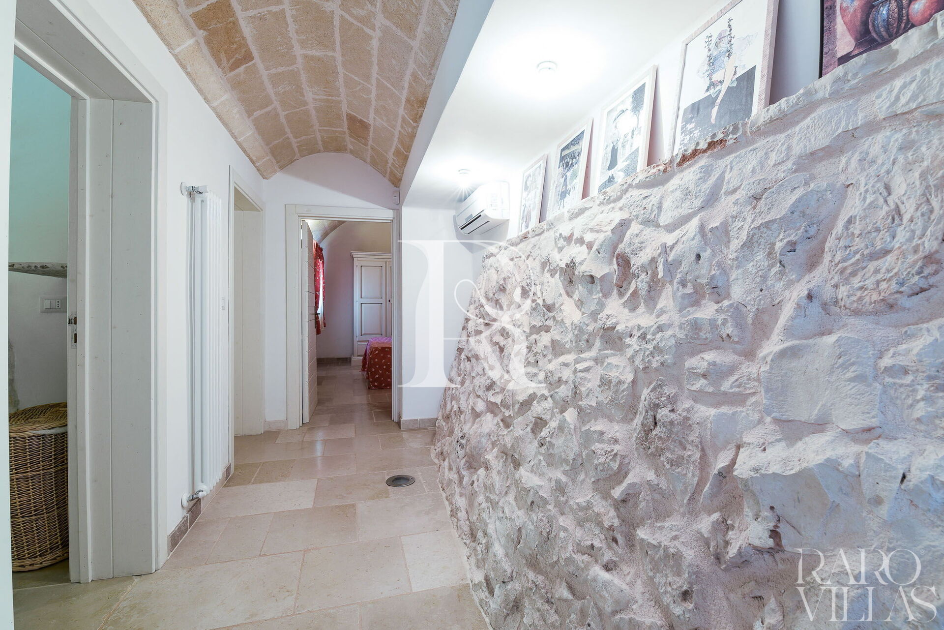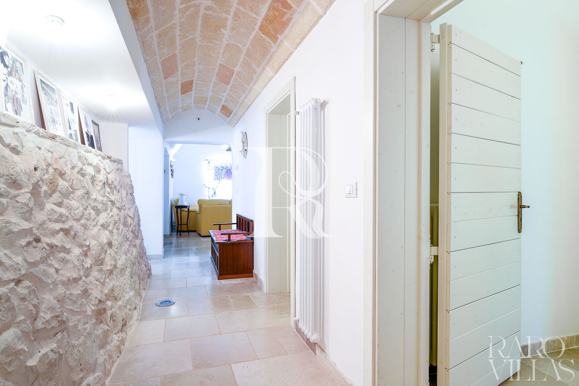 Passant à la zone de couchage, il y a 3 chambres doubles et deux salles de bains avec douches. La particularité de ce trullo est la présence de pierre exposée qui rend les environnements frais et magiques.