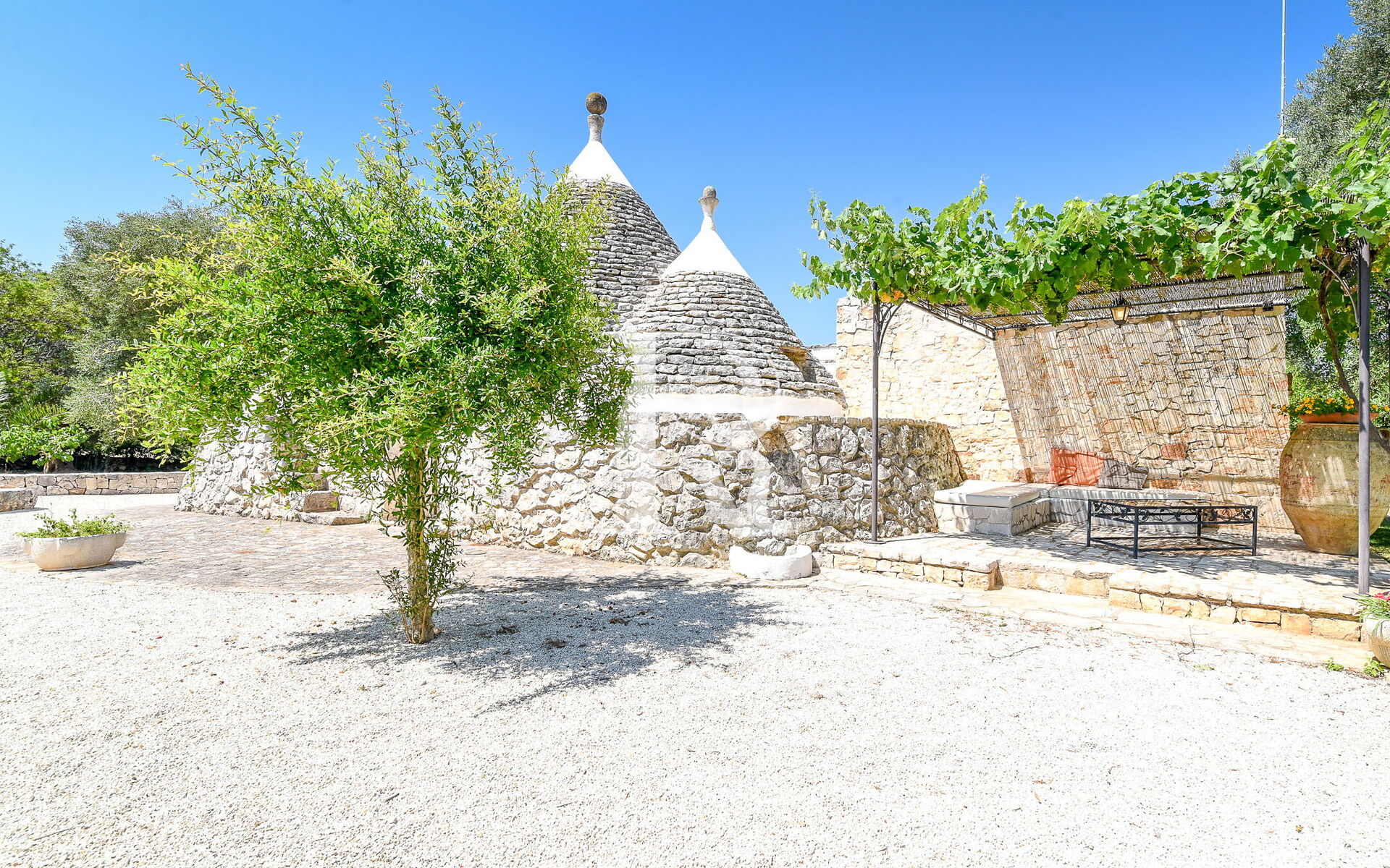 Aquamarine Trullo se compose principalement d'un bel espace de détente en plein air, avec une pergola en vertu de laquelle ont été créés dans les sessions de maçonnerie, où ils ont été oreiller Mentir pour se détendre à l'ombre du soleil pour prendre un verre et prendre un verre.