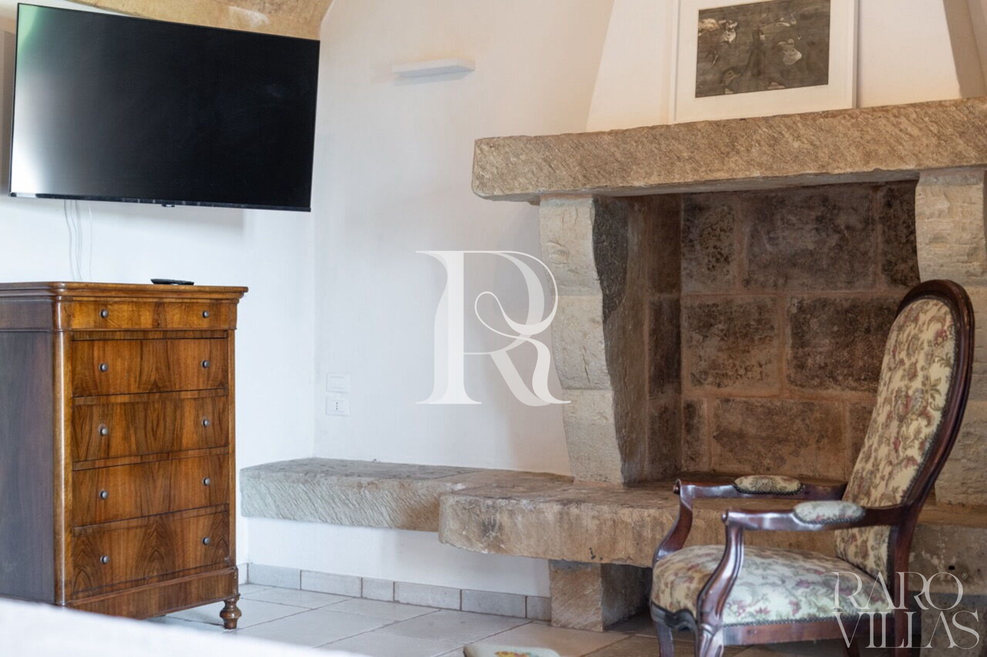 - Pizzicamadonne Room: double bedroom created inside an old trullo, with fireplace in the living area and large private garden overlooking the olive grove.