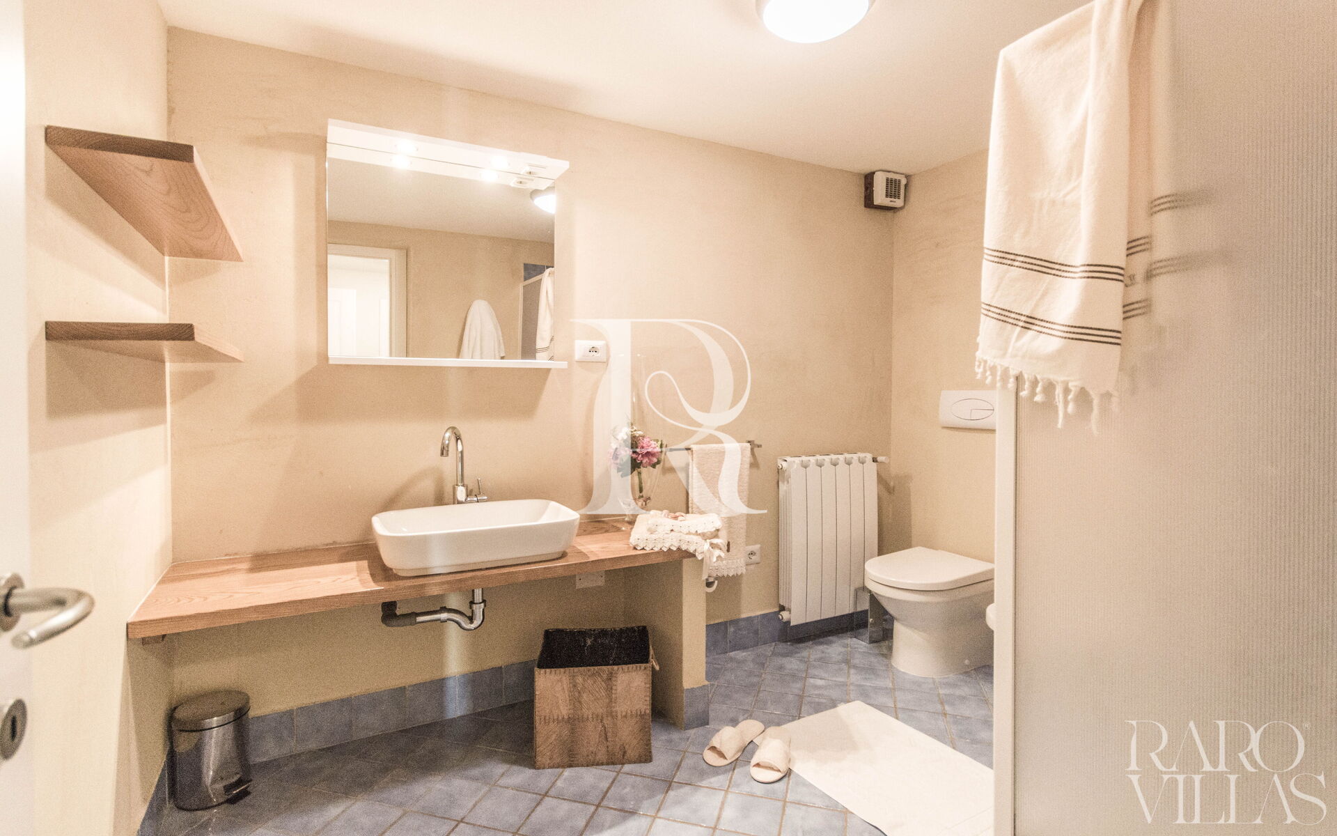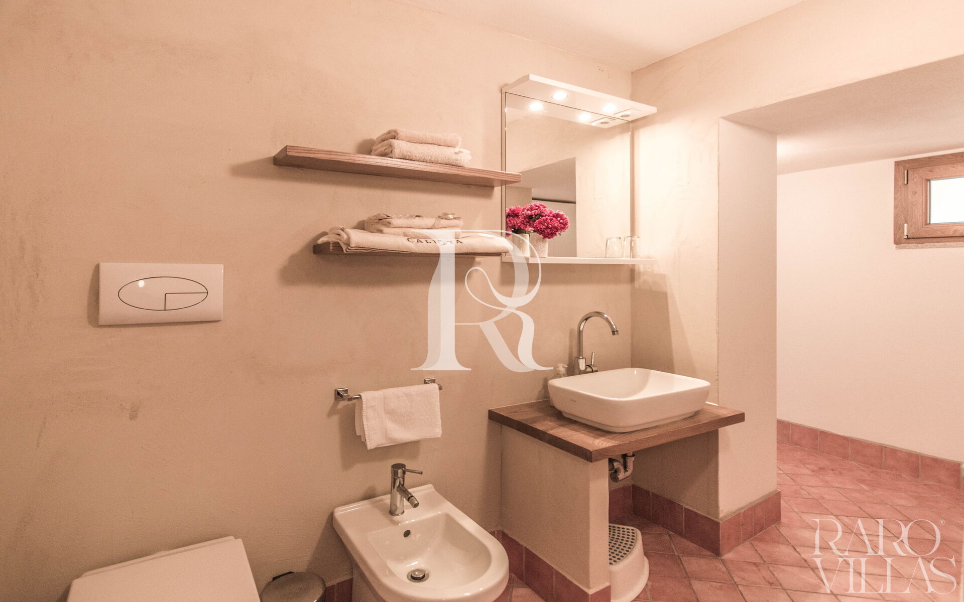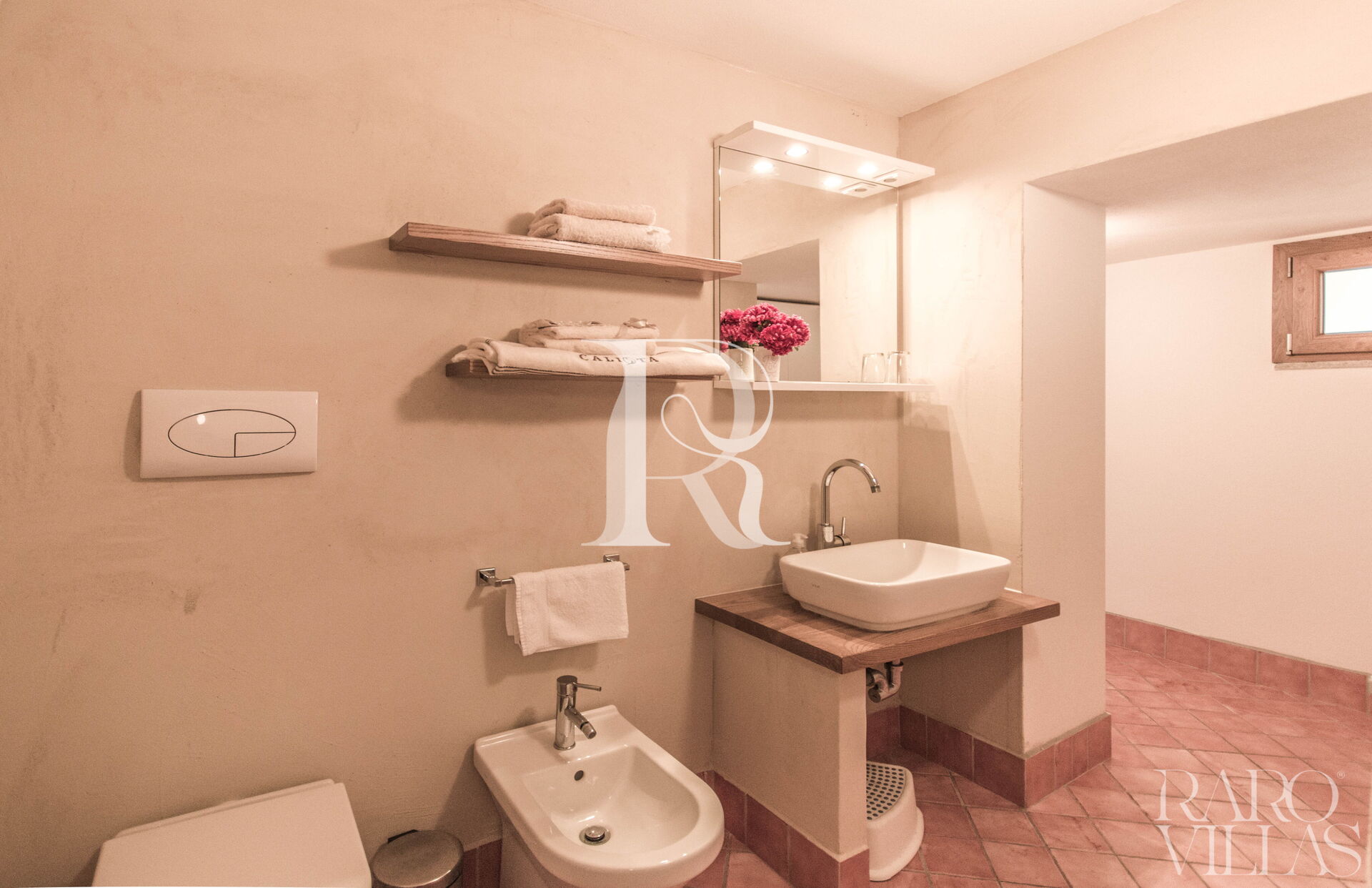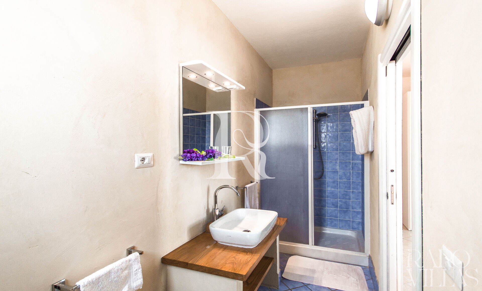 The villa for rent, Villa Alfa, was recently renovated (2011), spread over several levels and consists of 6 bedrooms with 7 bathrooms and a spacious living room with sea view and satellite TV, a large dining area with an adjoining modern kitchen (complete with 2 refrigerators, a microwave oven, an electric oven, 5-burner hob and dishwasher) with service bathroom.