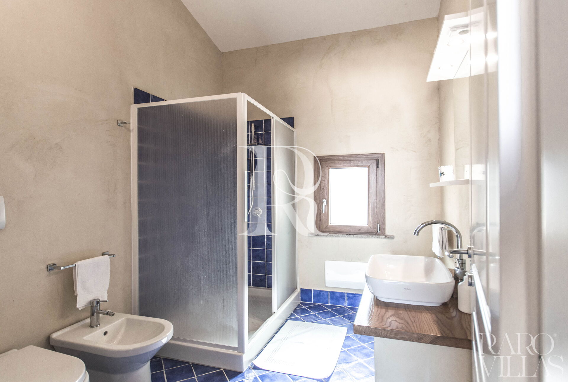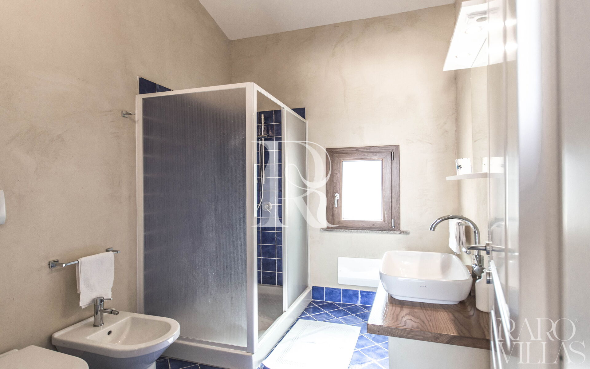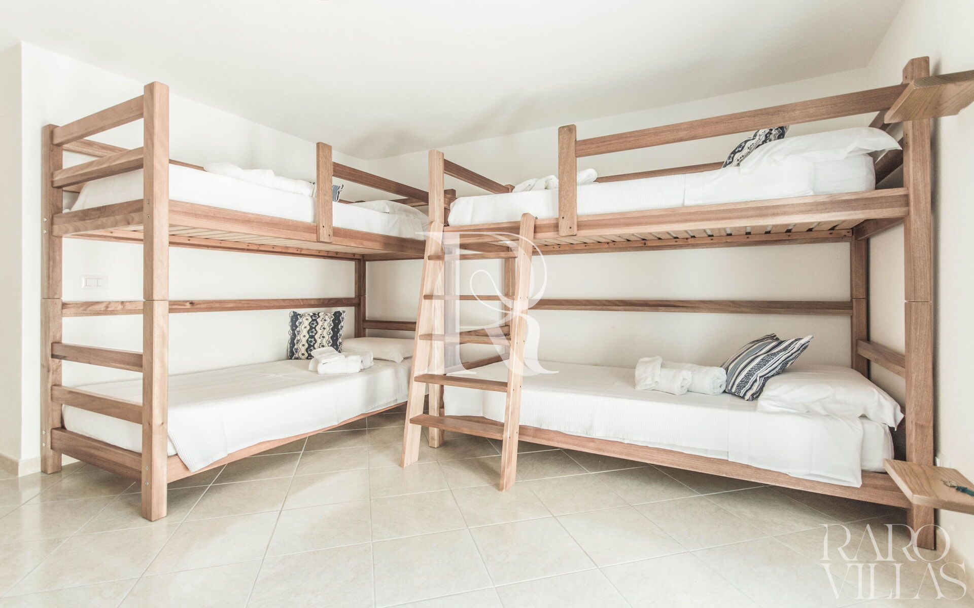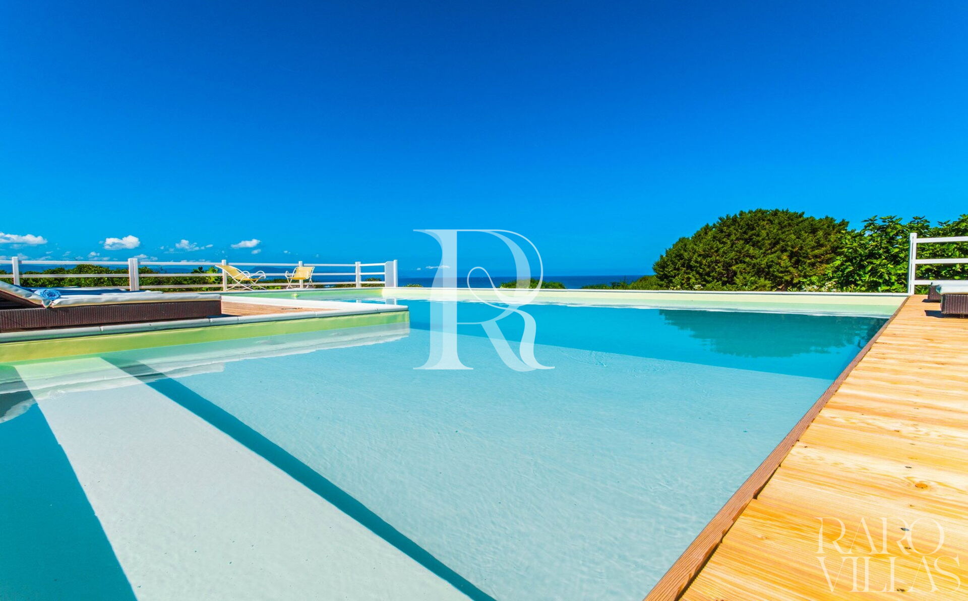 The villa for rent, Villa Alfa, was recently renovated (2011), spread over several levels and consists of 6 bedrooms with 7 bathrooms and a spacious living room with sea view and satellite TV, a large dining area with an adjoining modern kitchen (complete with 2 refrigerators, a microwave oven, an electric oven, 5-burner hob and dishwasher) with service bathroom.