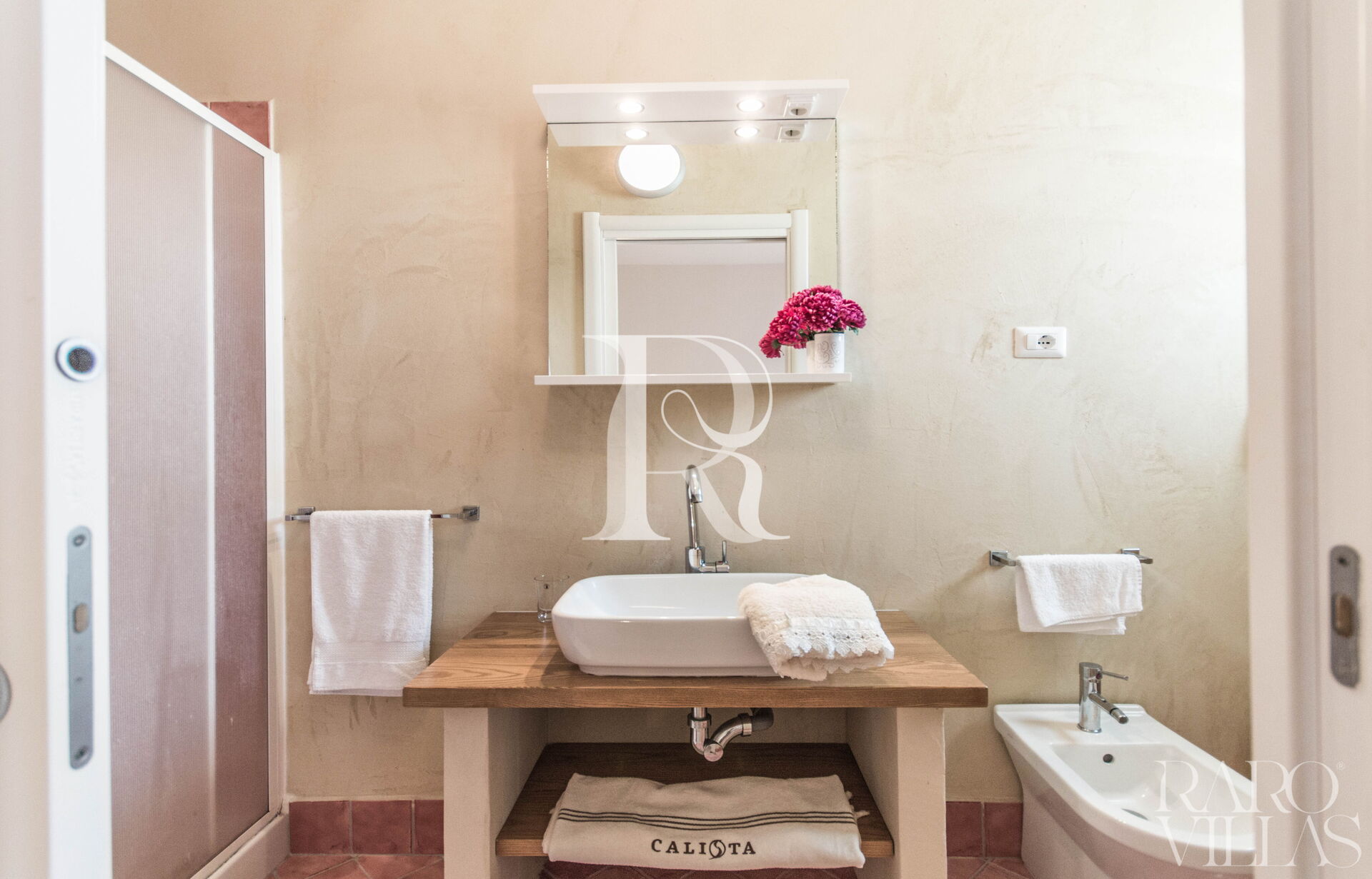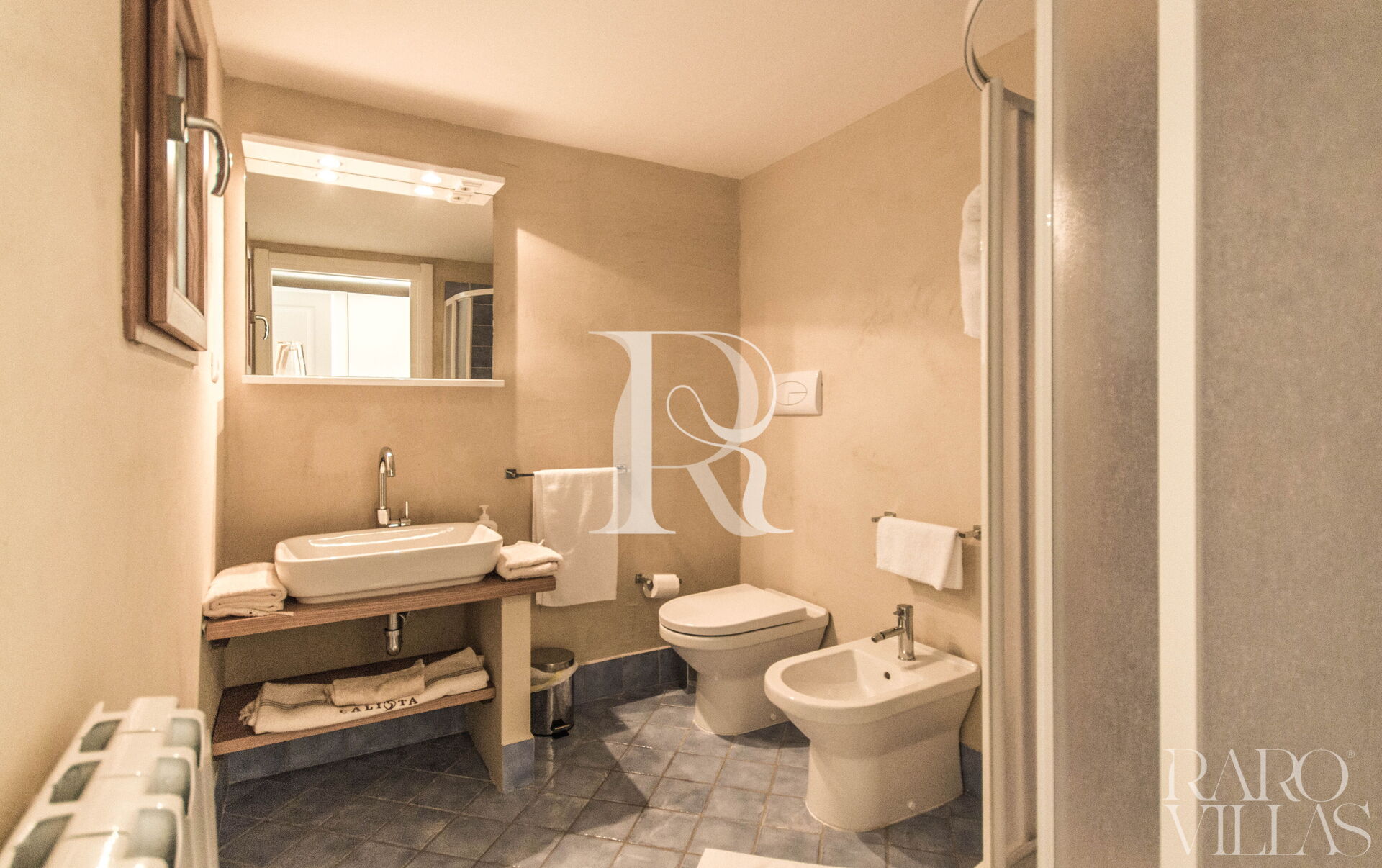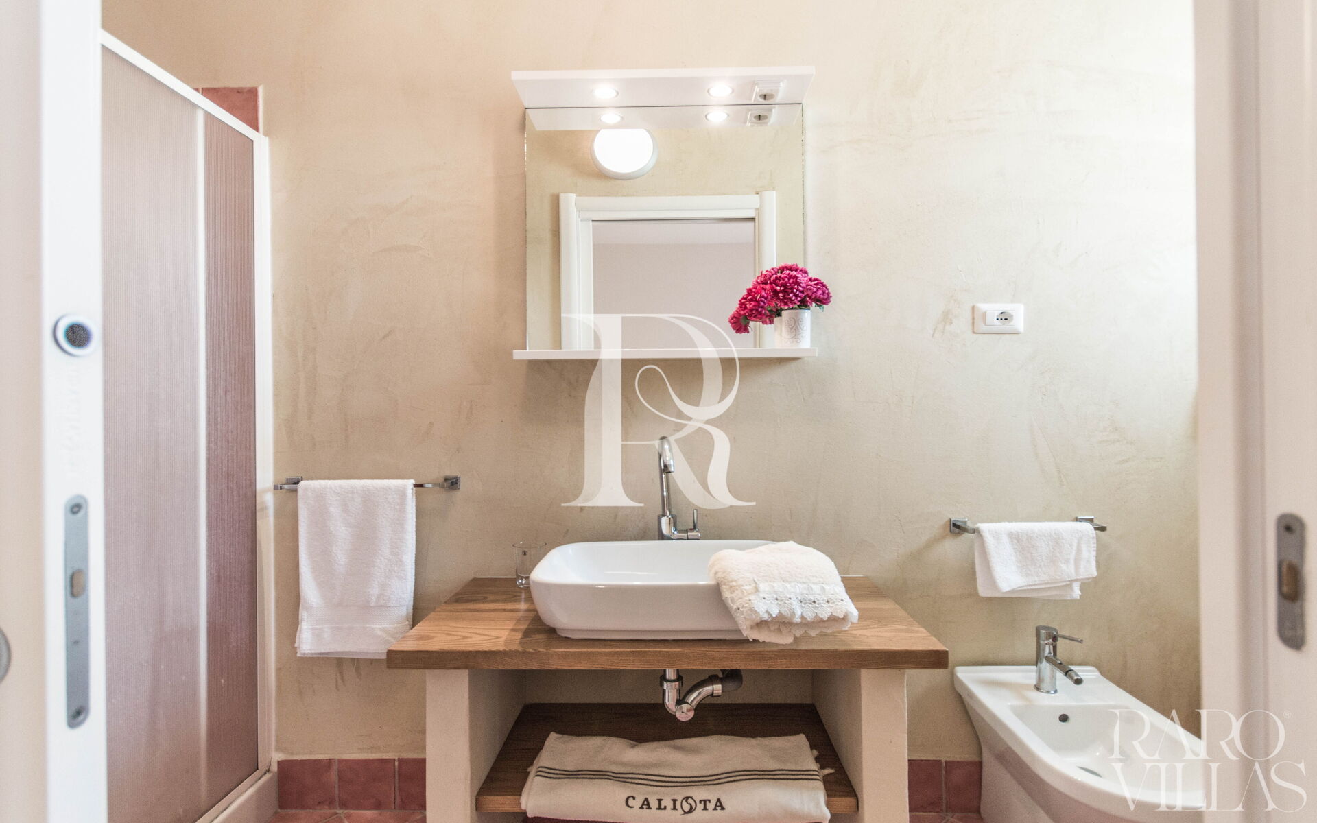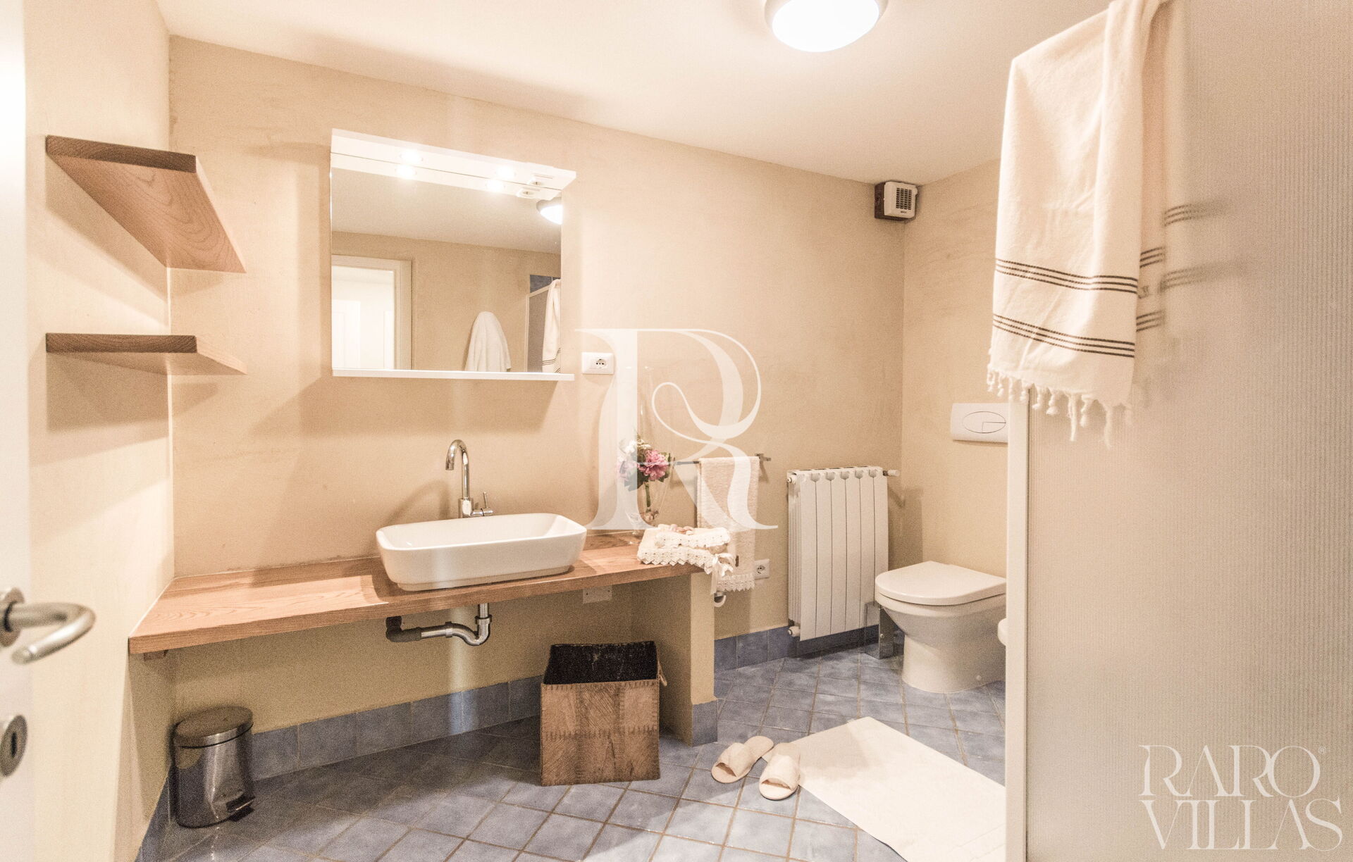The villa for rent, Villa Alfa, was recently renovated (2011), spread over several levels and consists of 6 bedrooms with 7 bathrooms and a spacious living room with sea view and satellite TV, a large dining area with an adjoining modern kitchen (complete with 2 refrigerators, a microwave oven, an electric oven, 5-burner hob and dishwasher) with service bathroom.