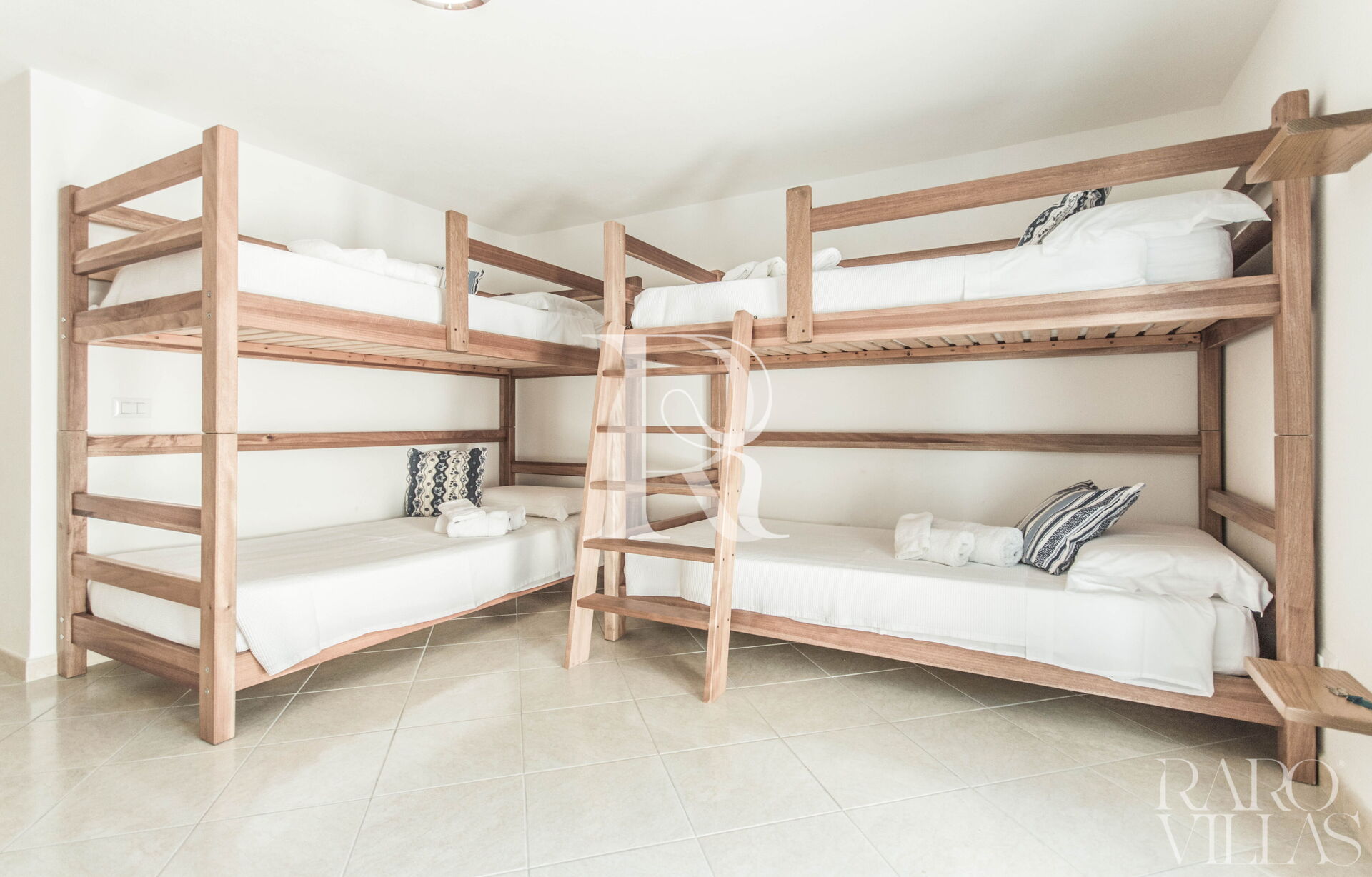 1 bedroom consists of four single bunk beds with an ensuite bathroom.